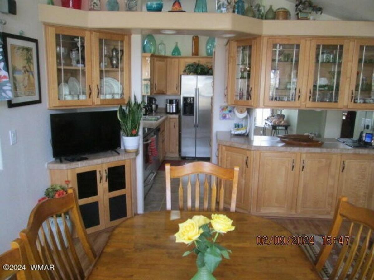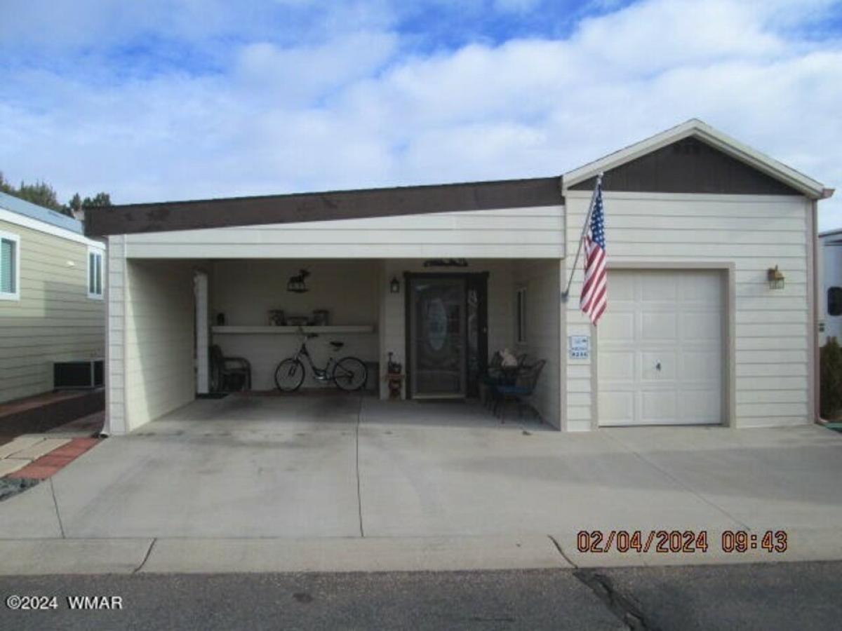 Set on expansive green belt, spacious 1260+ sq/ft home offers wide views. Full size carport. Separate garage. Built in workshop w/ overhead storage w/ pull down ladder. Ground set covered front door. Roomy entryway and formal staircase opening to 28'x18' Great Room w/ sweeping views of green belt. Carved oak bar, fireplace, 75'' smart TV, comfy furniture to seat 10 easily. Coat closet, guest bathroom w/ shower, full laundry room, snug office space. Generous14'x12' dining room w/expandable table to seat 8-10 guests. Glass topped electric range, full sized fridge, double sink, built-in microwave, pantry. Second full bathroom. Bedroom w/ queen bed and storage underneath. Full concrete pad w/ inside accessed storage below home. Double glazed Pella windows. Two year old roof.