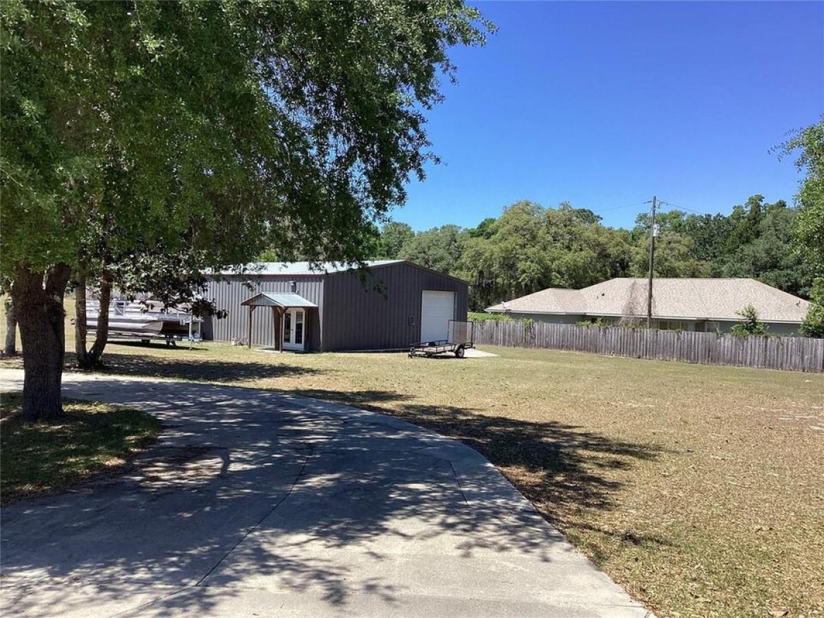 BEAUTIFUL 3 BR FENCED/GATED POOL HOME WITH WORKSHOP/GARAGE ON 3 ACRES. Mature shade trees grace this fully fenced/gated property with Barn/Shed with stall for horses and pets. Enjoy the tranquility while sitting in you in the awesome Screened in pool area. Pool with salt chlorinator, covered outdoor kitchen area with metal roof, stacked stone bar and wood pergola over hot tub. 36x45 metal building with 2 rolltop doors and 2 sets of glass entry doors. One side for workshop with room for car/boat/trailer storage. Other side is perfect man cave or she shed! Circular drive with drive-up covered front portico. Inside is a gorgeous, light and airy floor plan. Wood-look laminate and wood-tile flooring in living areas, recessed lights, wood trimmed windows/doors, Plantation shutters. Cute kitchen with 42 In. beadboard cabinetry, stainless farmhouse sink, stainless appliances, granite counters. Family room complete with vaulted wood-beam ceiling, mini-split A/C, stacked stone wall, electric fireplace and niche for flat screen TV. Huge storage room, laundry room with cabinetry/granite counters and basement. Master BR/private bath. 2 carpeted guest BRs, full bath and frac12; bath. Since 2015, septic/drain field installed, well, house replumbed, whole house (blown) insulation, updated electrical panel.