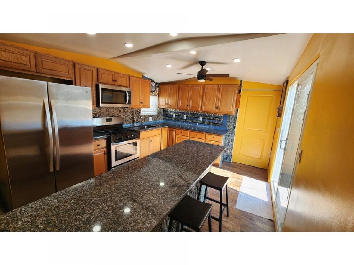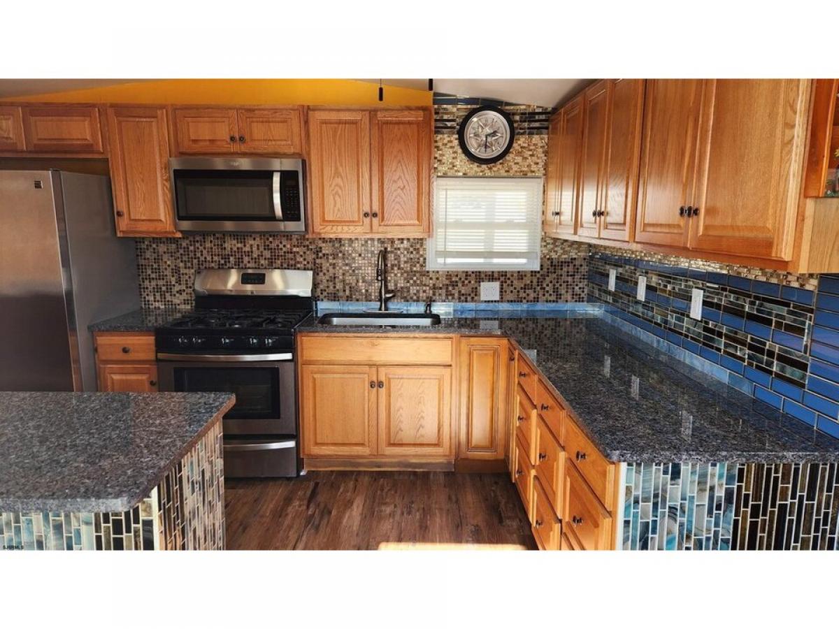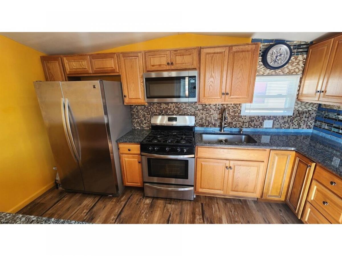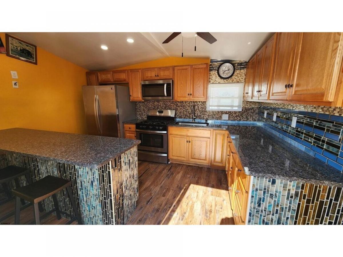 This 2-bedroom, 1-bath home features a living room and an eat-in kitchen with a dining bar. The updated kitchen includes wood cabinets with soft-close drawers, a mosaic tile backsplash, granite countertops, and stainless steel appliances. Modern upgrades throughout the home include USB outlets, recessed lighting, ceiling fans, and durable vinyl flooring. The bathroom is equipped with a whirlpool tub, smart music and lighting, and a washer and dryer hookup. A tankless water heater adds efficiency, and a front deck provides additional outdoor space. This property is being sold strictly AS-IS, with the buyer responsible for obtaining all necessary certifications and permits. Park approval is required. Lot fee is currently $700/month, including water, sewer, taxes and trash pickup. Buyer must be approved by park. Contact Holding by S amp; S at 856-885-3748 for application. All showings must be accompanied by a buyerrsquo;s agent.