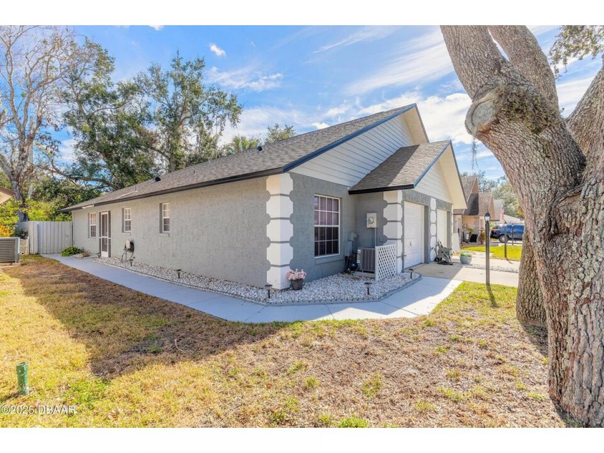 This charming 2 bedroom, 2 bath, townhome is nestled in the highly desired community of Dunlawton Hills located right in the heart of Port Orange. Upon entering through a private side entry, you#039;ll be greeted by a spacious living room with volume ceilings, new carpet, natural light floods the room through the new sliders (2021) that open to the fenced backyard. The open and inviting eat-in kitchen flows seamlessly into the Family Room a versatile space that can easily transform into a third bedroom, office, or formal dining area to suit your lifestyle. The owners suite features an ensuite bathroom with a separate vanity/sink area, walk-in closet, and a shower/toilet area for added privacy. The 1-car garage includes a laundry area amp; pull-down stairs for attic access, offering additional storage. Constructed of concrete block and stucco, this home has been well maintained. As part of this community, you#039;ll enjoy access to a pool while being just minutes from SEE MORE.... shopping centers, medical facilities, restaurants and just two mile to the beach. Roof new in 2021