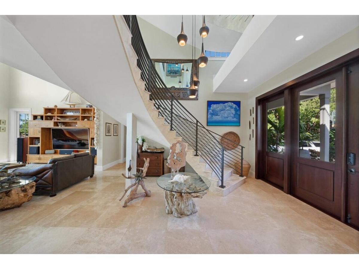 Welcome to Serenity Cay, an exquisite Balinese-inspired estate where tranquility and luxury meet the endless beauty on the Florida Bay. A true masterpiece of engineering and design, this sprawling waterfront residence on nearly 4 acres offers an unparalleled blend of tropical elegance, sophisticated craftsmanship, and modern luxury. An expansive infinity-edge pool blends seamlessly into the sparkling waters of the bay while lush gardens create a serene oasis. The home#039;s architecture showcases graceful, custom finishes and rich hardwoods, all hallmarks designs that evoke the spirit of the Islands. Spanning over 6,900 square feet, the interior is a seamless fusion of open-concept living spaces and private retreats. Soaring vaulted ceilings and vast windows invite abundant natural light and spectacular views of the bay, creating an indoor-outdoor flow. The primary suite serves as your personal sanctuary, complete with private terrace, spa-inspired bathroom, and walk-in closets fit for a connoisseur of fine living. Each guest has direct access to outdoor spaces and views. A bonus, versatile bunk room/media center sits just off the west wing of the home. The charming guest house is the perfect complement to the main home, nestled in its own secluded on site location this delightful addition exudes a warm, welcoming ambiance ideal for hosting guests, or as a private office or creative studio. This downtown Islamorada estate in an incomparable location; walking distance to shopping, dining, and local culture, also has appeal that extends to those with a passion for the great outdoors. Two protected docking basins and boat lift, sandy lounging beach, expansive outdoor lanai and outdoor kitchen offers the ideal space for entertaining or enjoying a quiet evening watching the sunset. Fly the seaplane in or land the helicopter. Premier boating access just moments away from the Intracoastal waterway and Ocean channels. Serenity Cay is not just a home, it#039;s an experience.