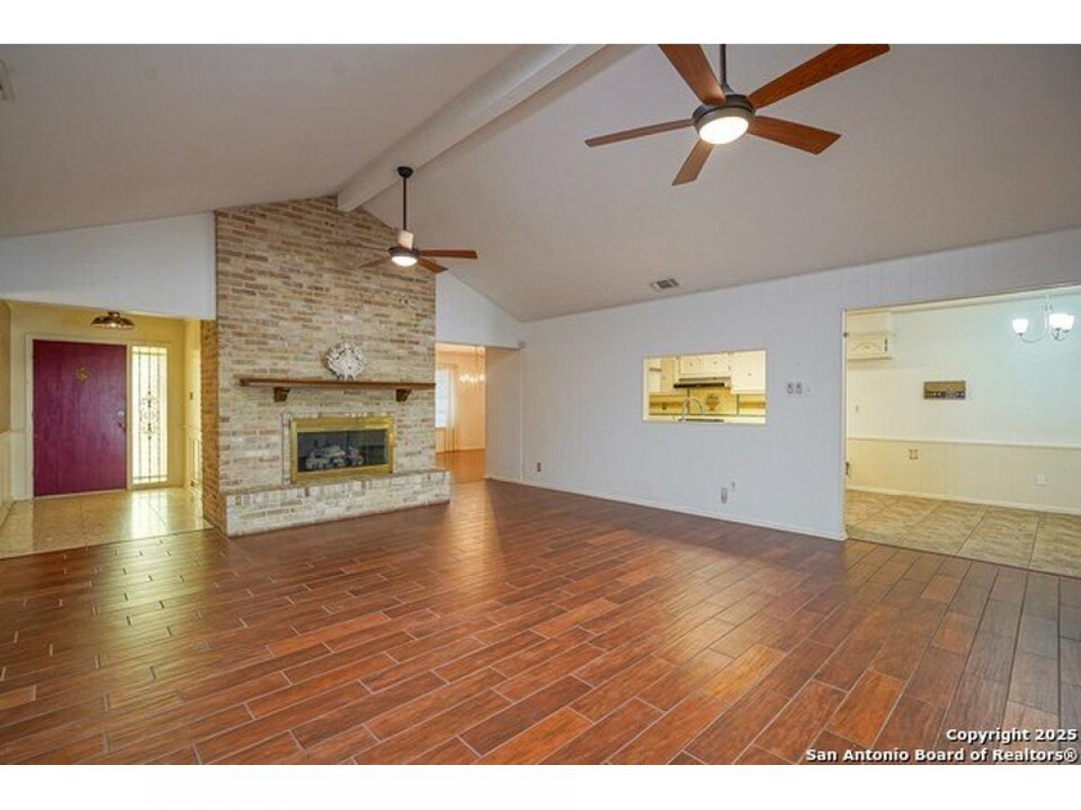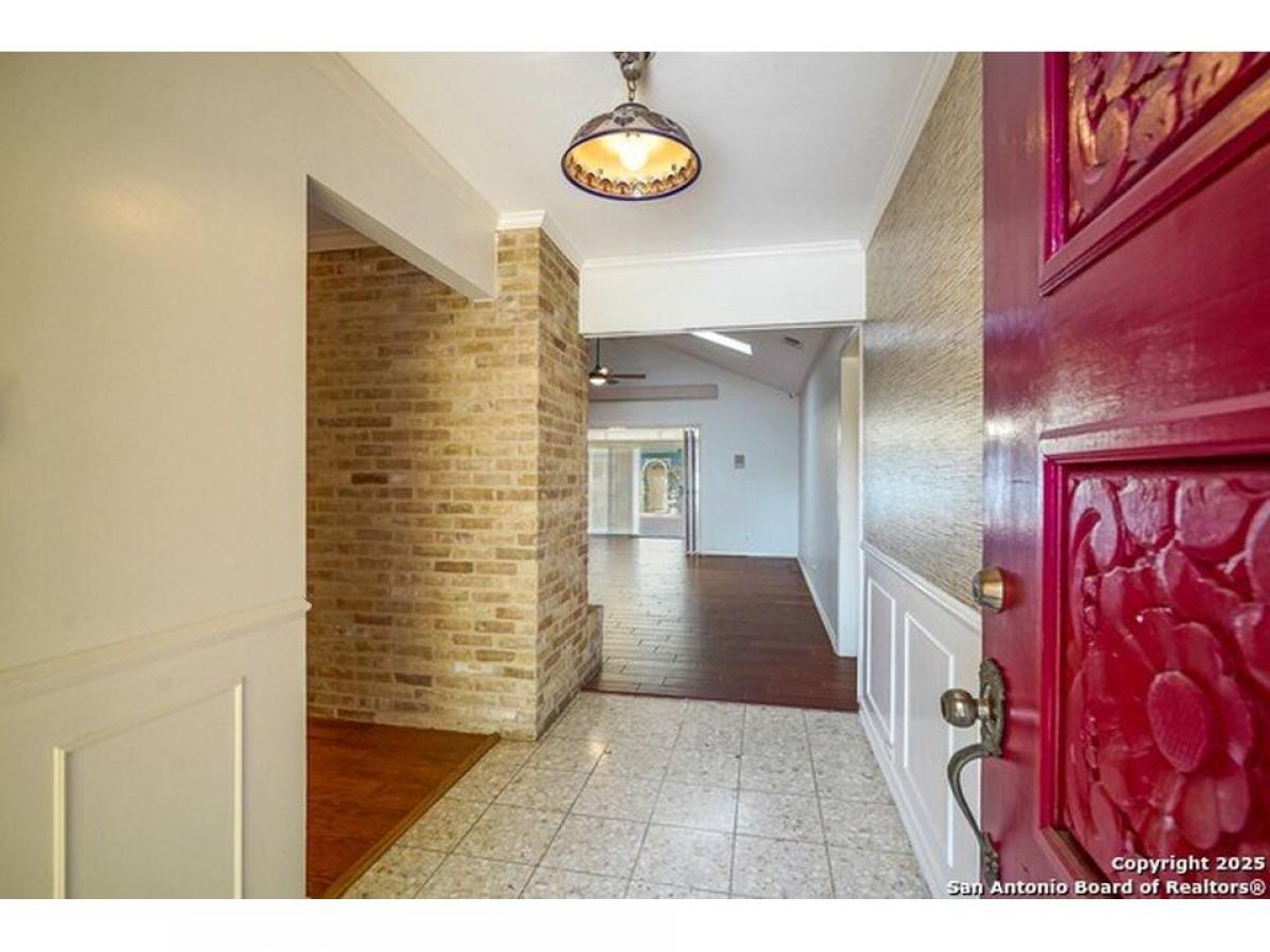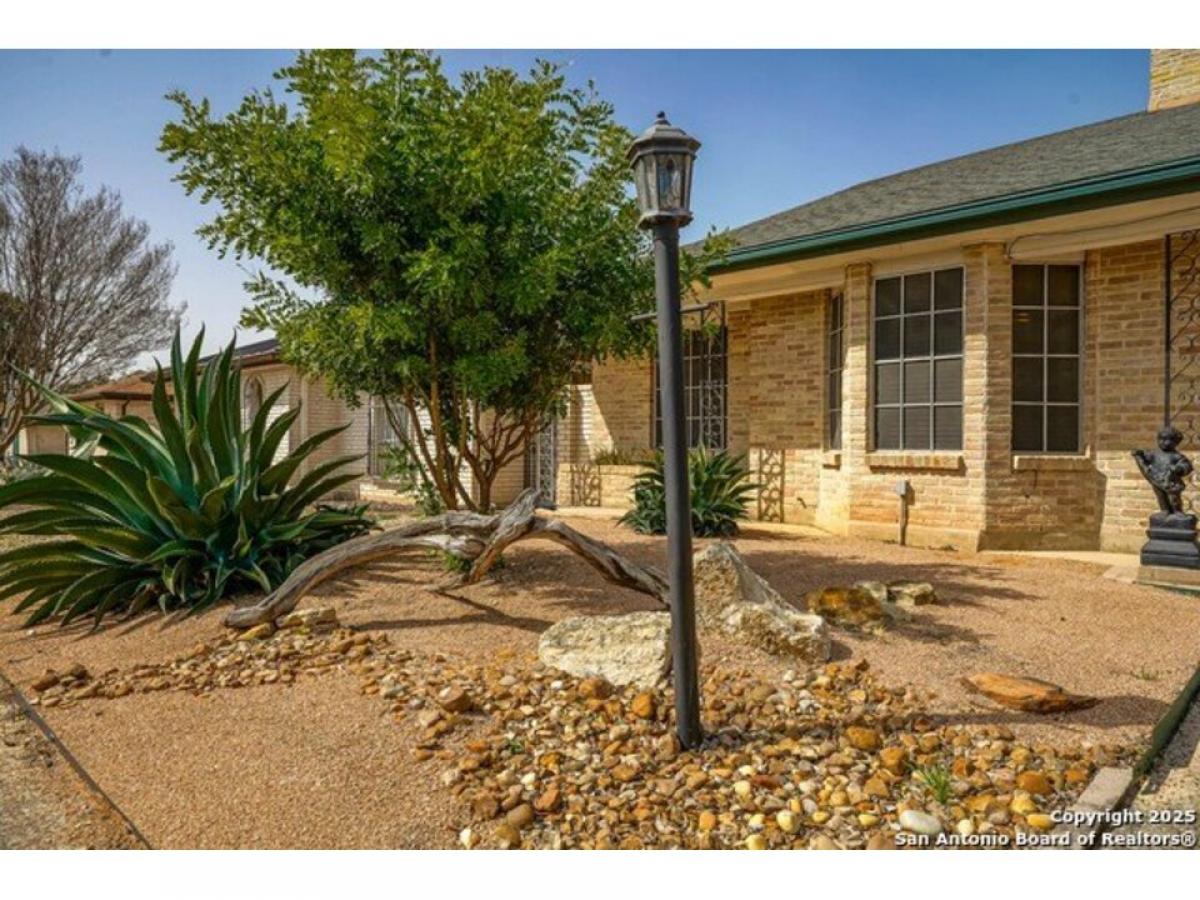 Stop the car! This gorgeous garden home in prestigious Windcrest is an absolute must see! You#039;ll be greeted by an award winning xeriscaped front lawn - meticulously maintained and featuring drought tolerant plants! Step inside and you#039;ll find fabulous hard wood floors in the living and dining rooms! The wow factor continues in the family room - beautifully appointed with wood-look tile, soaring ceilings, and a stunning floor to ceiling brick fireplace! The kitchen is a chef#039;s delight - with double ovens, a gas cooktop, and drawers in the lower cabinets for ultimate accessibility! The primary retreat has a walk-in closet, small flex space, and a roomy bathroom with double vanities and tons of built ins for storage! The family room, laundry room, and primary bedroom all have access to a bright and spacious sunroom! The crystal clear oversized sliding glass door in the sunroom leads you to a sprawling covered patio - an ideal spot to enjoy the serenity of the low maintenance back yard! The real show stopper out back is the 240+ square foot accessory building! Originally built as a pottery studio, the sky#039;s the limit for possible uses - workshop, home office, man cave/she shed, the list goes on and on! It#039;s got a mini-split AC unit AND a 4.26 kW solar array on the roof - keeping the utility bills at the property ultra low! The recently installed HVAC system in the main house also helps keep expenses down - its got a 5 year warranty and is enrolled in the John Wayne Smart Home Program! The rear entry garage provides privacy and even has a gun safe in its closet! All this and so much more, priced below BCAD appraisal! This one won#039;t last - better come quick!