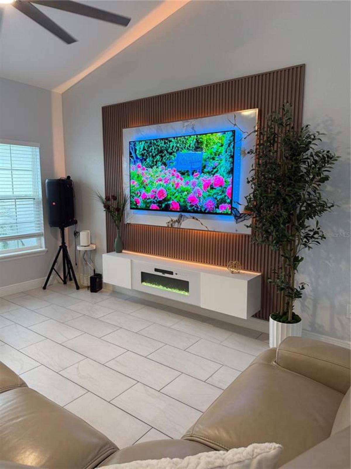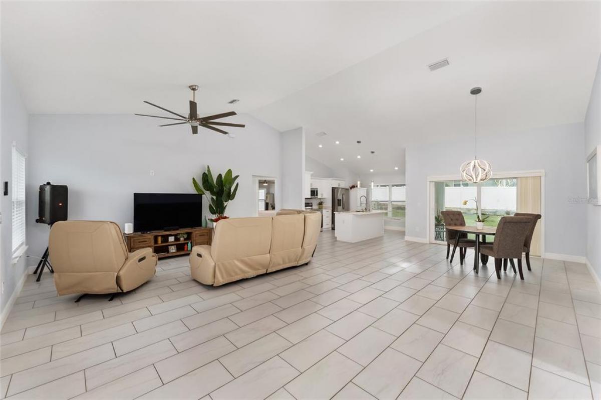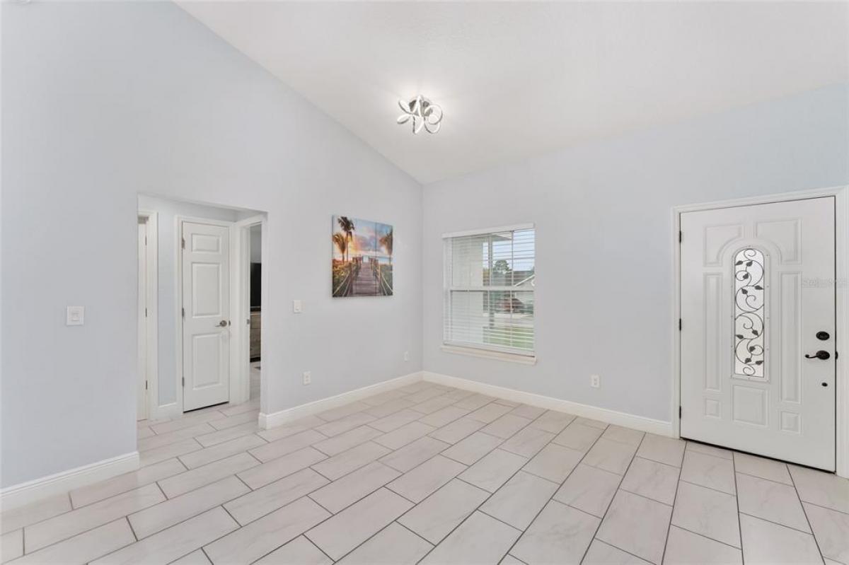 LOCATION! LOCATION! This property qualifies for 100% FINANCING USDA! NO HOA/CDD! Welcome to this charming and vibrant 3-bedroom, 2-bath in Orange Blossom Hills. Sellers have added an ACCENT WALL in living room with LED LIGHTS & ELECTRIC FIREPLACE. Entry area also has a beautiful accent wall with mirror and shelf. With 1,700 SQFT of Living space. NO CARPET, FULLY FENCED YARD. Concrete Block Construction. Open Floorplan with TILE FLOORS THROUGHOUT. GRANITE countertops are featured throughout the kitchen, bathrooms, laundry, and even the windowsills. Split bedroom design. The primary bedroom boasts a spacious walk-in closet, DOUBLE VANITY, and a gorgeous TILED WALK-IN SHOWER, PLUS+ a linen closet for added convenience. On the opposite side of the home, you'll find two additional bedrooms and a full bathroom with a shower/tub combo. Property is on Well Water and comes with a WATER FILTRATION SYSTEM. ALL APPLIANCES INCLUDED! GARAGE is equipped with MINI-SPLIT A/C UNIT. Location is key and this home offers the best of it! Directly across from The Villages Publix shopping plaza on Mulberry Lane, with VA clinic nearby. Medical offices, Restaurants, COSTCO, Golf Courses/Driving Range, Movie Theater, and gas stations are just minutes away. NO HOA/CDD fees.