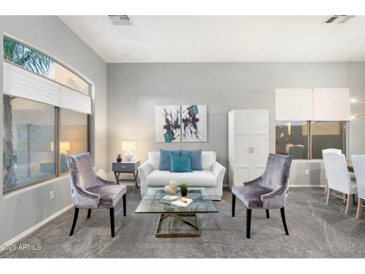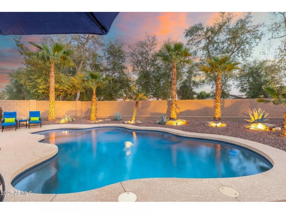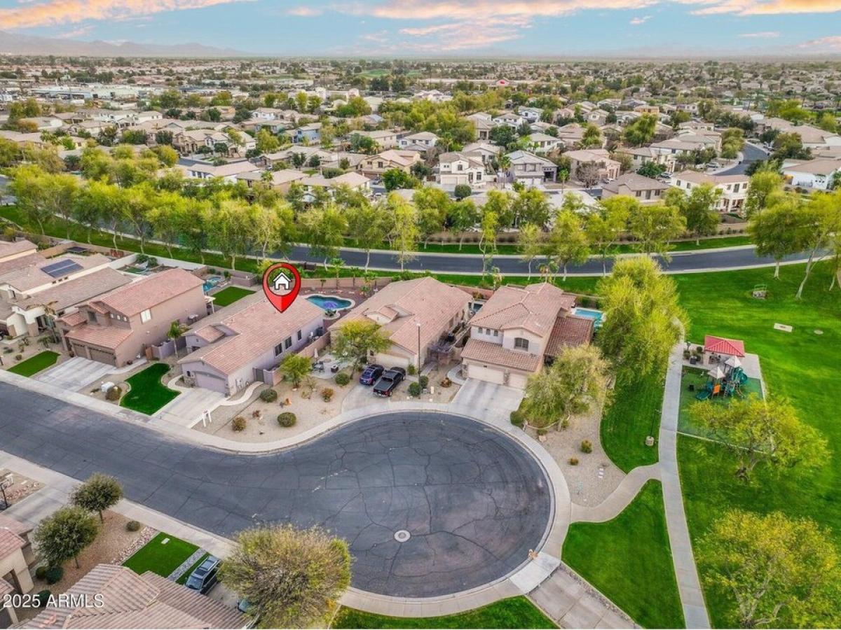 Beautiful 3 Bedroom, 2 Bath, 2.5 Car Garage Home in Chandler#039;s premier GATED community-Paseo Crossing! Perfect cul-de-sac lot! Across from the greenbelt amp; playground, w/ no one behind you-Walk to the Bear Creek Golf Course! Steps to the walking/running/ bike trail that goes miles to the north! Brand NEW Trane AC and NEW Water heater! 8ft interior doorways-10ft ceilings- Great floorpan w/ modern color palette, upgraded ceiling fans, lighting, carpet throughout! The Open floor plan includes formal living amp; dining rooms along w/ a separate den perfect for a home office or retreat. In addition the Family Room amp; Kitchen create great-room w/ views to the Backyard Paradise! The Kitchen boasts stainless steel appliances, white cabinets, gold accents, center island/ breakfast bar, overlooking the pool and lovely backyard. Modern colors and designer touches abound! The large master suite provides a quiet retreat with double door entry, large closet- the ensuite features dual sink vanity, separate garden tub and shower. A Very Private lot! The home has no home behind. Backyard has Beautiful pebble sheen 88ft perimeter play-pool and perfect landscaping! Garage is 2.5 car extended 4ft. Chandler#039;s Gated Community Paseo Crossings !! This Home features: *Gated Community *New Trane AC 2024 *New Waterheater 2025 *No homes directly behind this home *Cul de sac living -across from greenbelt, playground. walking trails! *School bus pick up quot;K thru H.S. quot; at playground area *Stones front accent on garage amp; house features *North / South exposure *Sun Screens *Walking distance to Bear Creek golf course ( executive amp; champion corse ) *88 perimeter pool with pebble sheen / 4#039; x 6#039; x 4#039; depth play pool *2.5 Car garage + extended 4#039; on length ( xtra storage ) *10#039; ceilings throughout home including garage *Dimmer switches throughout home