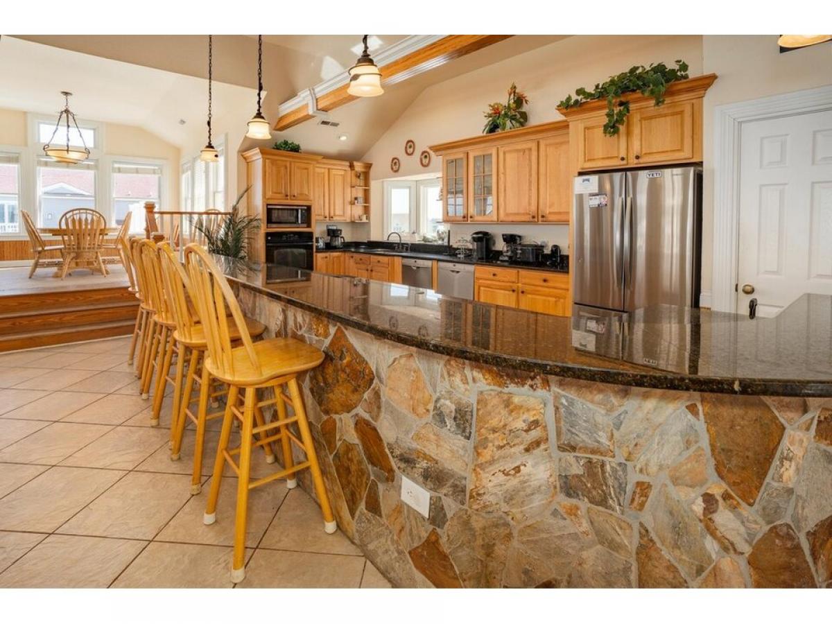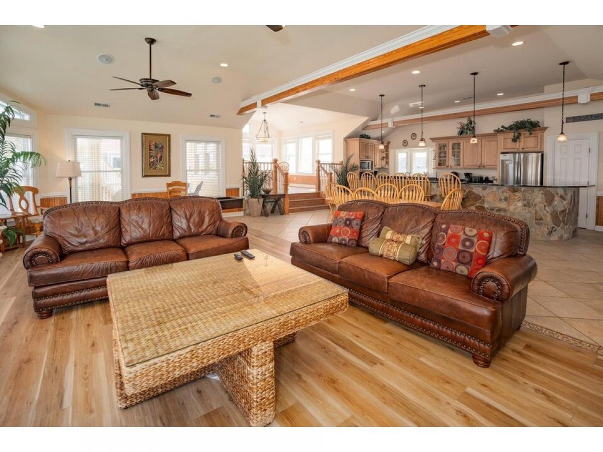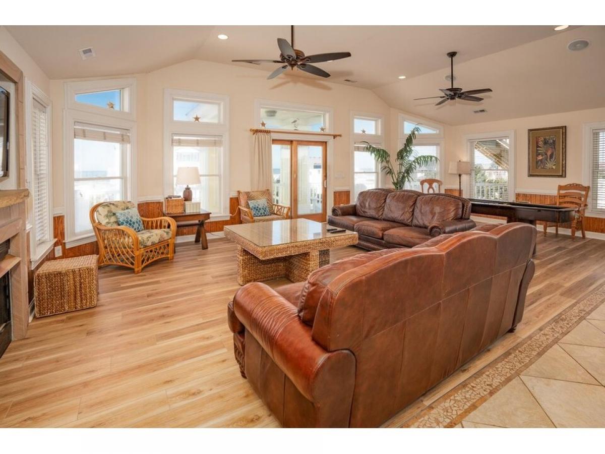 Back on the market, $100k price drop! Welcome to ldquo;Sunlight,rdquo; your dream coastal retreat in the popular Whalehead Community of Corolla with over $200k on the books for 2024. This remarkable semi-oceanfront property boasts an incredible 9 bedrooms and 8 bathrooms, making it the perfect haven for large families and groups seeking the ultimate Outer Banks experience. As you approach this stunning home, you will immediately notice the tasteful upgrades that enhance its curb appeal and functionality. The recently installed new decking on the top deck offers panoramic views of the Atlantic Ocean, allowing you to savor breathtaking sunrises and unwind with the soothing sound of the waves. The northeast side of the home originally had stone siding that was removed and was recently replaced with LP Smart Siding. Set up as a reverse floor plan, on the top level of the home, you will find a great room, with high ceilings and many ocean-facing windows to allow natural light to fill the space. The large kitchen comes equipped with a new cooktop and granite countertops. There is one bedroom on the top level that has new flooring with access to the wrap-around decks. The middle level also has all-new flooring throughout the 5 bedrooms. The ground level comes equipped with a rec room and the remaining three bedrooms. This area flows out seamlessly to the pool area. The pool area is surrounded by 3 levels of decking with a tiki bar on the bottom and a hot tub in the middle. Schedule your showing today and enjoy walking into a summer full of rental income.