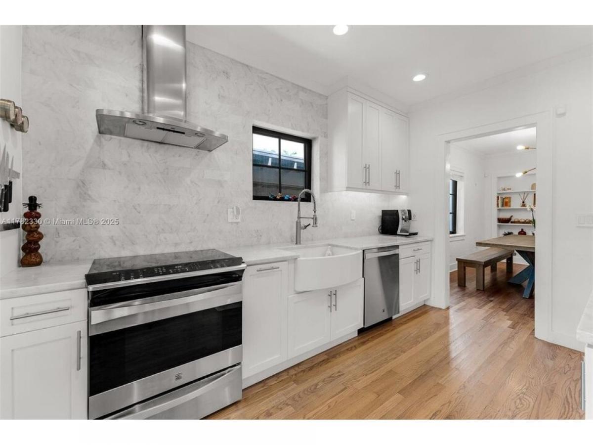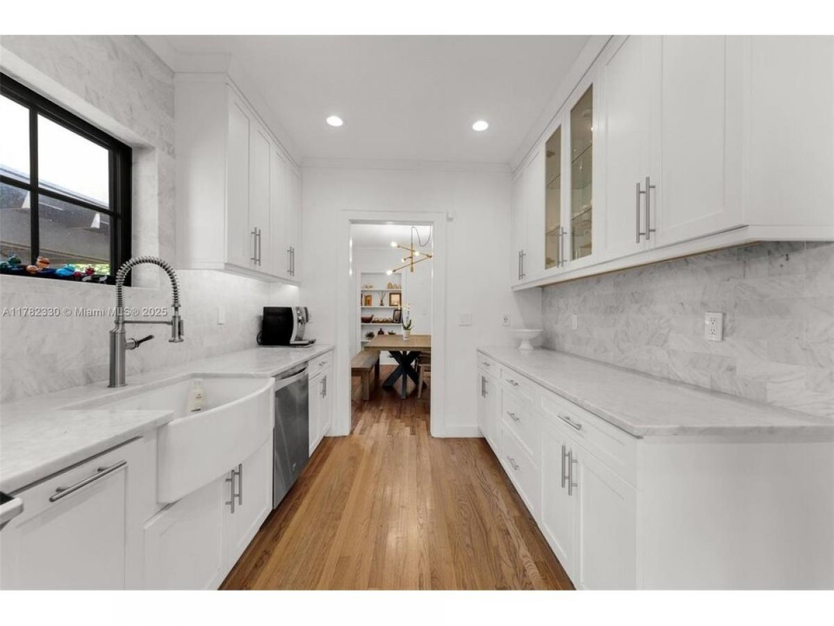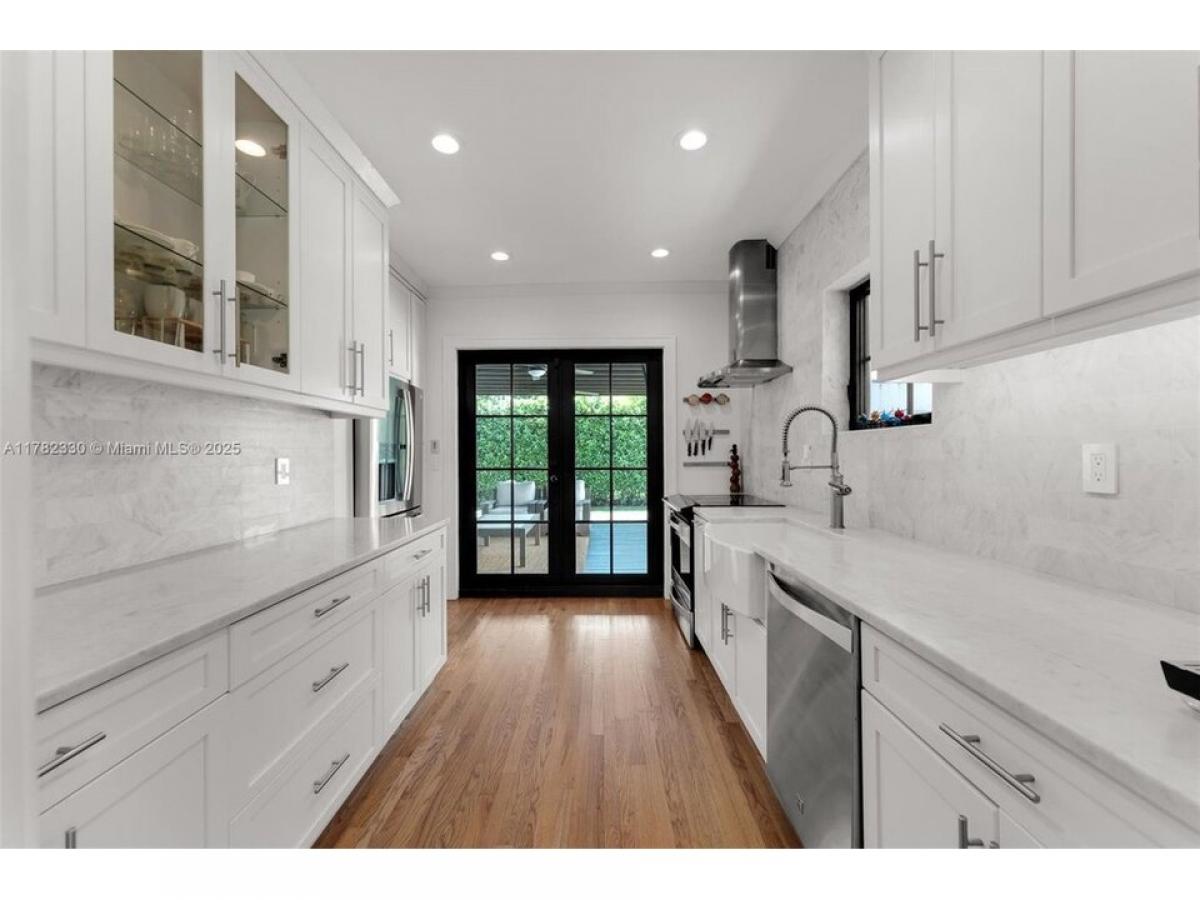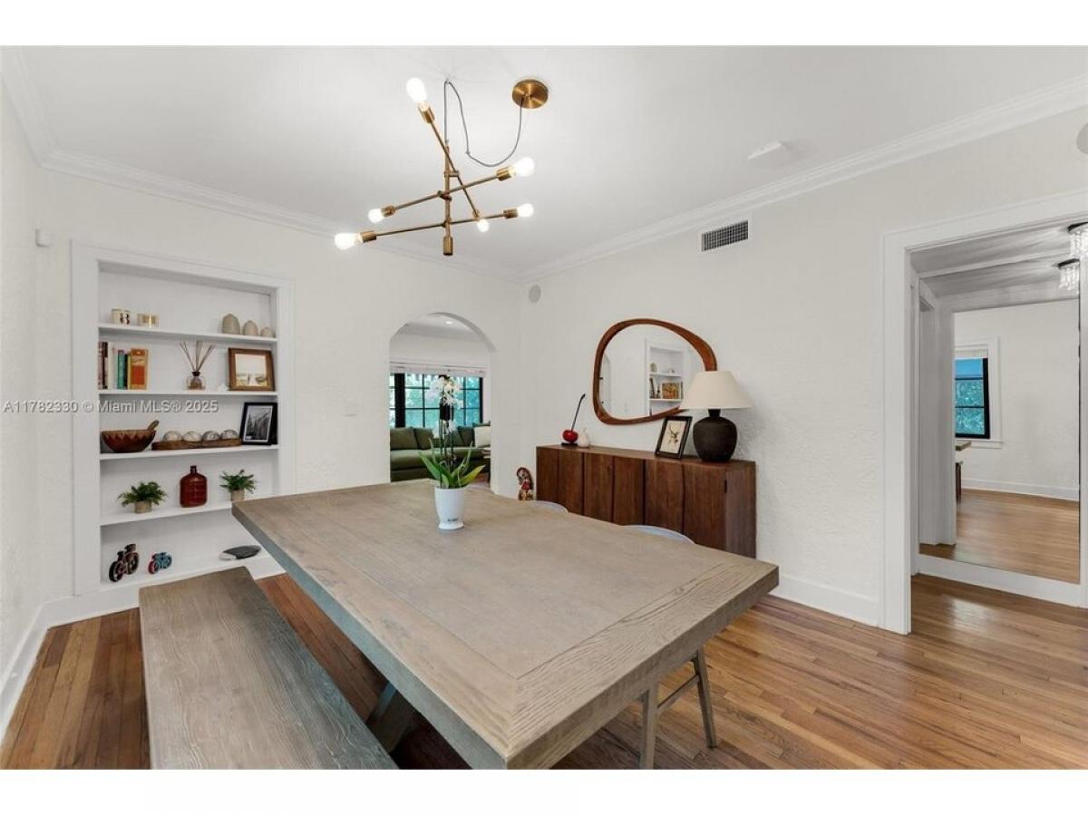 Charming Old Spanish on a lovely tree lined street in Coral Gables. Stylish home combines historic touches amp; all the modern conveniences. Beautiful foyer with original mosaic tile flooring flows seamlessly into the beautiful living amp; dining areas. Gorgeous amp; thoughtfully designed kitchen with top-of-the-line appliances amp; hi-end finishes. Spacious primary suite with an elegant en-suite featuring a large glass enclosed shower amp; separate soaker tub. Lovely secondary bedroom, used as a nursery, amp; an updated second bathroom. The outside covered patio deck is perfect for relaxing or hosting friends amp; family. Detached, air conditioned, 1car garage w/laundry amp; extra storage. High ceilings, original wood flooring, surround sound speakers amp; impact windows amp; doors means this home is MOVE-IN ready!
