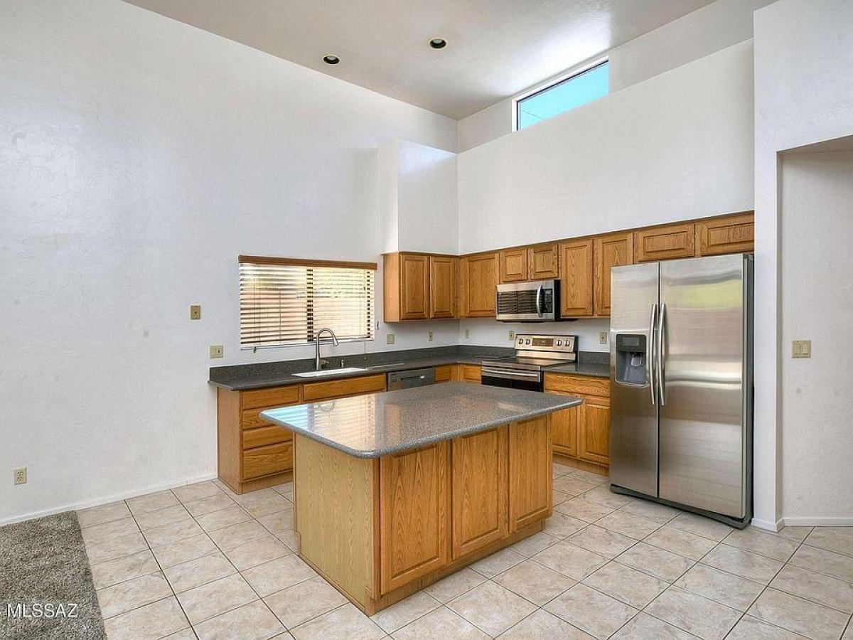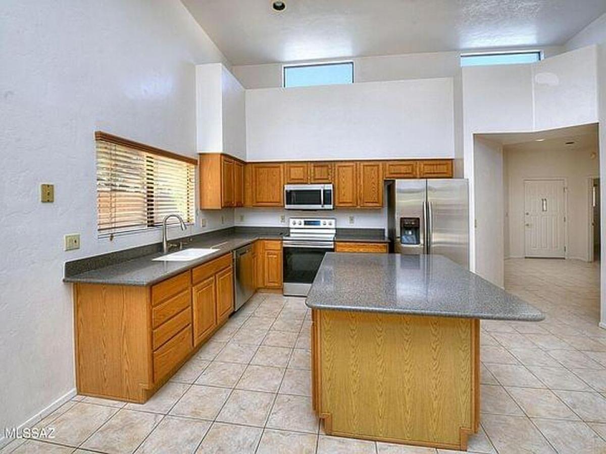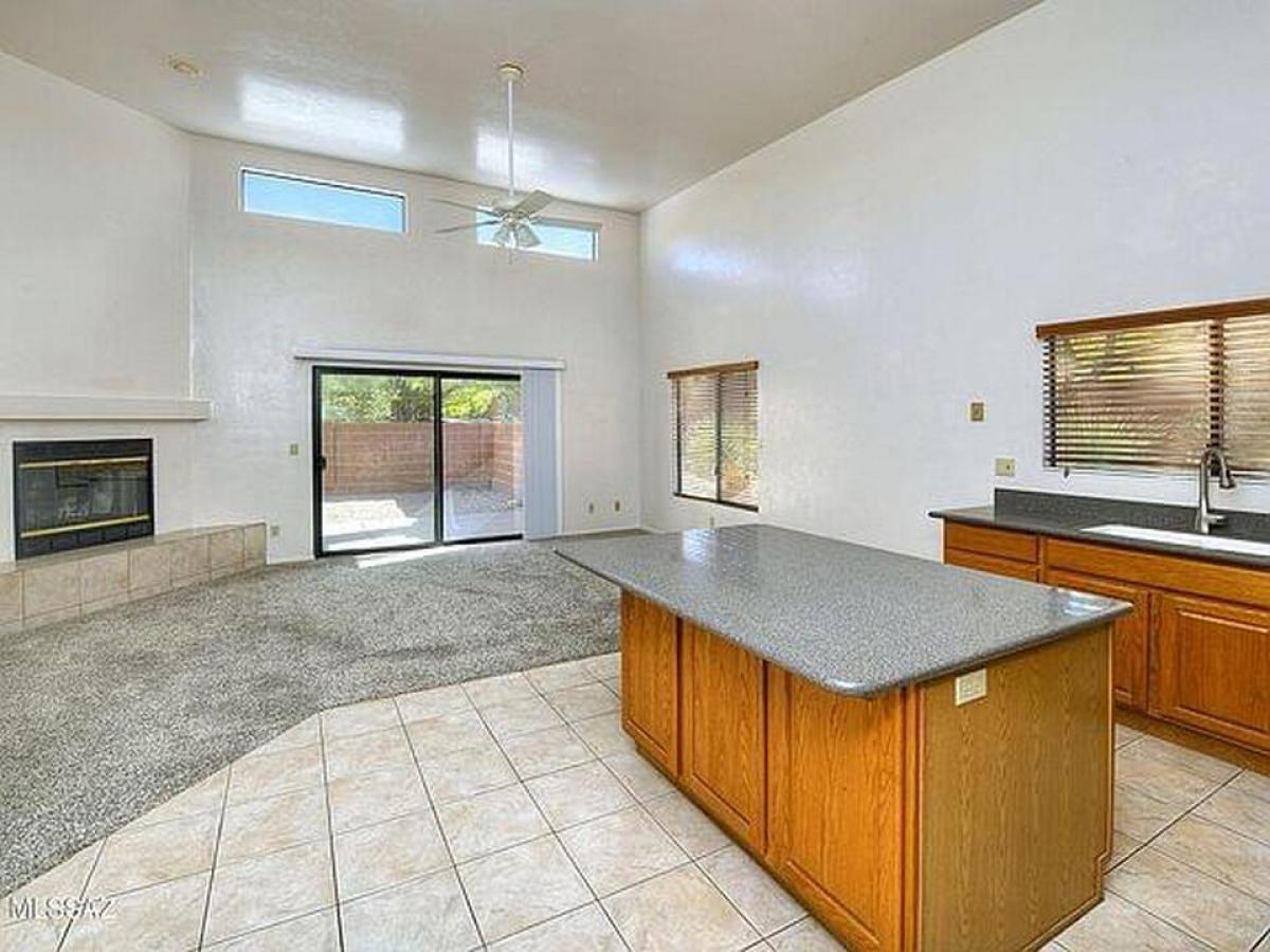Designed by renowned architect Ron Robinette, this charming home combines modern design with functionality. Featuring soaring vaulted ceilings and clerestory windows that fill the space with natural light, it offers a spacious island kitchen with sleek stainless steel appliances. The kitchen flows seamlessly into a large great room, complete with a cozy fireplace, creating the perfect setting for entertaining. Step outside to an expansive block-walled backyard with mountain views and a covered patio ideal for outdoor relaxation. Located at the end of a quiet cul-de-sac, the home is part of a welcoming community with a pool and picnic area. Enjoy easy access to both Tucson and Oro Valley's shopping, dining, and entertainment options.