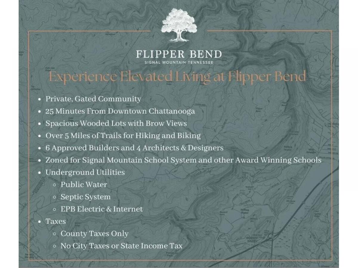 This stunning property is nestled in the sought-after neighborhood of Flipper Bend on Signal Mountain. Boasting 4 bedrooms, 3.5 bathrooms, and over 3,600 square feet of living space this home offers just about everything you need. Walk up the front porch and into the foyer, you are greeted with the steps going to the second level, a half bath, and goat closet. Move further into the home, and into the spacious great room with a centering fireplace and sliding doors leading to the back porch. The kitchen and dining room provide ample space, complete with an eating bar and a large walk-in pantry. The master suite on the first floor provides convince and luxury, featuring a free standing tub, curbless shower and a substantial walk in closet. The remaining bedrooms dwell on the second floor, featuring bathrooms and sizable closets. Additional living space includes a loft, sitting room, walkout attic, and bonus room. The double two-car garage provides easy access to the house through the laundry room, while the separate 3rd garage provides generous space for tools, storage, or extra vehicles. Situated on 1.2 acres, this newly constructed home by Ron Marsh Construction is truly a dream. Flipper Bend is a new gated community tucked into an untouched portion of Signal Mountain, TN. Enter through the Gate House and find yourself immersed in a local community unlike anything else in Chattanooga. Each property is thoughtfully designed to harmonize with nature. Storybook views of the Tennessee valley, historic Cumberland plateau and surrounding areas abound. The community is perched high above the crowd below, allowing you to breathe, relax, and become one with the wonder surrounding you. Carefully planned hiking and biking paths meander for miles while an elevated community center with gorgeous brow views will entertain and relax you year around. *THIS HOME IS UNDER CONSTRUCTION AND ESTIMATED TO BE COMPLETE OCTOBER 2025* Come discover why Flipper Bend is a one-of-kind mountain living in a highly desirable development. Signal Mountain School Zone and minutes to shopping, Chattanooga Airport and downtown dining. This amazing home has appliances and appointments that are typically only seen in luxury homes. There is still time to make some of your own selections. Schedule a showing to view this beautiful new build home.