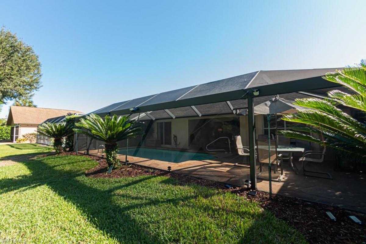 Wonderful single family 3 bedroom 2 bath home with pool and picture window cage enclosure around pool and private backyard loaded with upgrades. 2019 Cornerstone kitchen with granite countertops, custom drawers with soft close and newer stainless steel appliances. 2025 dual level programmable hot water heater. 2022 pool heater. 2019 Pool screen and pool cage. 2020 oversize, high efficiency air conditioning with custom ducts. Attached 2 car garage with overhead storage . also included 5 foot built in safe.. 9 kilowatt generator. Alarm system with 4 cameras, 2 inside 2 outside and motion sensitive security lights. All outdoor furniture stays as well as grill and. Enjoy a cold one watching game on a 55 inch TV while floating in the pool. Roof 2018. Low voltage yard lamps. Solar lights. Central location and great neighborhood only 15 minutes to downtown, close to freeways, beaches and more. Property is not in flood zone, classified as X500. Assumable termite protection.