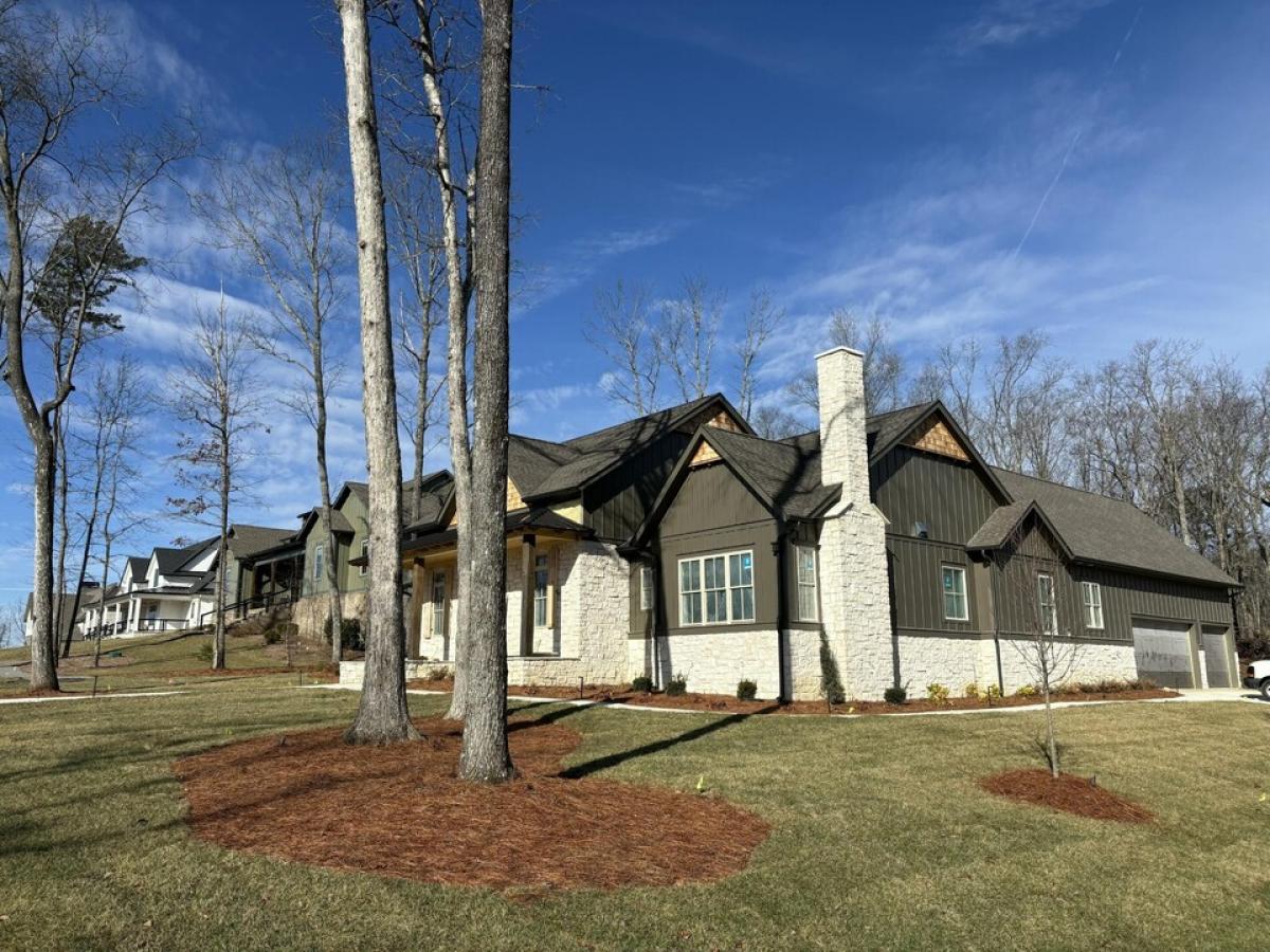 Nestled in the serene mountains, this 4-bedroom, 4-bath home, crafted by Deep South Custom Homes, beckons you to experience the ultimate mountain retreat. As you walk up the grand porch and step into the foyer, your gaze is drawn through the expansive living room 16ft sliding glass door that opens out to the covered porch wooded backyard. To the right, the kitchen with a butler's pantry opens into a cozy keeping room adorned with a fireplace, creating a warm and inviting ambiance. Continuing down the hall, you'll discover a guest bedroom, a full bathroom, and a convenient utility room leading to the garage. On the opposite side of the home, two additional bedrooms await, along with the luxurious master ensuite. The master bedroom boasts a charming fireplace that separates the sleeping area from a cozy sitting nook. The master bath is a sanctuary in itself, featuring a garden tub, a spacious walk-in closet, and a stylish standing shower nestled in between. Upstairs, you'll find a home theater and a versatile space that can be transformed with endless possibilities for entertainment and relaxation. On the outside, this house is crafted with dark gray, wood tones, and stone, complimenting well to the corner, acre lot, creating a harmonious blend of modern sophistication and natural beauty. Custom built cabinets and interior trim details make this house stand out as being one of kind. Across from the brow creates great views off the large front porch, come see for yourself! On the opposite side of the home, two additional bedrooms await, along with the luxurious master ensuite. The master bedroom boasts a charming fireplace that separates the sleeping area from a cozy sitting nook. The master bath is a sanctuary in itself, featuring a garden tub, a spacious walk-in closet, and a stylish standing shower nestled in between. Upstairs, you'll find a home theater and a versatile space that can be transformed with endless possibilities for entertainment and relaxation.