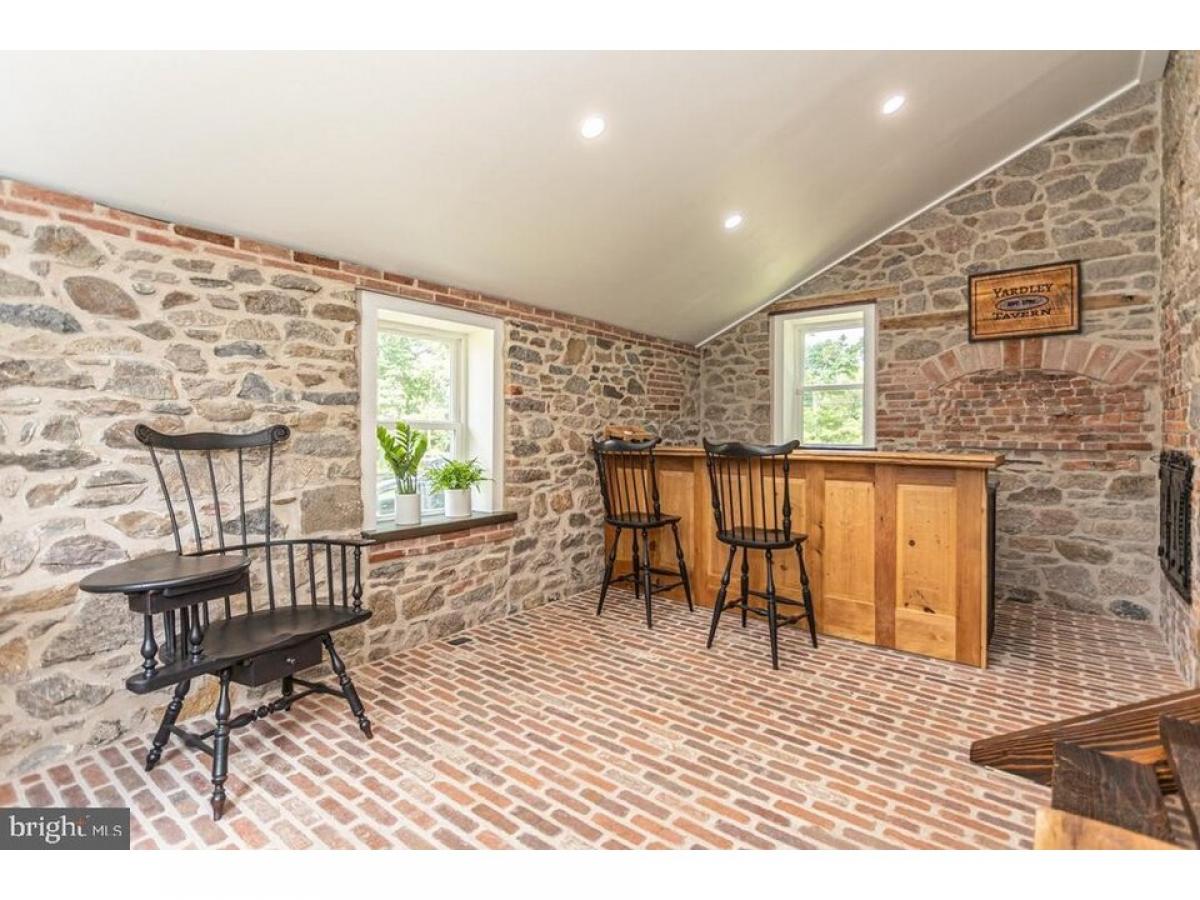 This circa 1750 stone farmhouse was once The Yardley Tavern and a ferry house, making it a popular stop for travelers and the locals of Yardley. Therersquo;s even evidence that George Washington was a frequent visitor during the American Revolution and that the tavern and smokehouse were used as a stop and safe house for the Underground Railroad. Historic and modern style collide once you step inside, with a portion of the first floor remodeled on the show Stone House Revival. Walking in, you are welcomed into the pub room, featuring an original beehive oven, a bar, an accent shiplap wall, a vaulted ceiling with recessed lighting, and gorgeous brick flooring. A few steps up is the Great Room featuring exposed stone and shiplap walls, a fireplace, a beamed ceiling, random width wood flooring throughout and access to a finished powder room. A newly repointed fireplace, soapstone farmhouse sink, new appliances and Quartz counters pose for a great focal point in the newly renovated Kitchen and Breakfast Room. Up the stairs to the second floor pays homage to the traditional setup of a Bucks County farmhouse, with half of the floor belonging to the Main Suite. The Main Bedroom is situated so the beautiful stone fireplace is a focal point and offers private access to a spacious Full Bath and Dressing Room. On the other side is another suite-style bedroom ready with its own Full Bath and convenient laundry area. The third level is open to your imagination, perfect to add a Study or Sitting Room across from a potential third bedroom. Outside is a smokehouse and a lovely yard ready to be transformed. The home features Newer windows, a Newer roof, added ductwork for heating and cooling, Newer HVAC, Newer pex plumbing, Newer electrical, public water, public sewer, and natural gas. With seasonal views of the Delaware River, donrsquo;t miss this great opportunity to own a piece of history with modern amenities.