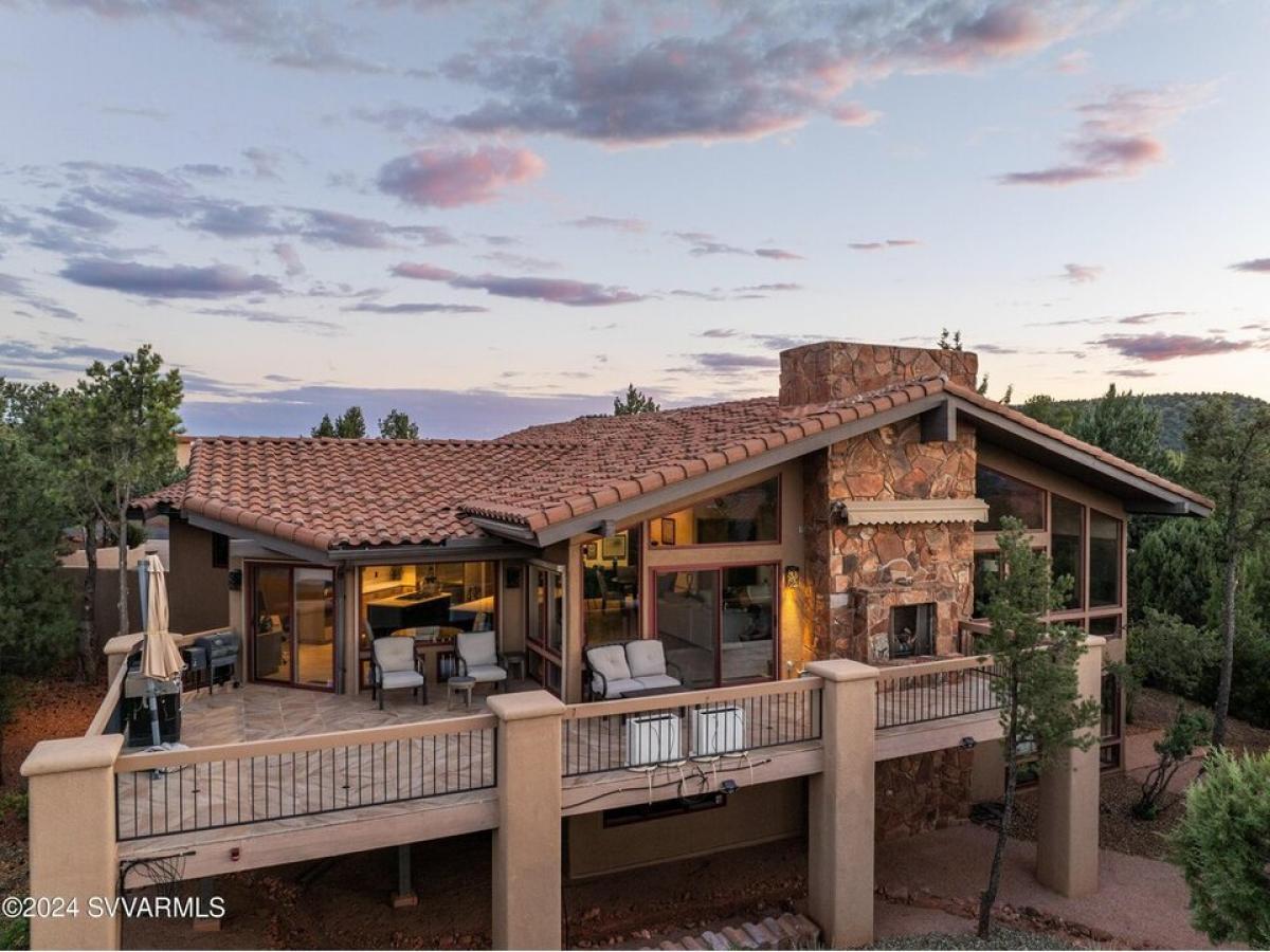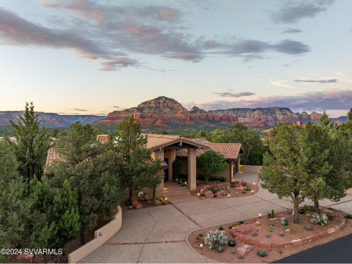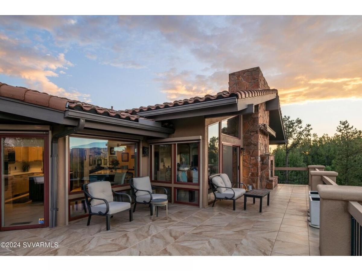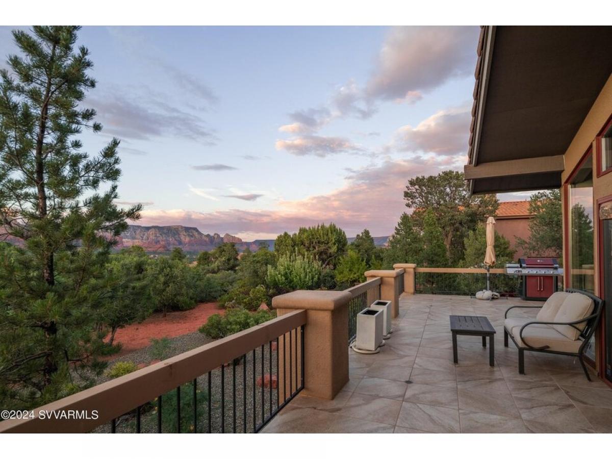 This 4,364 sq. ft. home in the gated Foothills South subdivision sits on .47 acres, offering breathtaking Thunder Mountain red rock views along with the convenience of new solar panels and an upgraded HVAC system. Thoughtfully designed for both luxury and energy efficiency, this home truly captures the essence of Sedona living. at room features newer wood floors, cedar wood ceilings, a stone gas fireplace, and floor-to-ceiling windows that flood the space with natural light while showcasing the stunning surrounding scenery. The chef#039;s kitchen is a standout, boasting new quartz countertops, a gas Viking cooktop, Wolfe double ovens, a Sub-Zero refrigerator, and a Wolfe microwave, creating the perfect space for culinary enthusiasts. There#039;s room for a pool! Photo of pool staged.