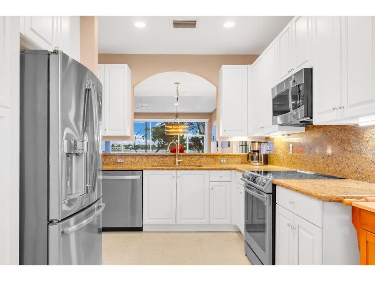 Discover your ideal corner townhome in the beautiful Lakeshore community, where comfort meets convenience! Enjoy breathtaking panoramic views of the Intracoastal. This well-maintained end unit features many windows and offers a spacious eat-in kitchen complete with granite countertops, a pantry, pull-out shelves, a new dishwasher, and an induction range. The home includes tile floors, cozy carpet, soaring vaulted ceilings, a washer and dryer, accordion shutter, and a private garage that is perfect for cars (with 220 amp service), bikes, and beach essentials. Recent upgrades include a BRAND-NEW ROOF, a whole-house water filter, a new lanai enclosure, new blinds, and window tint. Lakeshore is a gated, intracoastal waterfront community located minutes from the beaches, I-95, major airports,