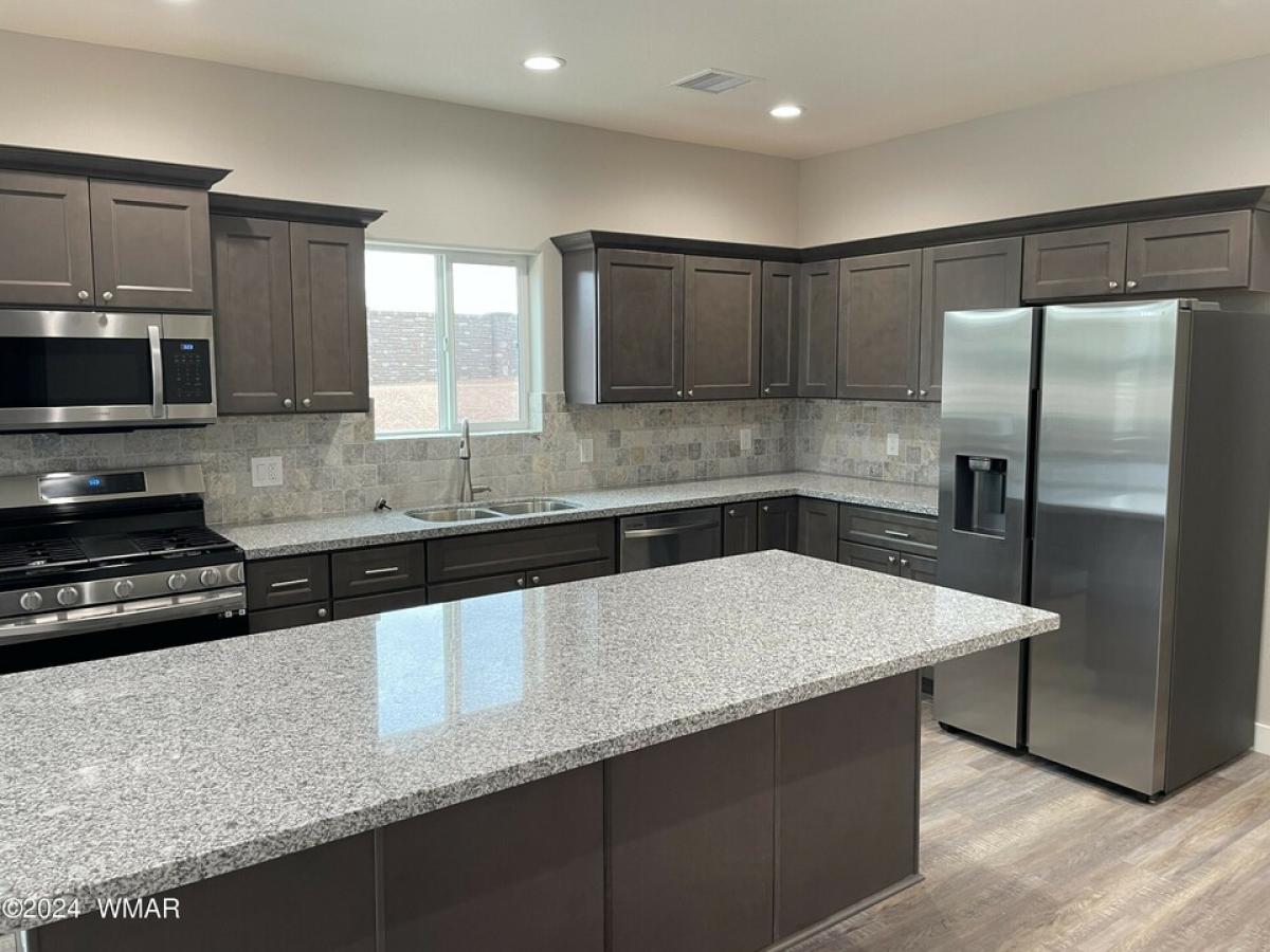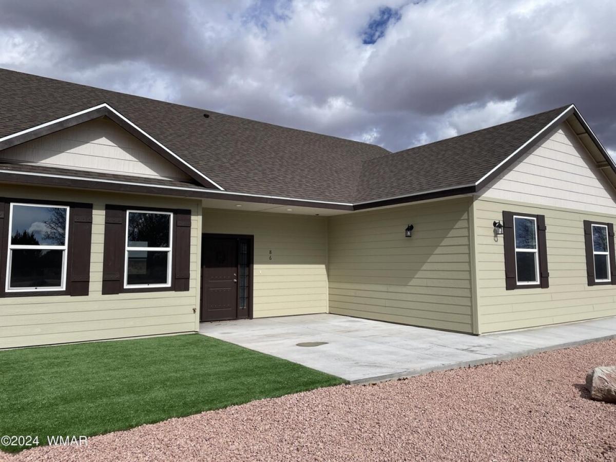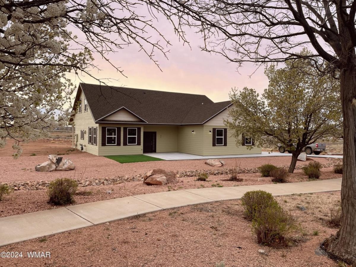 Great floor plan in a new subdivision. This beautiful new build comes with front yard hardscaping and side-entrance garage. Upgrades include lifetime dimensional shingles, tankless water heater, granite countertops, sold wood cabinetry with soft-close doors, and spray foam insulation for high efficiency heating and cooling. This house has a huge walk-in pantry, travertine backsplashes, and big-as-life back porch for watching the beauty of Navajo County's setting sunset. Listing agent is a principal of the Seller LLC.