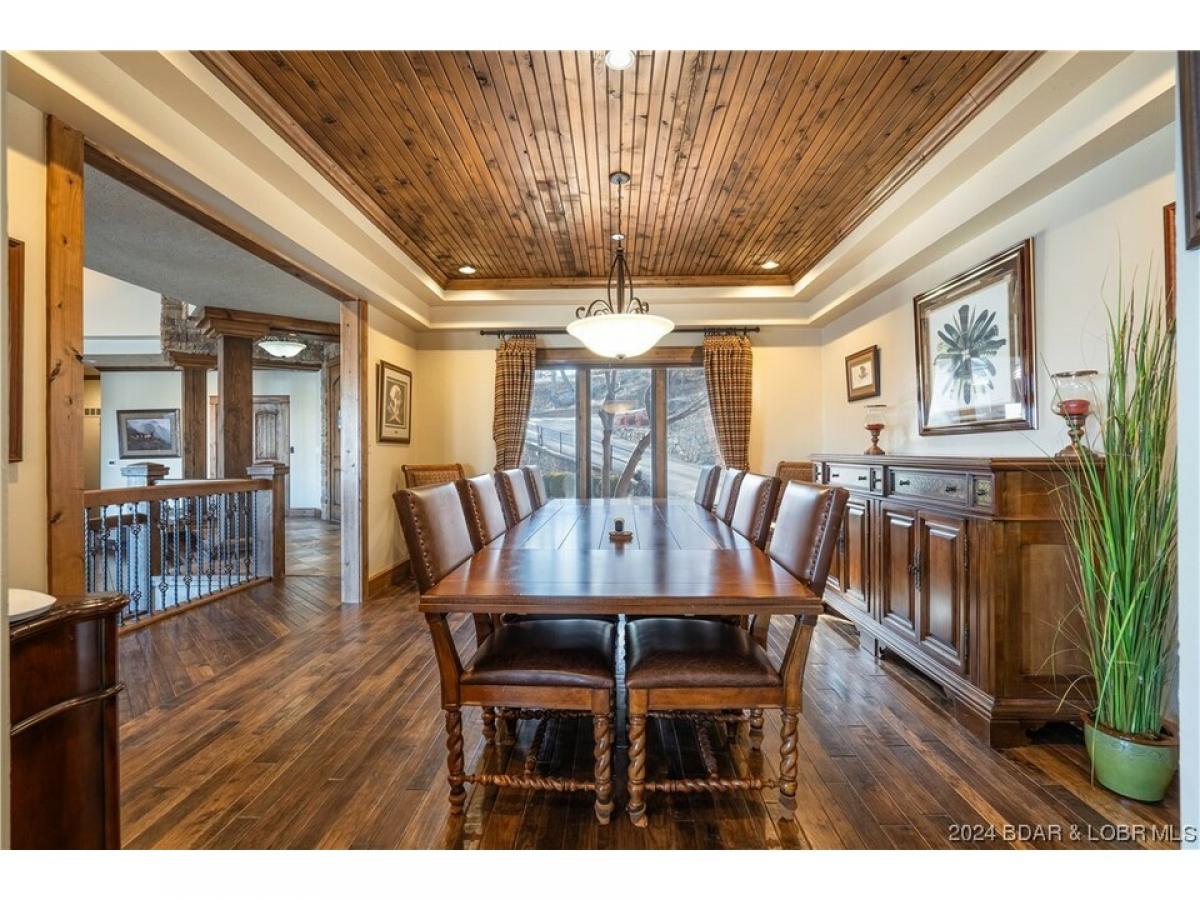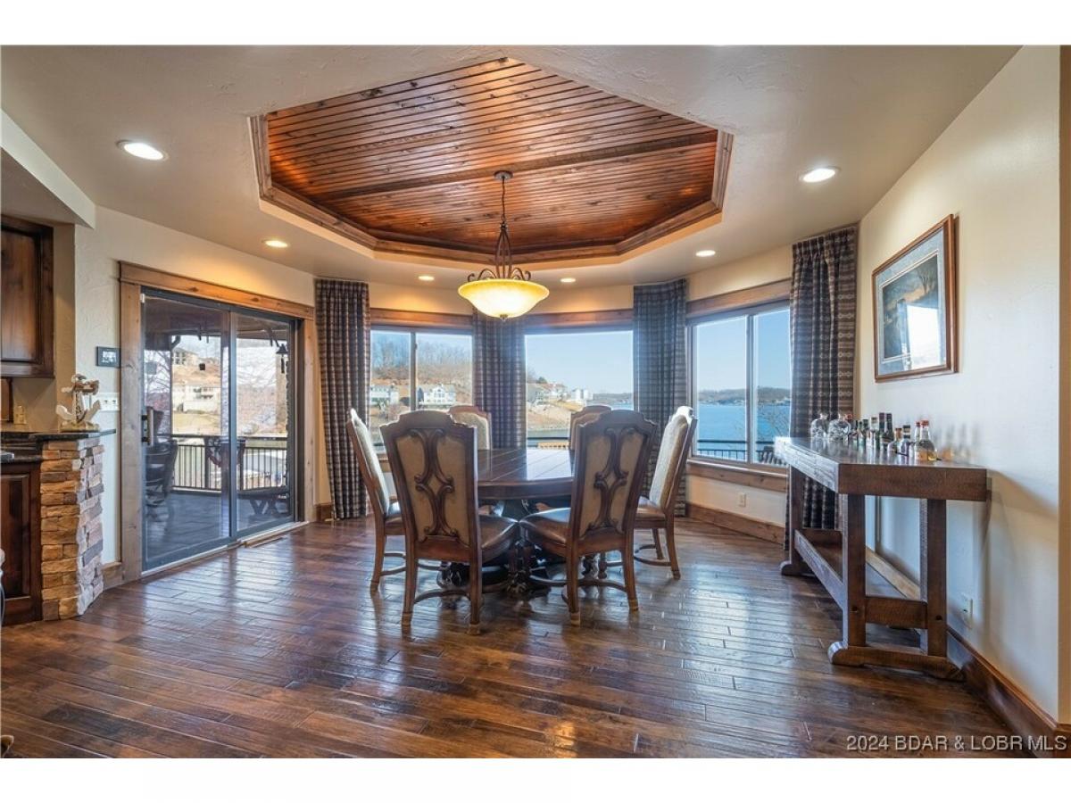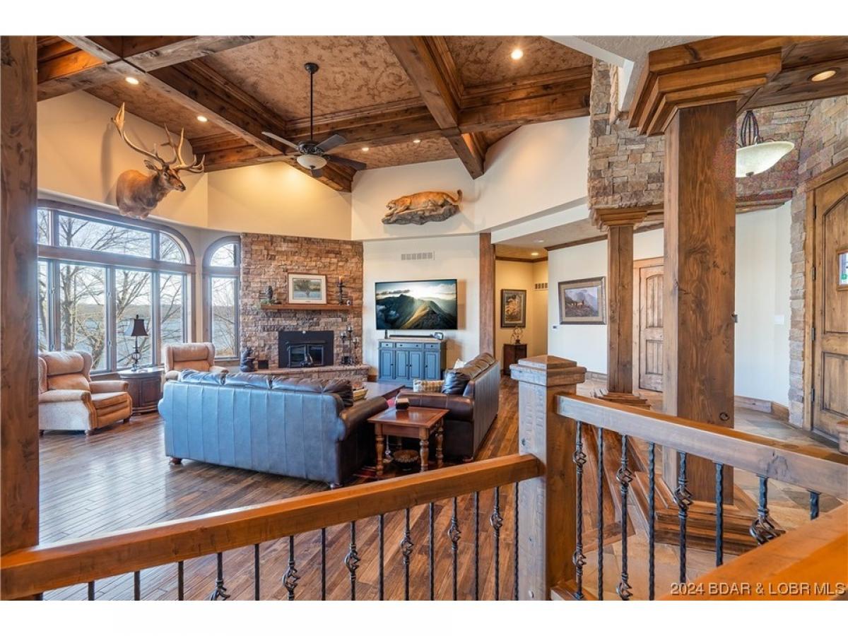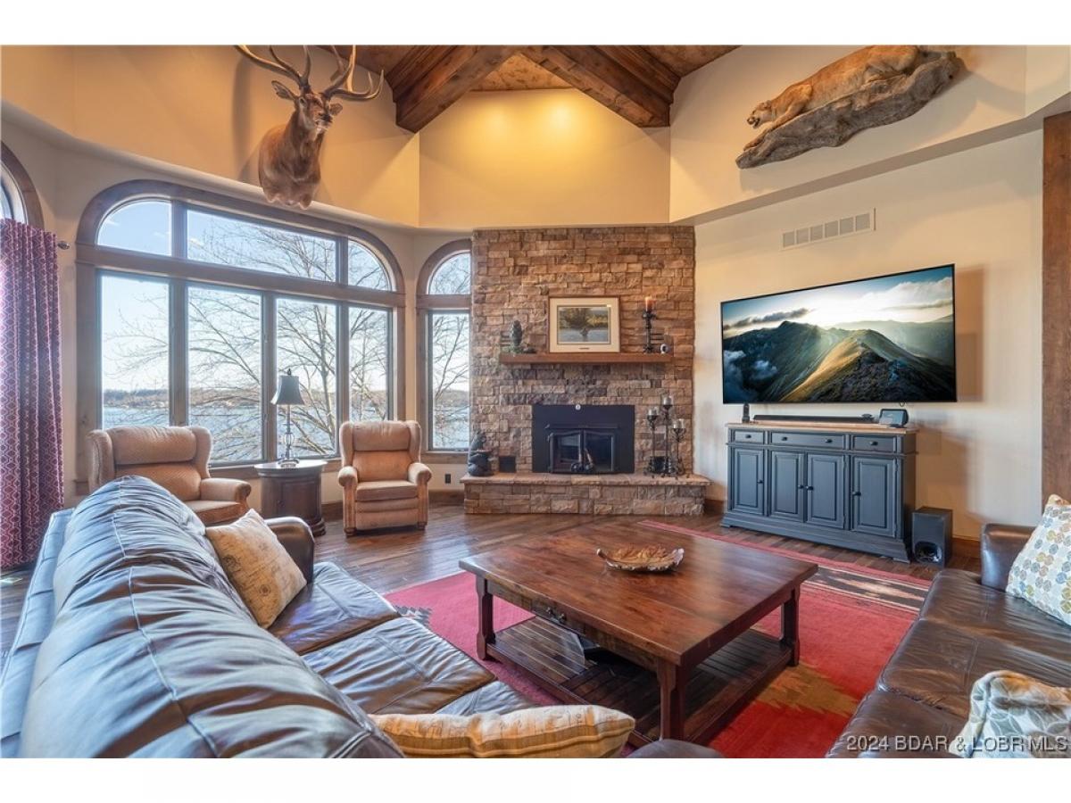 Upgrade your Lakelife in this 6 bedroom (plus an office and bonus room), 7 bathroom waterfront home with a 3-car garage! This home has room for all your friends and family this Fourth of July! Situated on a generous lot w/276 feet of lakefront, a perfect blend of comfort, elegance, and natural beauty. As you step inside, you'll be greeted by a warm and inviting ambiance with slate tile and, hand-scraped hickory floors. The soaring, box-beam ceiling and extremely well-done trim work set the tone for the entire home. The open-concept floor plan seamlessly connects the living, dining, and kitchen areas, providing an ideal space for entertaining. The living room is bathed in natural light streaming through large windows, offering breathtaking views of the surrounding landscape. Cozy up by one of the 3 fireplaces on cooler evenings or step out onto one of the open, or screened- decks to soak up the sun and enjoy the fresh air. Relax in the private lakeside hot tub and enjoy the miles of lake views! Plus the oversized concrete dock fits all your lake toys! This is your new happy place! (Completely renovated down to studs in 2009, nothing in the home is from 1993 the “year built”.)