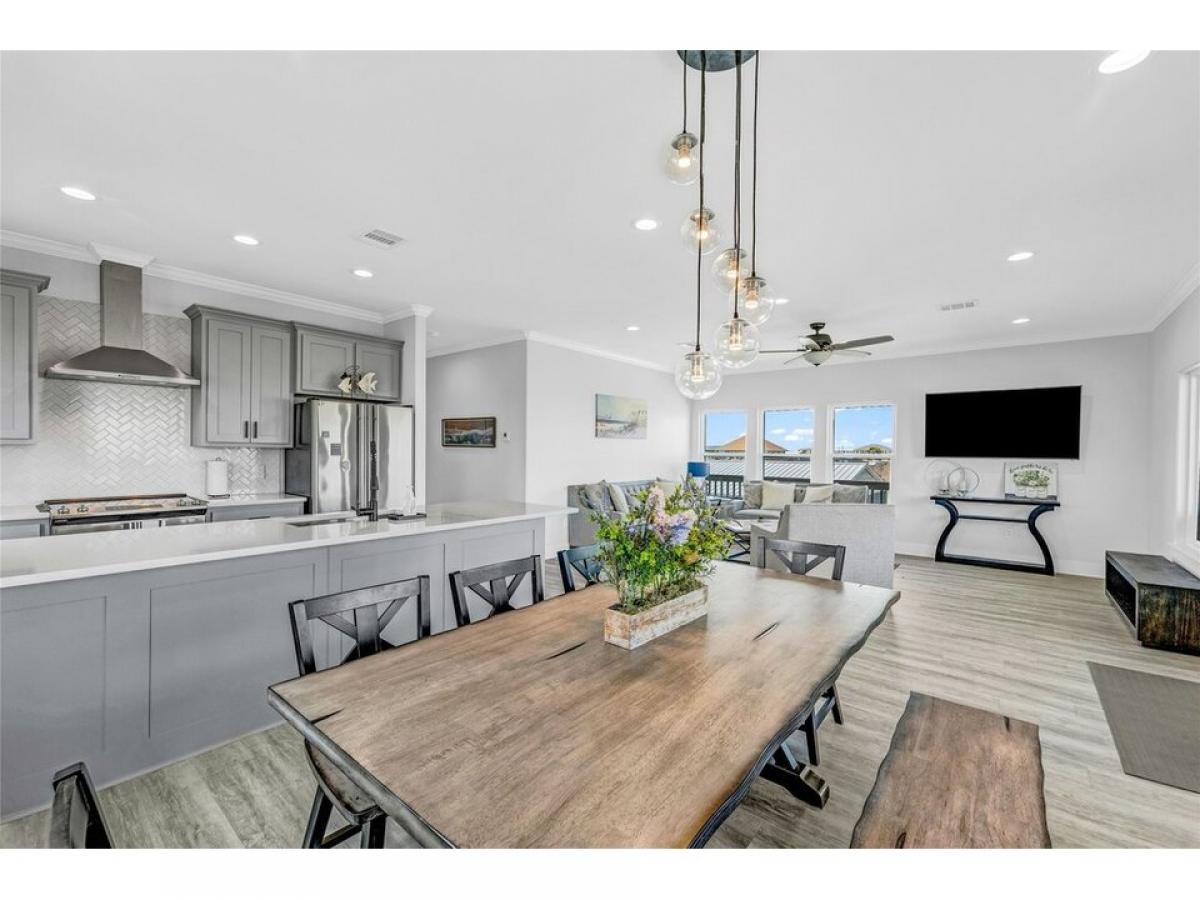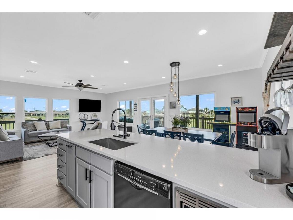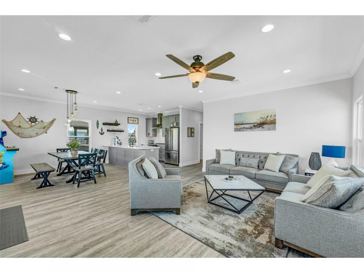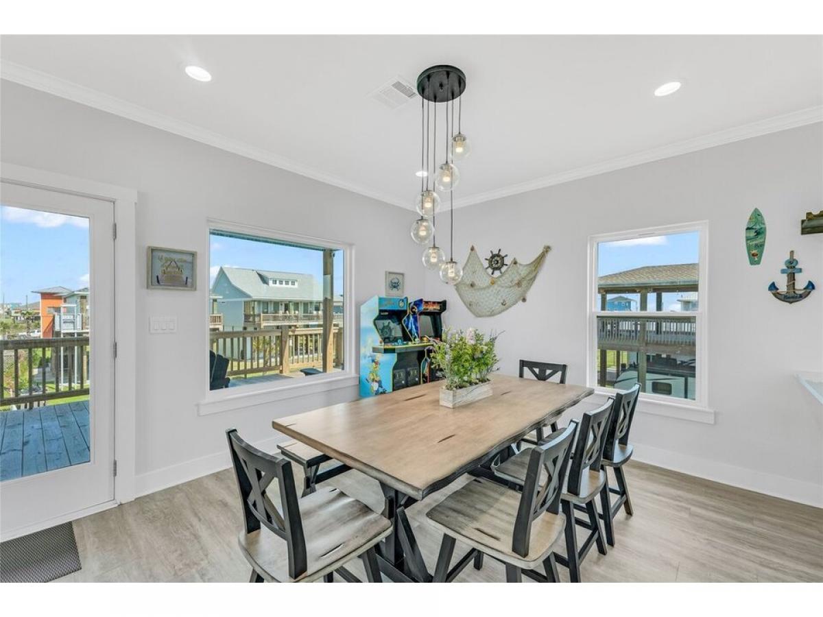 Discover your dream getaway in Crystal Beach, where ocean views meet an ideal location just steps from the shore. This charming 3-bedroom 2 bath home, featuring an additional versatile flex bunk room, effortlessly accommodates families and is a sought-after active rental, comfortably hosting up to 8 guests. Constructed in 2022, the open floorplan is adorned with high-end finishes, modern conveniences, and comes fully furnished with a design that marries style while built for resilience against severe weather. Enjoy additional perks like a refreshing sand shower, a 50/30 amp RV plug, and ample parking for vehicles or small RVs under the home. With no HOA fees and spacious county-owned green space behind for extra parking or recreational space, this property distinguishes itself, blending aspirational living with practicality, ensuring an unmatched family retreat and investment opportunity.