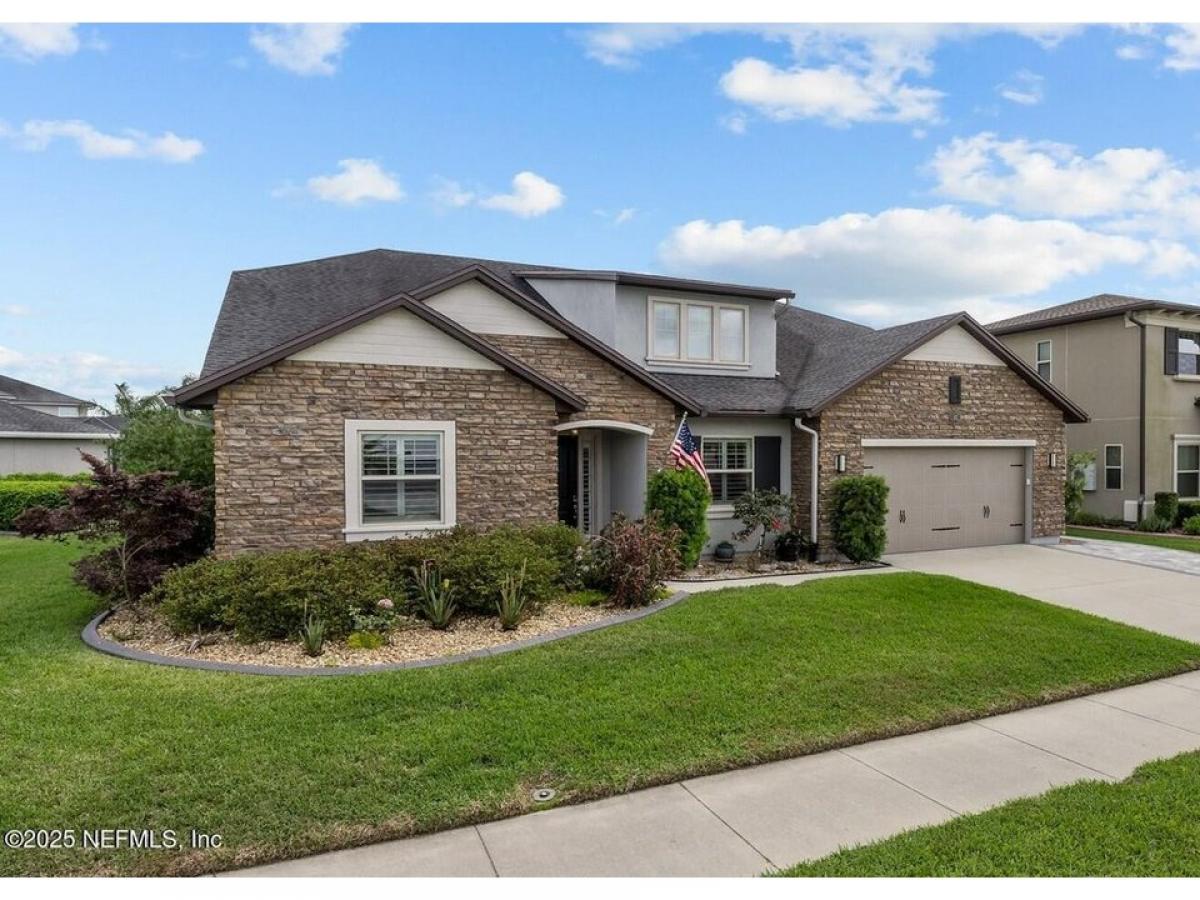 OPEN HOUSE Saturday from 12:00 to 3:00! Located in the beautiful, gated community of Celestina! This lovely home will not disappoint! Stacked stone front, landscaped stone flower beds amp; paver walkway. Three car tandem garage with extra overhead storage racks. Beautiful foyer with custom built-in cabinetry. Front two bedrooms with hallway bath in between. French doors into the office with custom built ins. Expansive kitchen with gleaming white cabinets, huge center island, wall oven amp; microwave, gas cooktop, tiled backsplash, amp; walk in pantry. Dining area has extra cabinets amp; counter that makes a great buffet! Bright, white shutters throughout bring all the light in! Great Room area with loads of room overlooks the screened lanai. King sized primary bedroom, primary bath with soaking tub and huge walk-in shower. Vanity with double sinks amp; tower of cabinets. Two walk-in closets w/built-ins. Pavers galore with firepit amp; curved wall overlooks the lake! Relax and enjoy the water views! This beautiful home comes complete with loads of recent improvements that the sellers have made. List to follow.