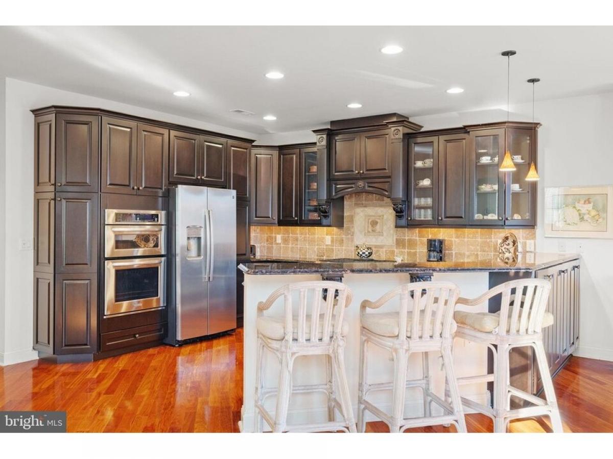 A rare discovery on a superior lot with one of the largest private backyard decks and driveways in the admired 55+ active adult community of Delancey Court, is this exceptional, custom end unit carriage home with wooded backdrop. Reflecting the architectural design of historic Philadelphia with its brick facade and cobbled drive, this fully upgraded 2 bed plus Bonus Room offers functionality at luxurious standards along with low maintenance living in a tranquil neighborhood setting. Step inside to be welcomed by an eye-catching turned staircase, rich Brazilian cherry hardwood floors guiding you throughout the main level, and generously sized spaces all graced with stylish upgrades, detailed woodwork, and ornamental molding at every turn setting the tone for the level of craftsmanship found throughout the home. The chefrsquo;s gourmet kitchen with breakfast nook and designer cabinetry, stately column adorned dining area and spacious family room combine to display an openness creating a substantial great room providing comfort and ease for entertaining. The gathering room has many notable features including a dramatic cathedral ceiling, double-sided butler bar, floor-to-ceiling gas stone fireplace and two stories of windows that bathe the room in natural light. Each window in the rear of this lovely home offers a picturesque, serene view of the mature wooded, private backyard. Conveniently, the light-filled breakfast area with its built-in buffet has direct access through its 3-paned glass slider to the sizeable composite deck with multiple sitting areas where the lush rear exterior landscape defines relaxation and tranquility. Completing the main level is a beneficial elevator accessing all 3 levels and a hallway leading to a chic styled half bath and an oversized 2-car garage with built in storage shelving. Upstairs boasts a wide hallway with one side overlooking the bright great room and a nearby study/guest room space with wet bar. The striking tray ceiling adorned primary suite offers 2 large walk-in closets embellished with custom built-ins and lavish master bath. Nothing was sacrificed when designing this remodeled sumptuous bath with alluring appointments including stunning tile, a frameless walk-in shower, custom dual sink vanity with granite counters, stylish cabinetry, soaking tub with tile surround and a private commode making this space a soothing retreat all on its own. There is an en-suite bedroom on this level sharing a full hall bath and a second floor laundry for ease of living. A third-floor loft provides another gathering space or private respite for guests, currently utilized as a combined exercise space and sitting room with storage closets. The Delancey Court community offers residents access to enjoy a state-of-the-art clubhouse, fitness center, indoor and outdoor pools, bocce court, conference room, game room and great room with a catering kitchen ndash;-all within walking distance. The desirable location is convenient for shopping, dining and recreation in nearby Newtown and New Hope and easy access to I-295 making travel to Philadelphia and New York an easy commute. This home is truly a statement in quality, luxury, and outstanding design showing like a model with approximately $200k in upgrades. Make this special residence designed for maximum comfort and style with minimal maintenance yours today!