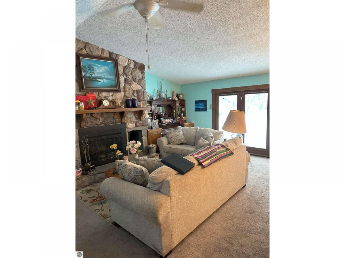 Manistee River Front with spectacular view! This 3-bedroom home boasts a natural stone fireplace, cathedral-ceilings and a sunroom that overlooks the Manistee River. The river hosts Rainbow, Browns and Brook Trout, a fly fisherman dream! State land and trails galore are just up the road for all your hunting and trail riding needs, both in summer and winter. Your Up North adventure starts here!