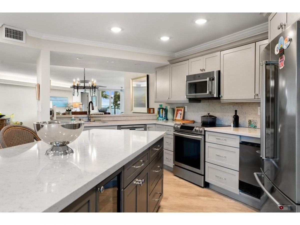 Ocean Harbour condo updated in a relaxed coastal style. Exceptional living experience with expansive views of palm trees, marina and open ocean. The primary suite boasts a renovated bathroom and spacious walk-in closet. Tile plank floors are found throughout, with the living room seamlessly extending into an enclosed balcony that offers breathtaking ocean vistas. The kitchen is outfitted with solid wood cabinetry, quartz countertops, an ice maker, and a wine chiller, perfect for those who appreciate fine living. The two private guest bedrooms share a renovated bathroom for added convenience.The unit is equipped with impact glass windows and doors. Ocean Harbour#039;s amenities include a swimming pool, pickleball and tennis courts, an electric car charging station, carport, and guest parking. Boat ramp and boat trailer storage, and boat slips are often available for rent. The property also features tropical landscaping, a tiki with bbq, clubhouse, and a gym. The beach areas offer marina and water views.The community is gated with on-site management for added security and convenience. Located at Mile Marker 87 on Plantation Key in the Florida Keys, it#039;s close to restaurants, grocery stores, art galleries, and boutique shops, providing the perfect blend of tranquility and access to local attractions.