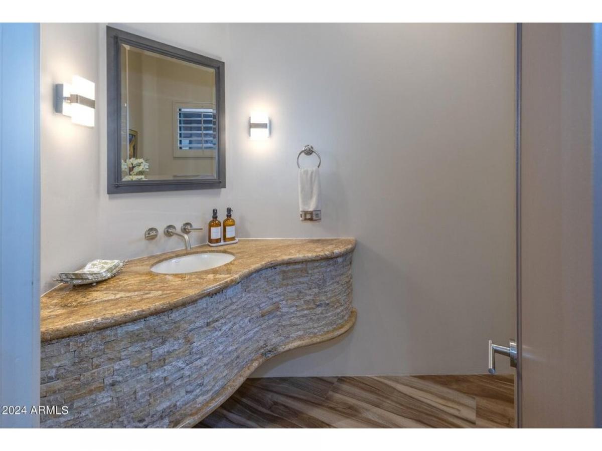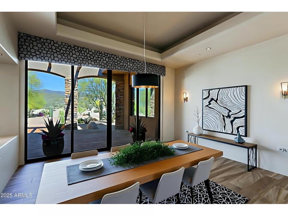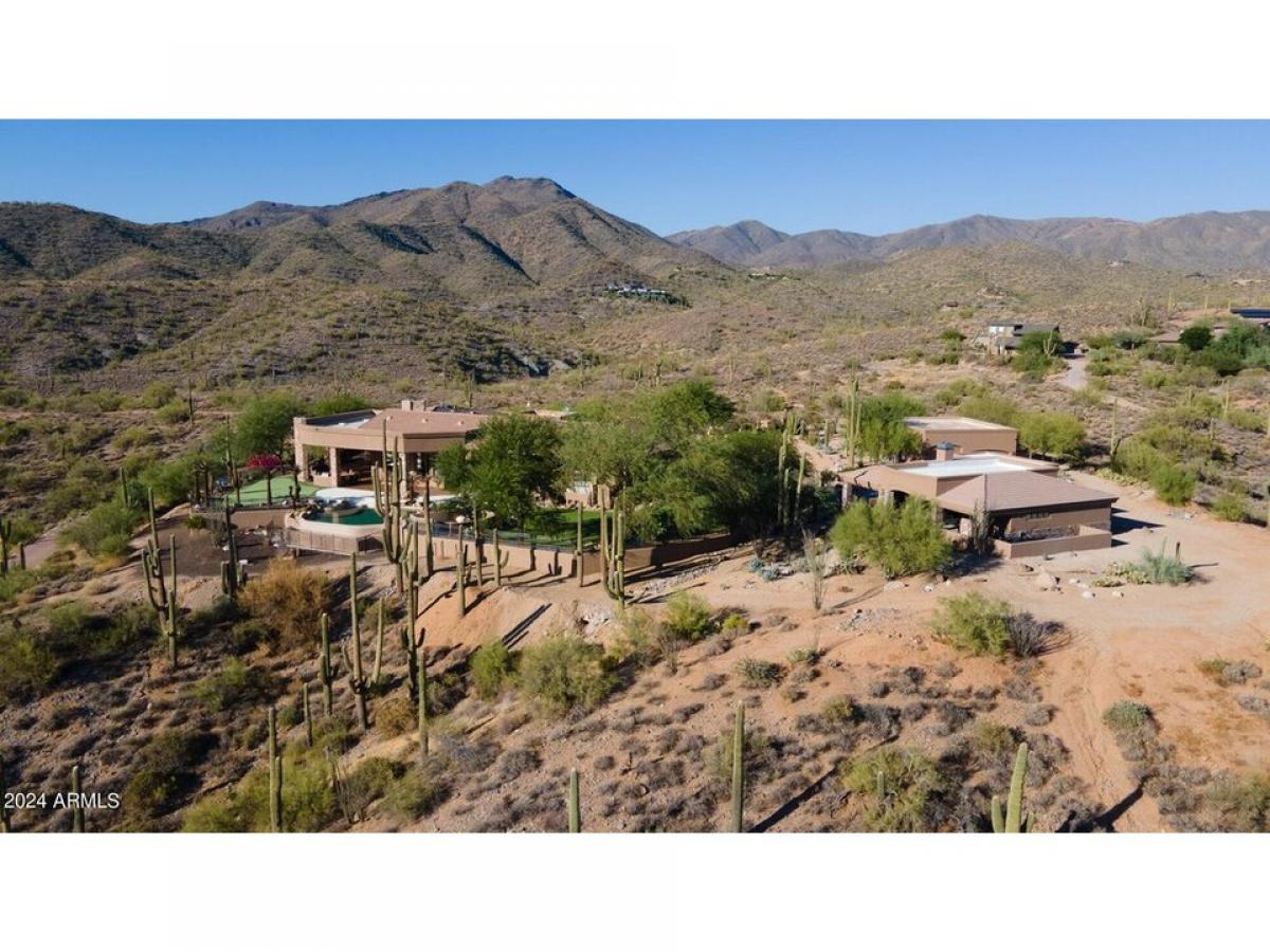 Atop nearly 15 acres of pristine land nestled within the natural desert surround, offering immense PRIVACY. Gourmet kitchen w/ WOLF, Subzero amp; Cove appliance package, soaring ceilings, curved walls, sauna, exercise room, office amp; basement, coffered ceiling details, electronic roller-shades through-out home, Detached guest house w/ full kitchen amp; living room, fireplace, 2 bedrooms, Wamp;D, 1 car garage 30 x40 separate garage/workshop w/ Heat, AC amp; exhaust fan, gated paved driveway, Elan AAA security system, negative edge pool, spa, boulder water amp; slide, putting green amp; large synthetic grass areas, multiple covered patios. Generator, Private Well. House is 6,753 sq ft and Casita is 1,379. NO HOA. Full Features list in Document Section.