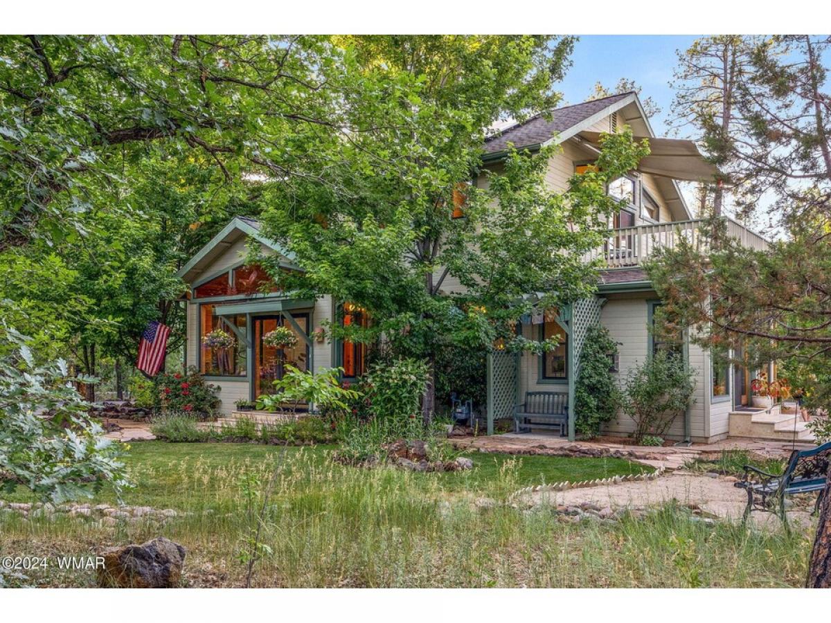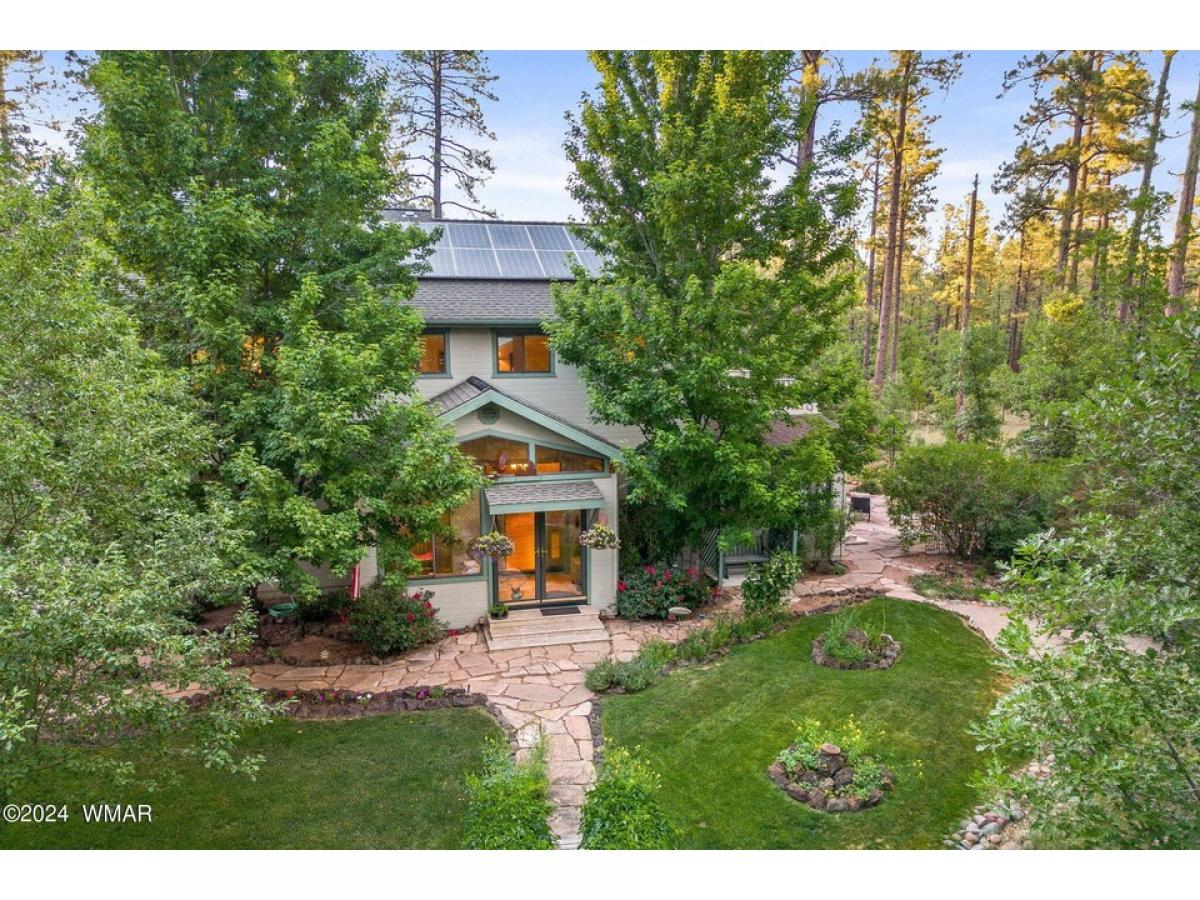 Experience the epitome of serene living in this residence nestled on an acre+, enveloped by pine trees & manicured landscaping, creating a tranquil outdoor haven.Step inside & you are greeted by a sunlit sun/mud room, offering a seamless transition into the abode. Embrace the ambiance of the open-concept layout adorned w/ vaulted ceilings, fostering a sense of spaciousness throughout. The gourmet kitchen has granite countertops & ample cabinet space, catering to both culinary enthusiasts & entertainers. The main floor features a full bath, laundry, kitchen, dining & living area as well as 2 bedrooms, each offering versatile functionality—a prime choice for office space or media room. Ascend the stairs to find a versatile loft area, a spacious primary bedroom w/ balcony, & 2 generousl sized bedrooms connected by a convenient jack-n-jill bath. Each bedroom has its own vanity area, ensuring convenience & privacy. The primary en suite has a beautiful walk-in shower, expansive closet, & soaking tub Step outside to discover additional delights, including a storage area & a fenced section perfect for pets to roam freely. The oversized 2-car garage provides ample space for vehicles & storage needs. Effortlessly blending luxury & sustainability, this home boasts exceptional energy efficiency, with electric bills averaging less than $65/month thanks to the inclusion of solar panels & net metering. Revel in the harmony of luxurious living and eco-conscious design in this exquisite residence.