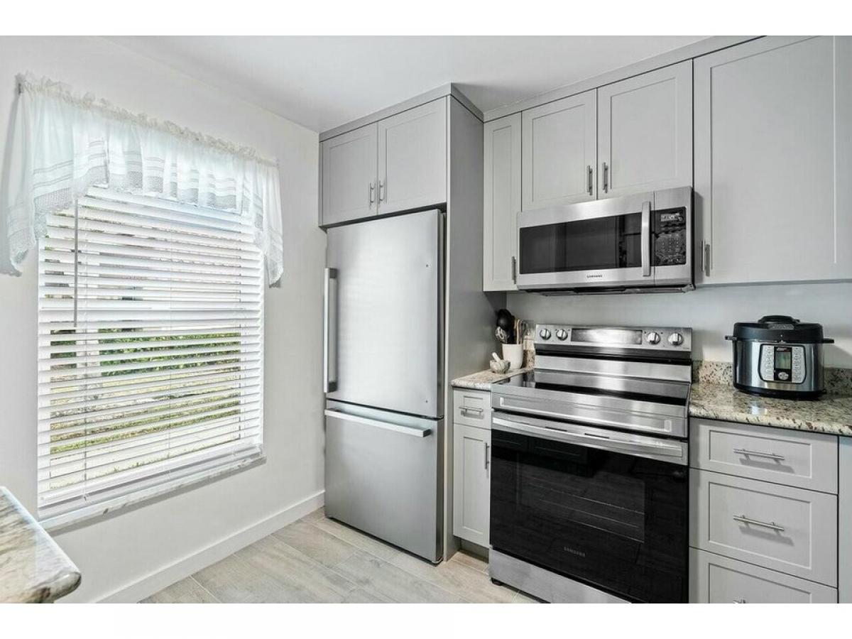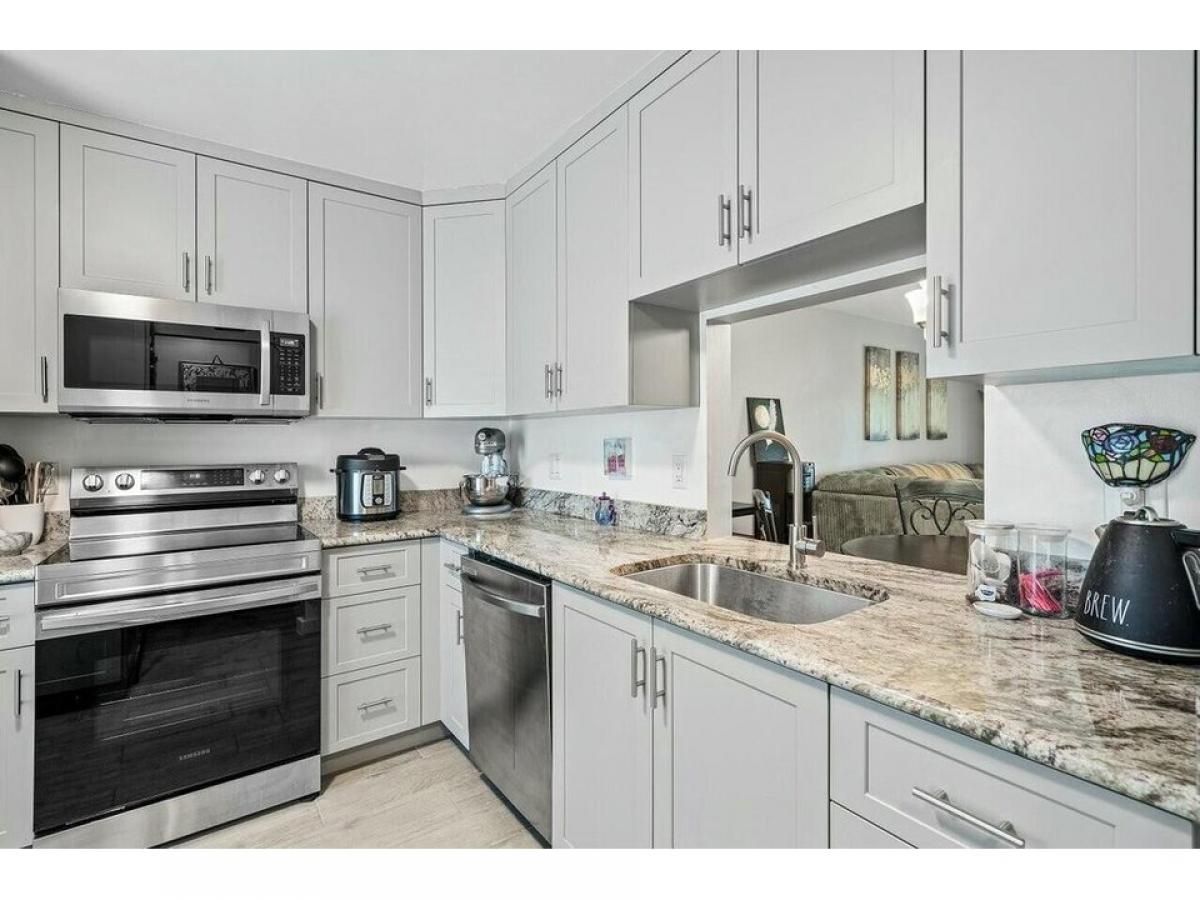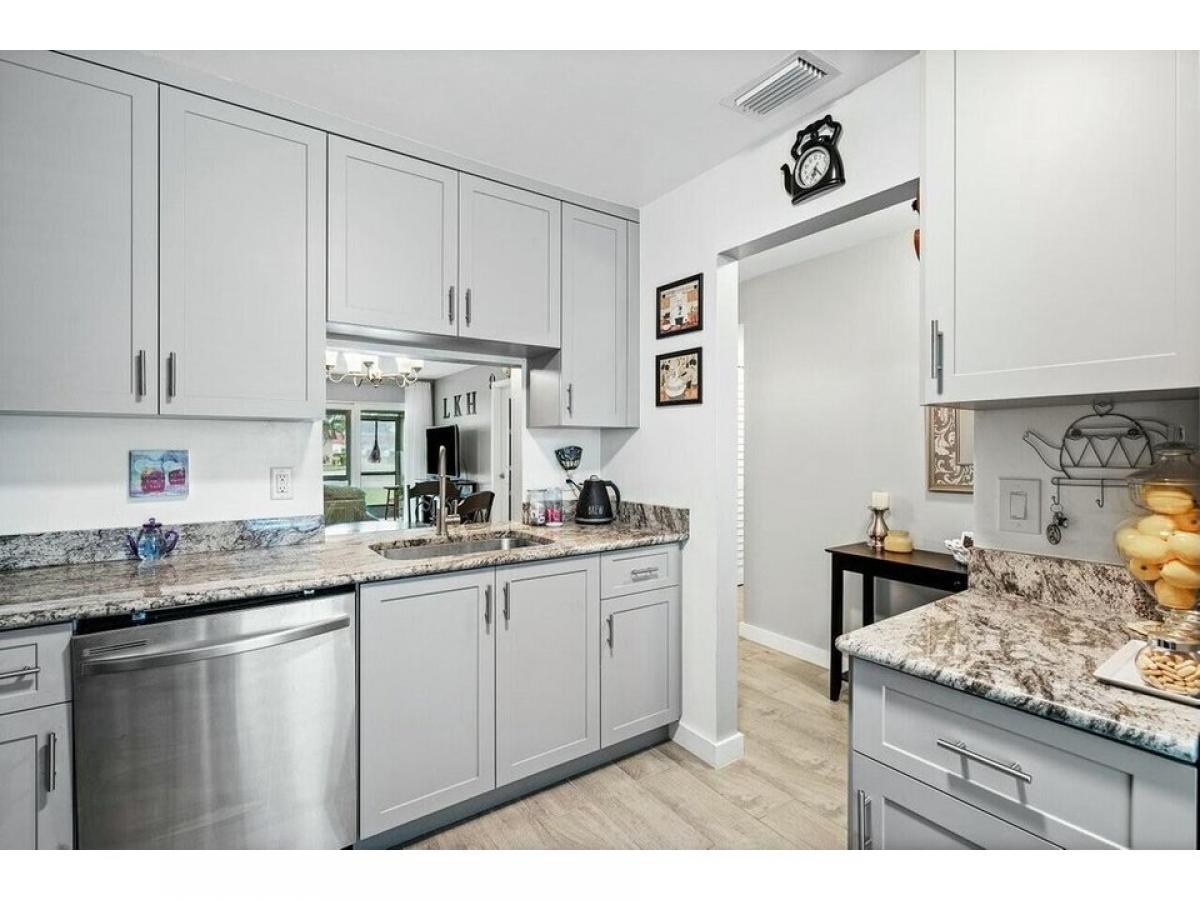 New Roof!! Completely Updated! This rarely available 2-bedroom, 2-bathroom corner unit villa features over 941 square feet of thoughtfully designed living space, making it an ideal residence or a lucrative investment.Upon entering, you#039;ll find a fully updated chef#039;s kitchen with elegant granite countertops, custom cabinetry, and new stainless steel appliances. The open-concept living and dining area boasts exquisite custom lighting, ceiling fans, and new plank-style tile flooring, creating a seamless flow for entertaining!Natural light fills the space through newly installed impact-resistant windows and sliders that lead to an expansive screened-in lanai, providing a private retreat with lush landscaping views.The inviting primary bedroom offers generous closet space