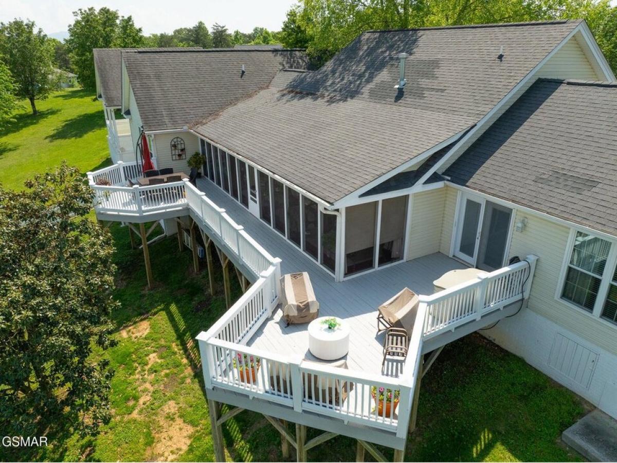 Situated in the serene foothills of the Great Smoky Mountains, this charming one-level Kodak, TN home offers Southern elegance on a sprawling 1.65-acre lot with breathtaking mountain views. Perfectly positioned for easy access to I-40, this thoughtfully designed residence is ideal for buyers seeking comfort, privacy, and timeless appeal. The home has two spacious primary suites, each with its own private bath, strategically placed at opposite ends for ultimate space. A third bedroom and a convenient hall bath complement the open-concept living, dining, and kitchen area, where a cozy gas fireplace sets the tone for warm gatherings. The roomy kitchen shines with a large island, ample storage, and modern functionality. Embrace outdoor living with a covered front porch, ideal for sipping sweet tea, and a rear screened porch paired with an expansive deck overlooking the lush backyard and distant mountain vistas. A versatile bonus room serves as a home office or study, while a walk-in dressing room adds a touch of luxury. Parking is a breeze with a two-car attached garage and a two-car attached carport. This Southern gem combines charm, space, and stunning viewsmdash;ready to welcome you home. Schedule your showing today!