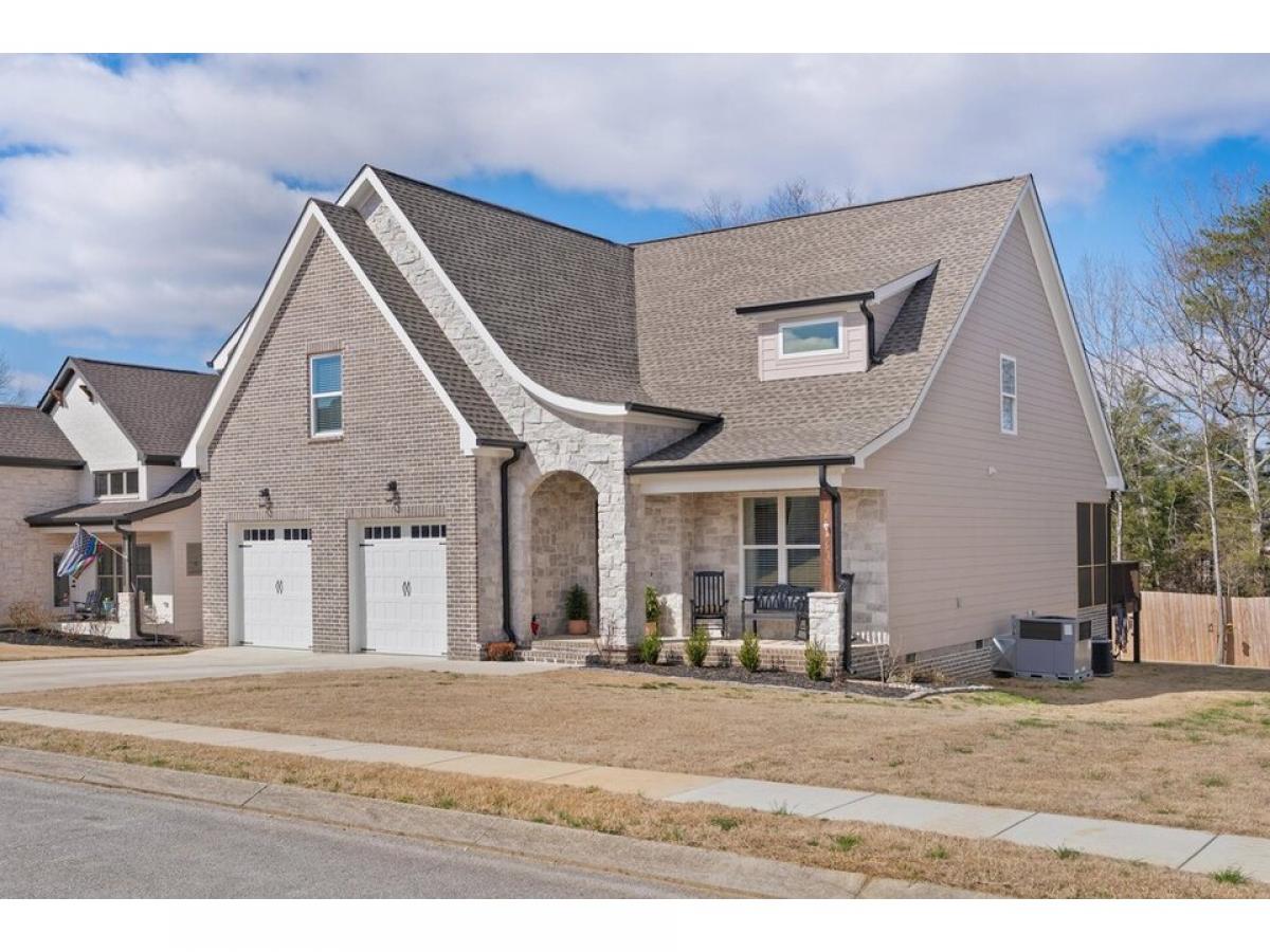 This home has it all - curb appeal, floor plan, quality finishes, great outdoor living spaces, and wonderful neighborhood amenities, including lakes, sidewalks, a pool and clubhouse, playground and gated entry in the Retreats at Whit Oak in the heart of Ooltewah. Built in 2023, this 3 or 4 bedroom, 2.5 bath home boasts a Hardie, brick, and stone exterior, hardwood floors, crown moldings, granite countertops, an open floor plan with the primary suite on the main, decorative lighting, nice storage and a spacious 2-bay garage. Your tour begins with entry from the covered front porch to the dedicated foyer. The formal dining room is on the right and has a connecting hall to the kitchen with a double door pantry. The foyer also leads to a center hallway with access to the powder room, laundry room and garage to the left, as well as the open kitchen and great room. The kitchen has a center island, subway tile backsplash, stainless appliances, soft-close cabinetry and the afore mentioned pantry. The great room is truly the heart of the home and has beautiful, coffered ceiling with wood inlay, a stone fireplace with a raised hearth and gas log insert and has access to the screened in porch and rear deck providing the perfect flow for entertaining and everyday living. The primary suite is off of the great room and boasts a trey ceiling, walk-in closet and a private bath with dual vanity, free standing soaking tub and separate shower. Head upstairs where you will find 2 additional bedrooms, a hall bath and a large bonus room with a wide, double door closet, so it could easily be used as a 4th bedroom if desired. Simply a fantastic opportunity for the buyer seeking a newer home in the Ooltewah area close to schools, shopping, restaurants, I-75 and more, so please call for more information and to schedule your private showing today. Information is deemed reliable but not guaranteed. Buyer to verify any and all information they deem important.