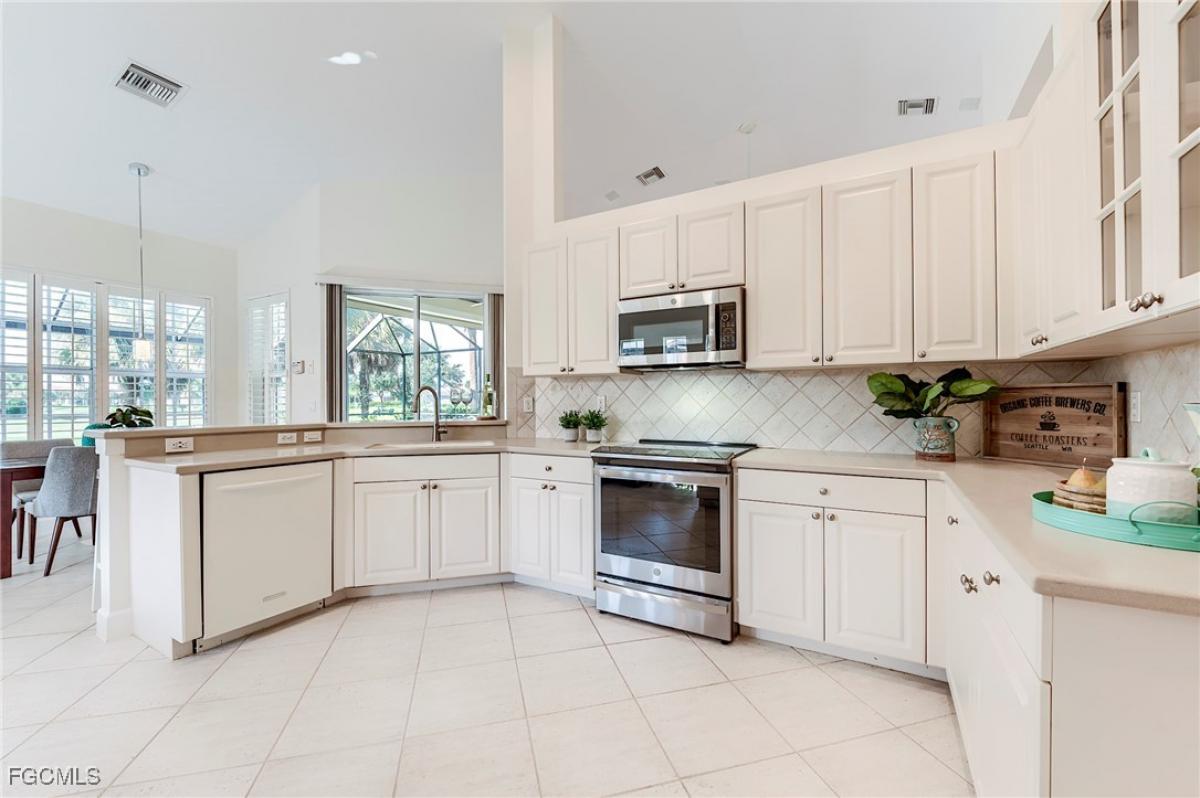 Enjoy a southwest, "Golf Digest" view of the beautiful 5th Green at The Golf Club at Crown Colony through a picture frame screened lanai and pool. This very rare 4 BR Areca model was enlarged by the builder at construction with an added bedroom and bath, making this one of only two 2,359 sq ft, 4/3 models of its type. Fresh paint covers all interior areas and garage for a move-in ready purchase. The new flat tile roof was just installed in December 2024 and the house can be made storm ready quickly with electric roll-down shutters at all the large openings with easy to install clear Lexan shutters at the windows. Newer LVP flooring was installed in the main living areas, the primary bedroom and the 4th bedroom/office. Bedrooms 2 and 3 have new carpeting just installed. The kitchen and all 3 baths have tile flooring. White wood plantation shutters cover interior windows. The water heater was new in 2022, the A/C unit in early 2023, and the pool pump in 2025. The HOA is very well run with low quarterly fees providing all lawn maintenance on a weekly schedule, 24x7 attended gated access, a community pool, hot tub, 4 Har-Tru tennis courts, and well-equipped fitness center open 24x7. Comcast fiber-optic cable and the Xfinity X1 platform with up to 4 TV/DVR boxes, and high-speed Wi-Fi Internet are all part of the dues - over a $750 quarterly value at retail. Social (for Club restaurant access) or golf membership at The Golf Club at Crown Colony is optional. And there is no waitlist for membership! This Club was chosen for the 2022 LPGA $1.5M Drive-On Championship, hosting the world's top women golfers, and is also used for PGA qualifying events.