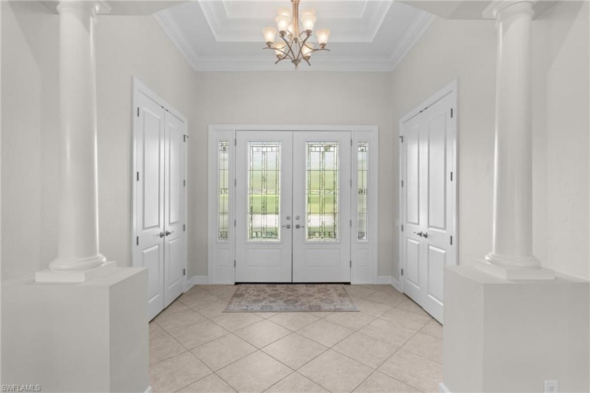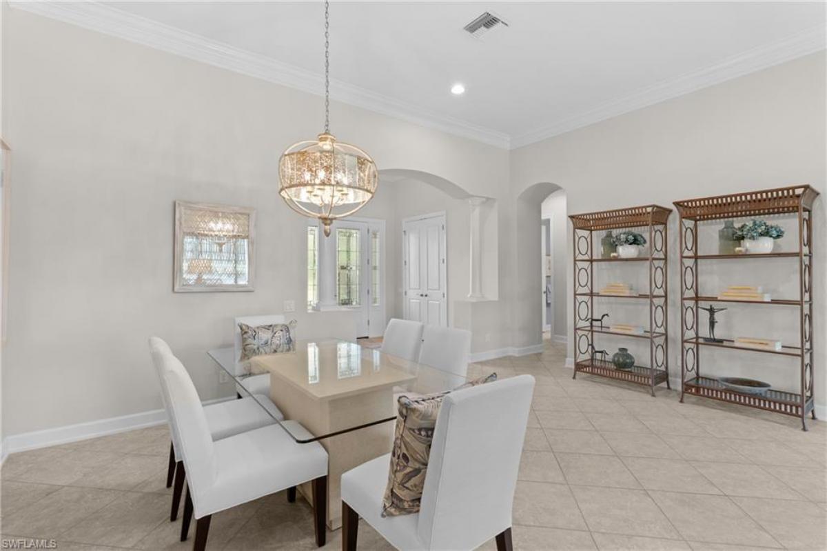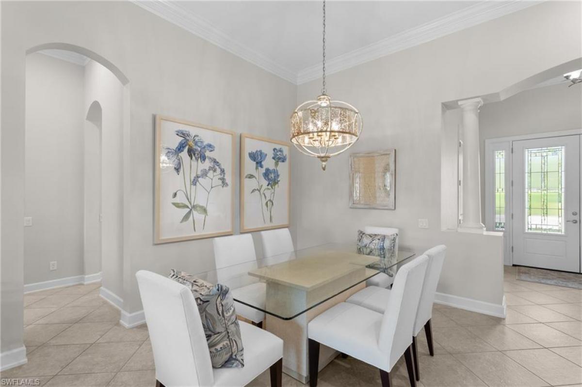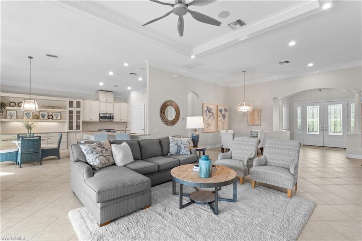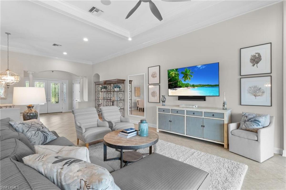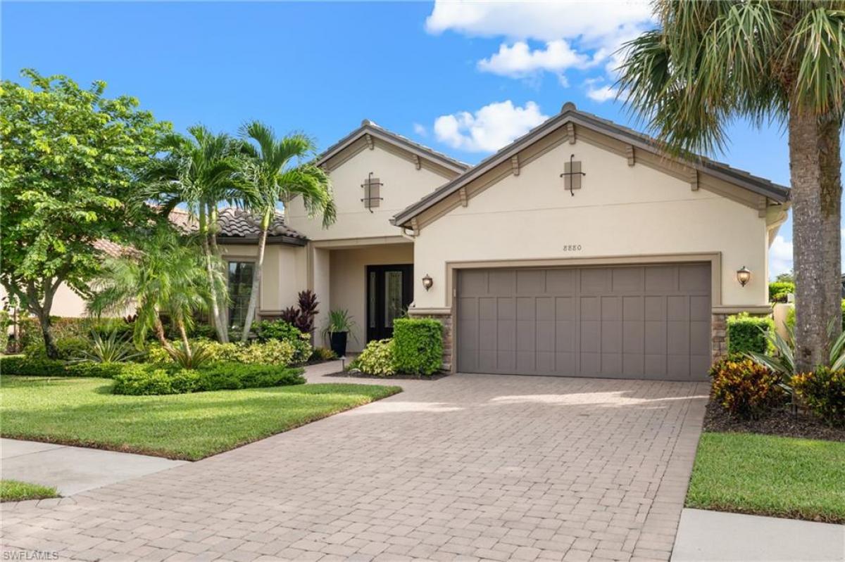 THIS HOME HAS IT ALL! STUNNING VIEWS, FULL GOLF MEMBERSHIP, and being offered FURNISHED! Incredible long lake and golf course views set the stage for this exquisite Carrera model home, being offered fully furnished for a seamless move-in experience. Perfectly positioned on a premium lot with unobstructed views of the 9th fairway/green & natural preserve, this residence offers unmatched privacy with no other homes in direct sight—all just a short walk to the golf practice facilities & the community’s vibrant amenity campus. Lovingly maintained by its owners, this 2483 Square Foot home features 3 bedrooms, 2.5 baths, and an extended two-car garage with ample space to accommodate both vehicles and a golf cart. Sophistication meets strength with hurricane-impact windows and doors, complemented by electric hurricane shutters on the lanai for added peace of mind.The outdoor living space is nothing short of extraordinary, showcasing an expansive saltwater gas-heated lap pool stretching 42 feet, bathed in sun throughout the day and framed by a beautiful screen enclosure. An outdoor kitchen and fireplace (installed 2 years ago) elevate the setting, ideal for entertaining or simply unwinding in complete luxury. Inside, soaring 12 foot ceilings and 8-foot doors enhance the open design, while two sets of pocket sliding glass doors create a seamless flow between indoor and outdoor living. The chef’s kitchen features an expanded layout with a gas cooktop and high-end finishes that cater to both casual dining and gourmet entertaining.Additional enhancements include a whole-house water filtration system, an AIR CONDITIONED GARAGE with ceiling storage, professionally designed landscaping with accent lighting, an indoor/outdoor SONOS system with mounted TVs, CUSTOM CLOSETS built-ins, and meticulously curated furnishings and décor. Together, these upgrades reflect an additional investment of more than $100,000 over the past two years, further elevating the home’s sophistication and comfort. Perfectly positioned on a QUITE STREET just steps from the community mailboxes, this residence embodies a seamless blend of refined elegance and modern luxury. As a resident of Esplanade, you'll enjoy an unmatched lifestyle with access to world-class amenities, including a championship golf course, state-of-the-art clubhouse, resort-style pool with food and beverage service, private cabanas, tennis and pickleball courts, walking and biking trails, a dog park, fitness center, full-service salon and spa, wellness center, tiki bar, and more. Ideally located in North Naples, Esplanade Golf & Country Club offers convenient access to I-75, the airport, top-rated restaurants, premier shopping, and the stunning beaches of the Gulf Coast. Known for its vibrant, active social scene, the community delivers the perfect blend of luxury, recreation, and lifestyle. Don’t miss the opportunity to make this exceptional home yours—and start living the Esplanade dream.