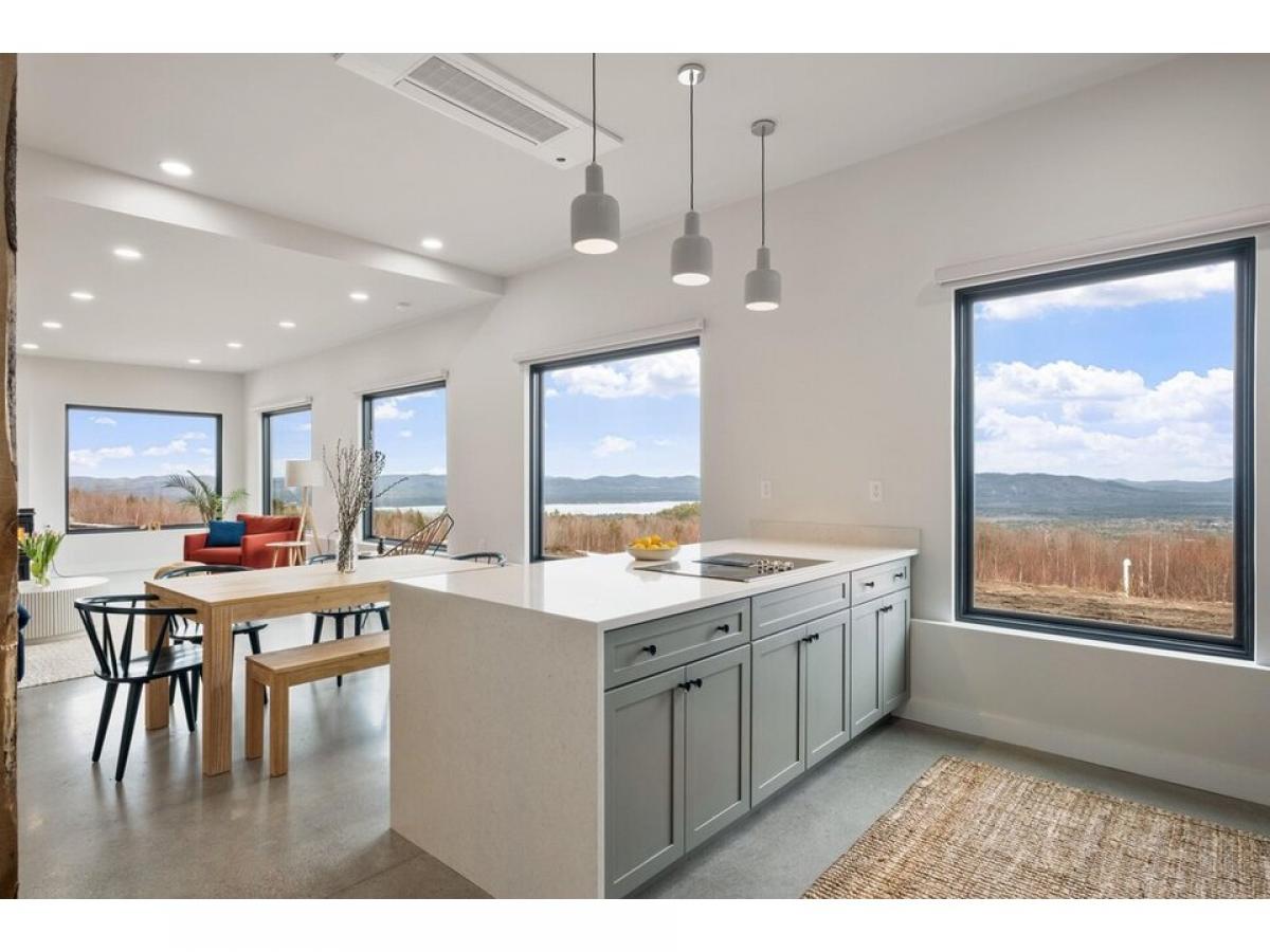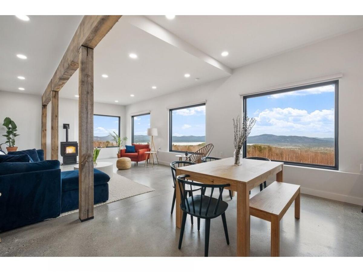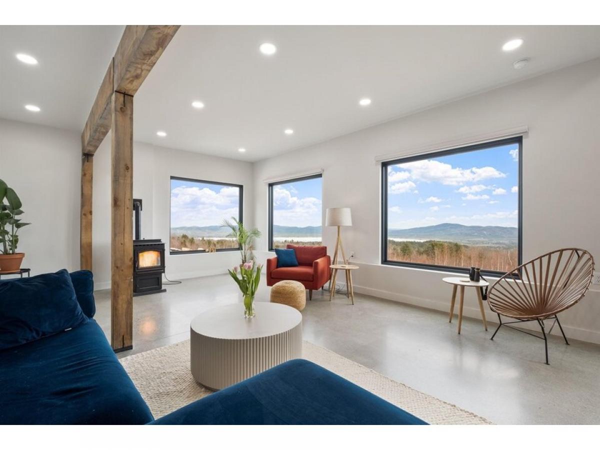 Perched at the peak of Knox Mountain, this breathtaking 35-acre property offers panoramic views of Ossipee Lake and the majestic White Mountains. Designed with a modern and contemporary aesthetic, this light-filled home seamlessly blends sleek architecture with naturersquo;s beauty. Inside, the open-concept living space features polished concrete flooring, clean lines, and floor-to-ceiling windows that capture the stunning surroundings. The bright, minimalistic design continues upstairs, where all three bedroomsmdash;including primary ensuitemdash;boast hardwood flooring and oversized windows, immersing you in the ever-changing landscape. With thoughtful design elements and space for future roof decks or expansion, this extraordinary property is an ideal sanctuary for all four seasons.