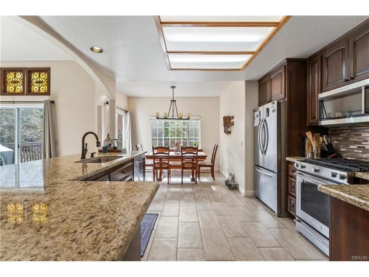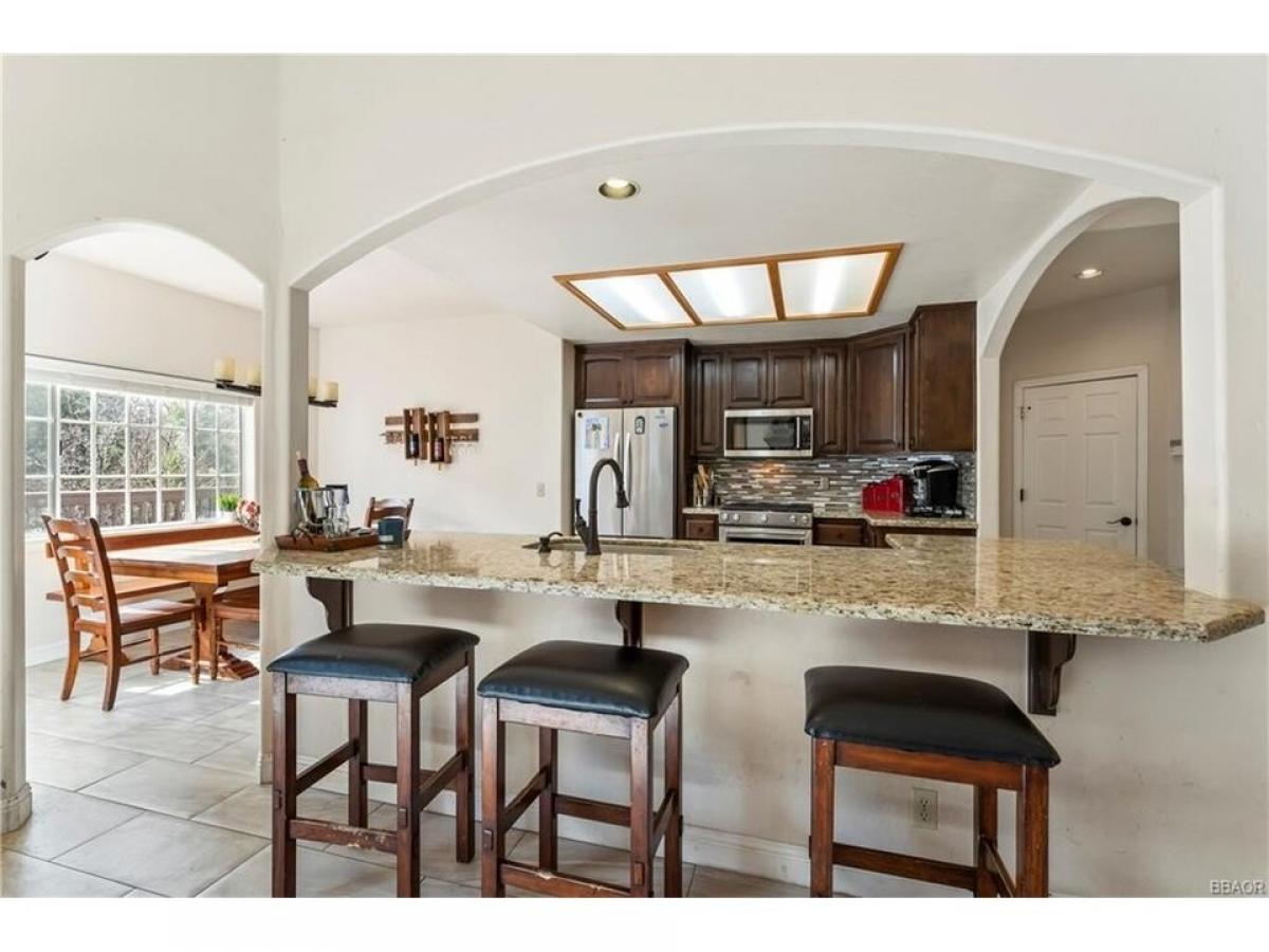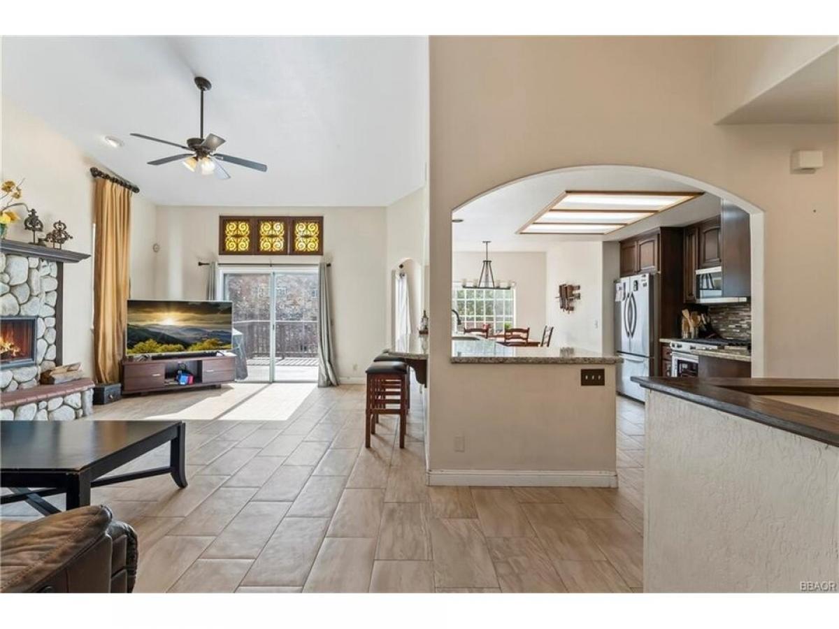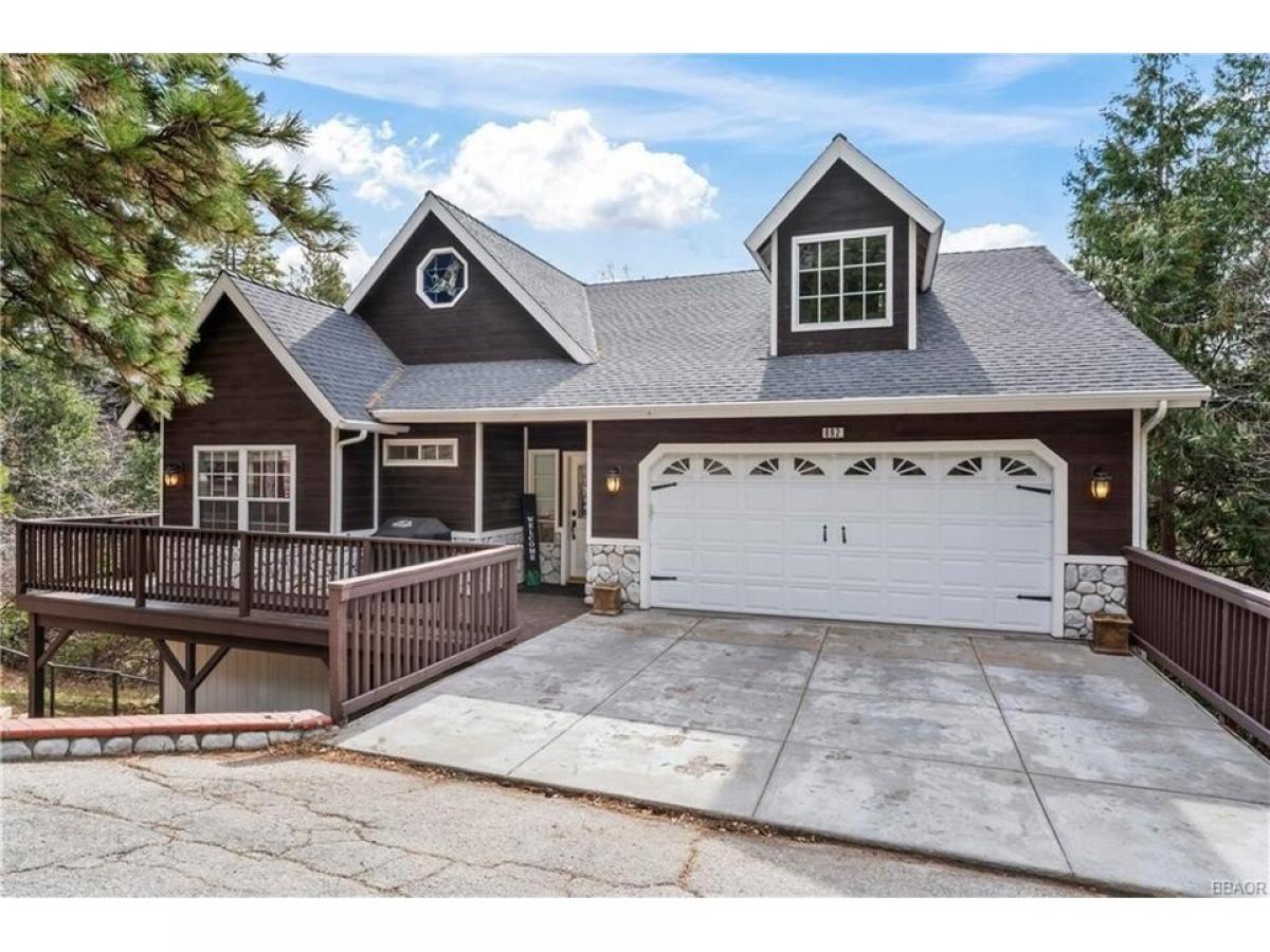 Gorgeous larger home with Lake Rights located in a quiet desirable neighborhood of Lake Arrowhead Woods! This fantastic home features a larger lot (roughly a quarter acre), level entry and 2 car garage! The home includes 6 bed and 4 bath with an extra separate entry and spacious downstairs unit with an 2 bed, full bath with living and kitchen. Recently upgraded and pride of ownership, this home showcases light and bright accents showing off its charm, mountain warmth and appeal. The floor plan spans three floors. Two main floors can be primary living and the downstairs unit can be closed off for privacy if desired. The main level includes cozy living room with rock wood burning fireplace that leads to an open dining area. Walk through to an entertainers kitchen with island, SS appliances along with wood cabinets updated floors and granite countertops. The downstairs area include 2bed, full bath and includes a fantastic family room with fireplace for watching movies and playing games alongside another spacious family room currently used as the music room. The oversized windows and wood casings throughout the home showcase the natural beauty and stunning tree and ridge line views that surround the property. Large decks, plenty of parking, private lower access and close proximity to the middle school! Just minutes away from the Lake Arrowhead Village, Sky Park and easy commuter location! This home is great for part-time or full time living!