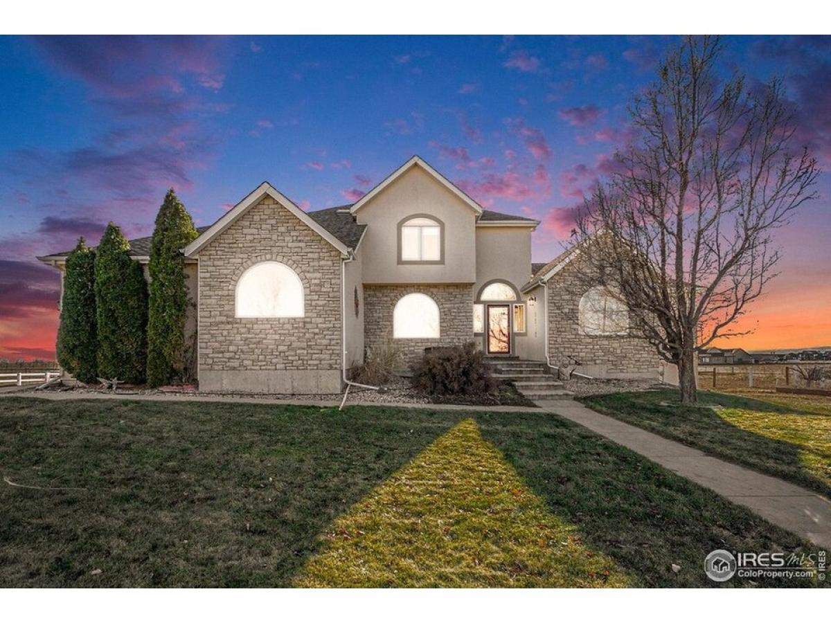 Acreage, privacy, stunning unobstructed mountain views and outdoor living are yours in this phenomenal home located within minutes of Windsor, Fort Collins, or even golfing at Harmony Club! Convenient main floor living with the large primary suite and laundry located on the main, with 2 additional bedrooms and flex room upstairs. Gourmet kitchen, formal dining, and dramatic great room with stone fireplace. 30x40 barn with 4 portable stalls, offering great flexibility of the use of space (e.g. your car collection or that amazing workshop), fenced pasture, a loafing shed, and additional outside parking for all the toys! Spend the summer enjoying the outdoor space - all 6 acres of it, with a natural gas fire pit, pond and waterfall. Partially finished basement with that 4th bedroom and room to expand for even more living space! Peace of mind with 1 year home warranty included (Eagle Premier Package). Mineral Rights are excluded!!