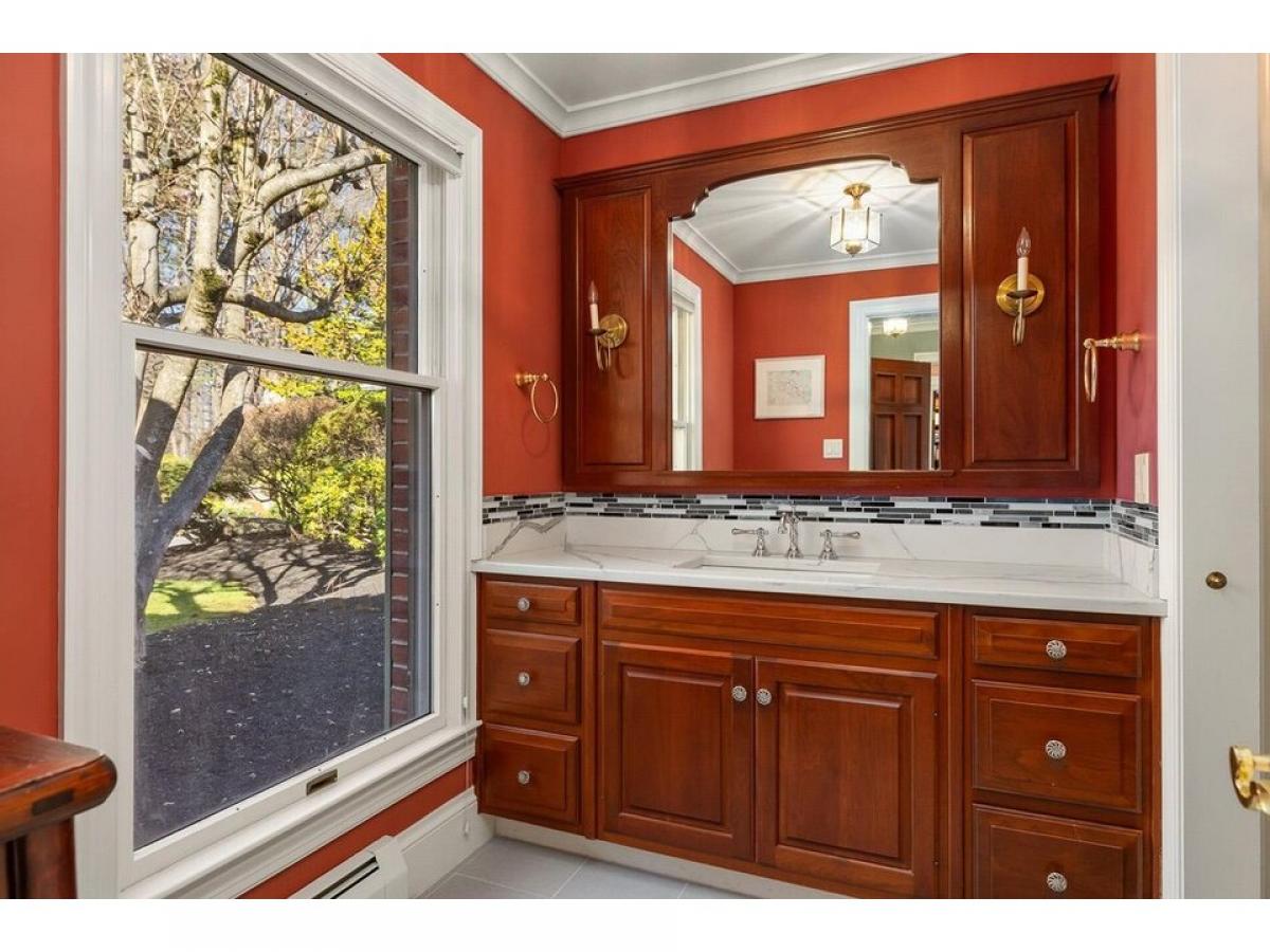 Discover the unexpected,nbsp;a mini-estate nestled behind stone walls, surrounded by mature plantings and lush, professionally designed gardens. Set on 1.8 acres, the grounds feature a stone patio, in-ground gunite pool, and picturesque vistas that make every season feel like a retreat. At the heart of this stunning property is an oversized custom-built, thoughtfully designed, brick Cape. From solid 6-panel doors and soaring ceilings to sunlit, spacious rooms, timeless craftsmanship was clearly a priority. The kitchen, centered around a massive island will impress any chef, with newer stainless appliances - induction cooktop, double wall oven, and a wet bar. A cozy sunroom just off the kitchen offers scenic views of the grounds, perfect for morning coffee or evening unwinding. Nearby, a mudroom, laundry area, and half bath offer practicality, and the attached garage includes an EV charger. Enjoy cozy nights by the gas fireplace in the family room, or entertain in the formal dining room and elegant living room with wood-burning fireplace and oversized bay window overlooking the pool and gardens. The library with custom built-ins adds a sophisticated touch. The primary suite is a spa-inspirednbsp;retreat with en suite bath, oversized tiled shower, double vanities, and radiant heated floors. An additional bedroom and full bath are on the first floor. Upstairs, are 3 more large bedrooms, and full bath. A finished lower level offers a 3/4 bath and recreation room.