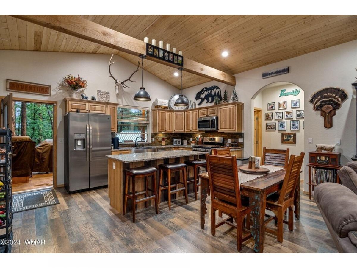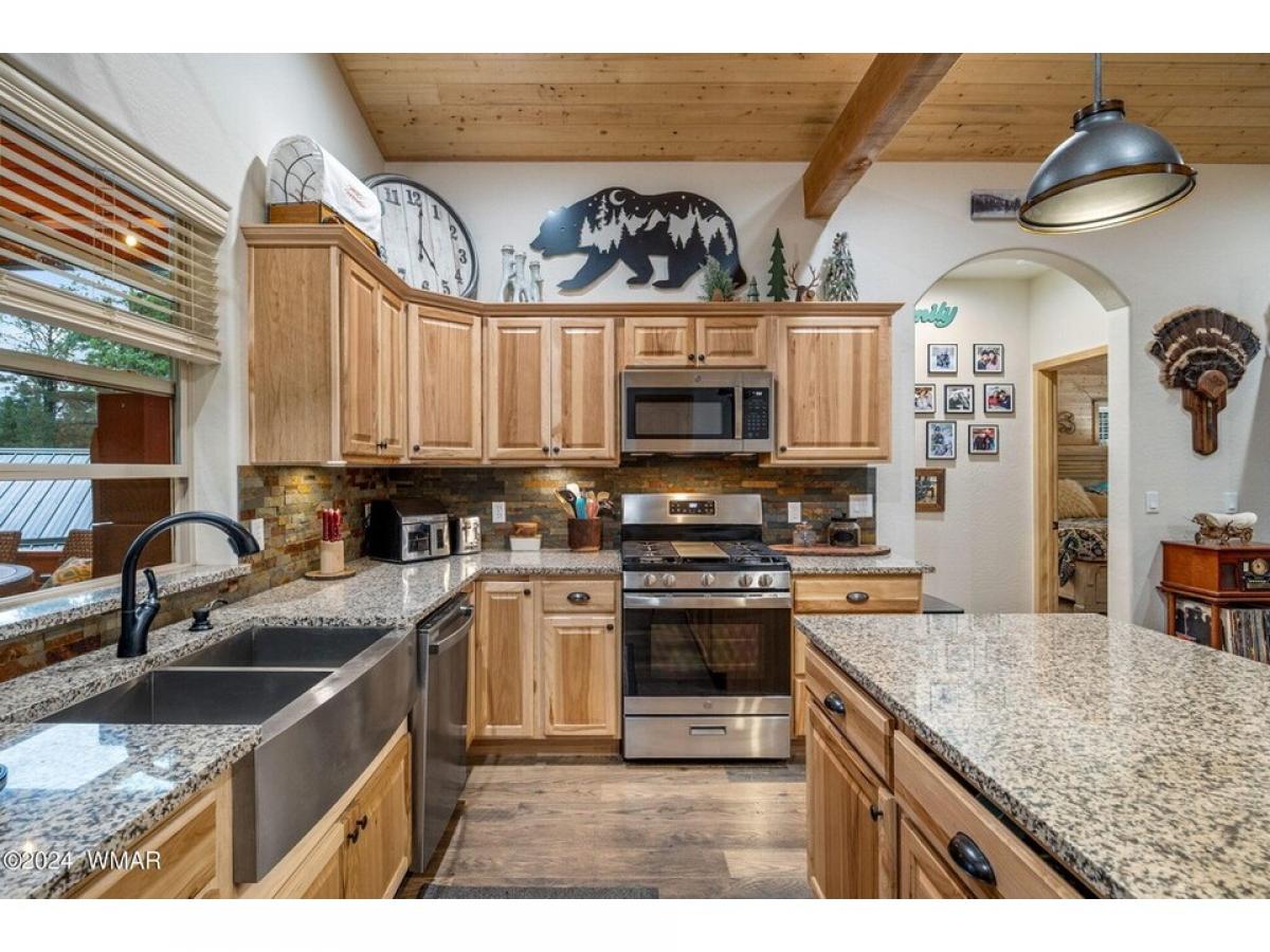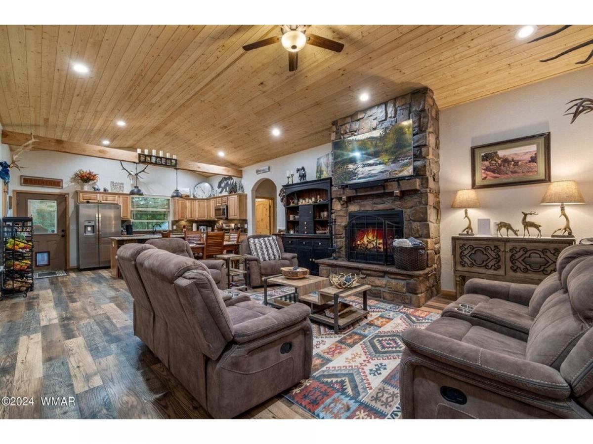 Lovely, turn-key, 3-year-old home with many upgrades. 3/2 split floorplan with large open great room, focal point on stone fireplace/wood mantle. Vaulted ceilings with large picturesque windows. Front covered porch and covered back patio with lights for afternoon BBQs. It has a chef-friendly kitchen with a farm sink, hickory wood cabinets, a large island, and granite countertops. Stainless steel appliances and a gas range. Waterproof LVT flooring with carpet in bedrooms only. T&G cathedral ceilings and walls throughout. Master bath with custom walk-in shower and barn door. dual-pane windows with custom blinds and curtains. Built-in wall safe to include large, 20-rifle gun safe, along with Simple Safe home security system and ring cameras. 25x20 Detached, finished "man cave" garage with epoxy floor and custom-built floor-to-ceiling cabinets and workbenches. Huge walk-in double-door crawl space with concrete slab and insulated floor throughout the home. extra lighting, and outlets for toys and storage. Downspouts and gutters with ice breaks for the snowy nights. Three cords of split juniper, aspen, and oak are ready for a warm fire. Expanded drive-thru driveway to include side and back of the garage with 30 tons of add AB rock. Fenced-in dog run with gate under the back porch. Call me today to schedule a viewing. PROFESSIONAL PICTURES WILL BE ADDED FRIDAY.