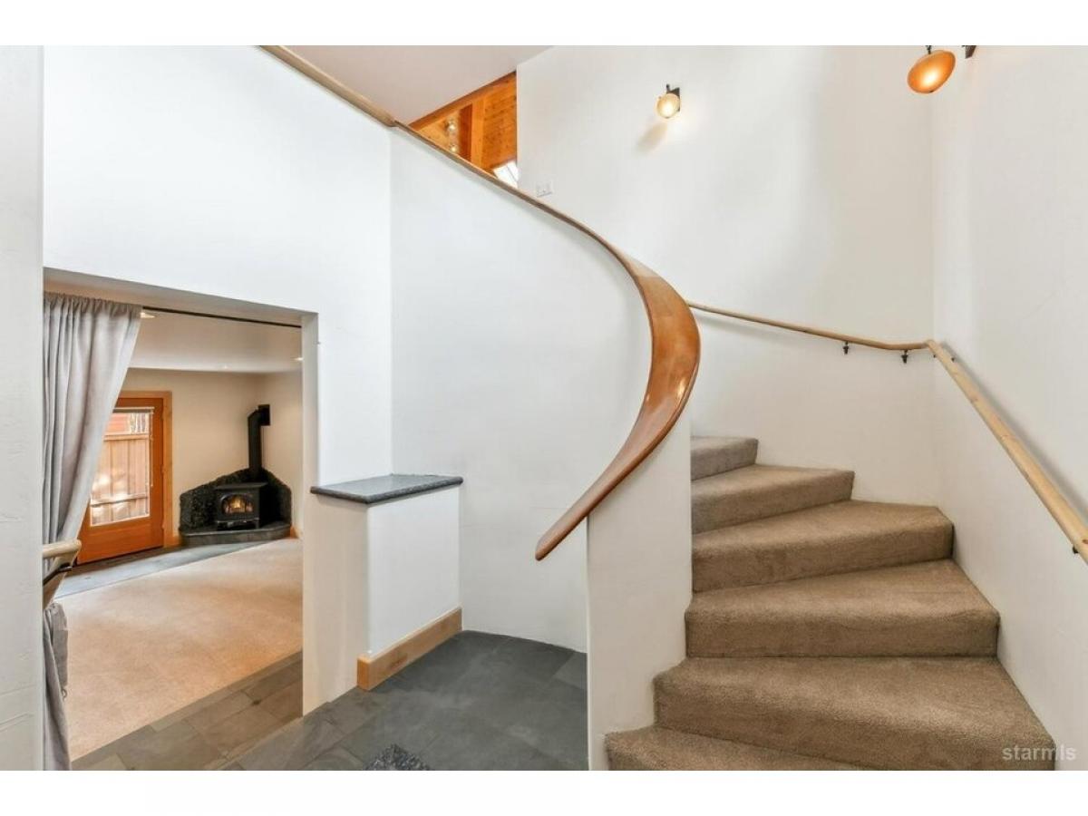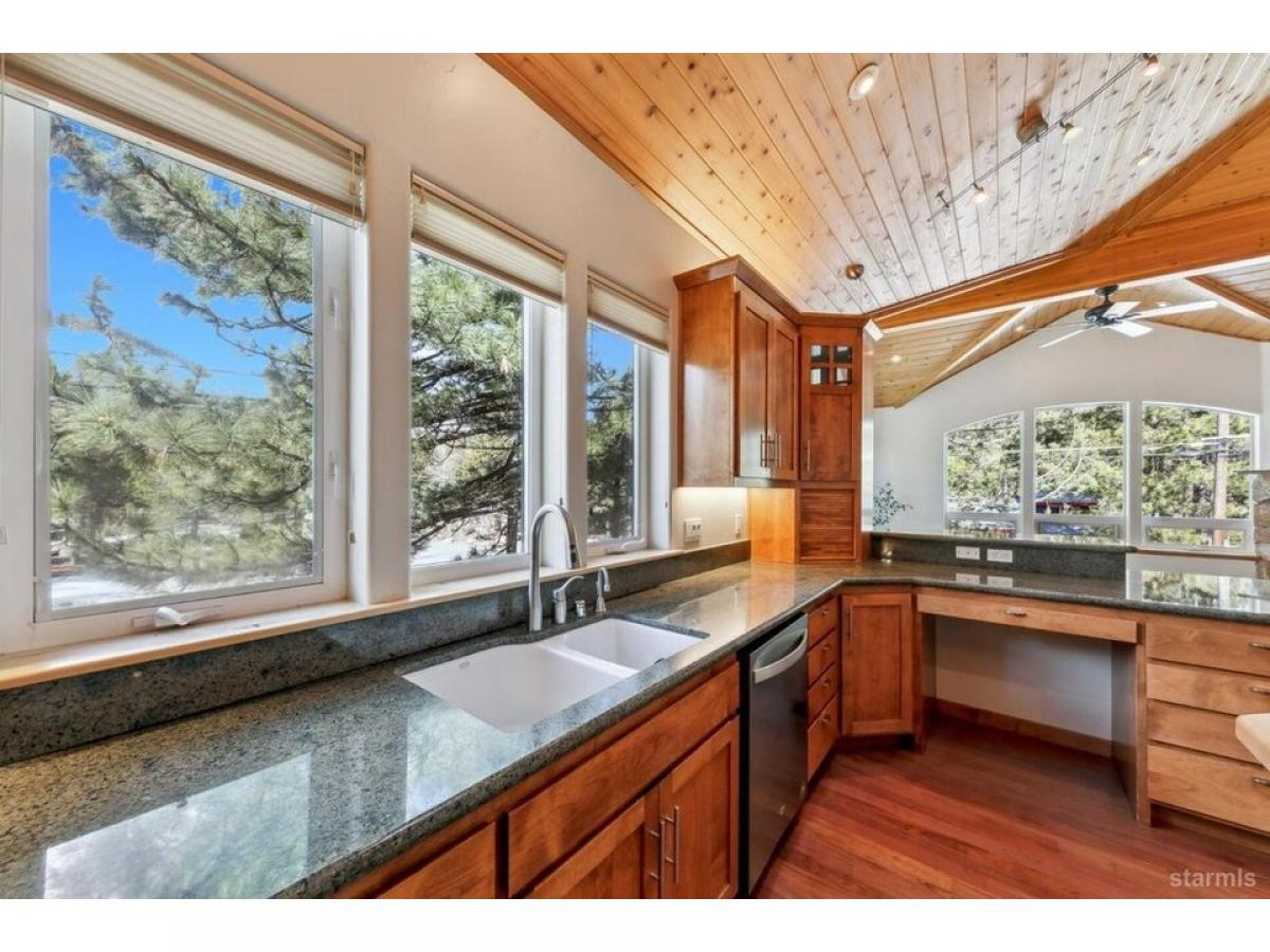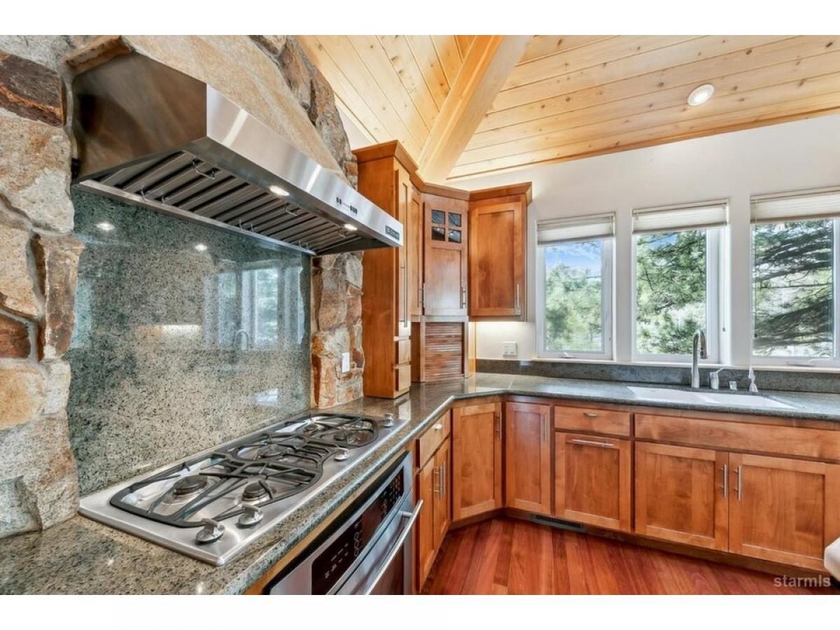 Experience timeless craftsmanship and refined mountain living in this exceptional owner-built custom home, ideally situated just steps from the Upper Truckee River with direct access via a Forest Service lot across the street. This architectural gem showcases dynamic design, exquisite woodwork, and high-end finishes throughoutoffering the quintessential Tahoe lifestyle. A welcoming covered front porch leads to a grand entrance framed by double solid-core knotty alder doors, opening into a dramatic foyer that rises into a stunning great room with soaring rooflines and a striking display of custom millwork. At the heart of the home, the chef-inspired kitchen is equipped with premium Jenn-Air stainless steel appliances, including a 36-inch side-by-side refrigerator, 5-burner gas cooktop with commercial-grade range hood, dual ovens, and a statement butcher block islandperfect for both entertaining and everyday gourmet cooking. The spacious top-floor primary suite offers a tranquil retreat, featuring a jetted tub and luxurious triple-head shower. A nearby second bedroom, full bathroom, and an open loft area provide additional comfort and flexibility. Downstairs, a second living room anchors the ground floor, alongside two more bedrooms, a full bathroom, and a functional laundry room. Additional highlights include energy-efficient Hunter Douglas blinds throughout, an oversized two-car garage with solid-core wood doors, and a matching exterior storage shed. This is a rare opportunity to own a thoughtfully crafted mountain home, designed for outdoor enthusiasts with refined tastes.