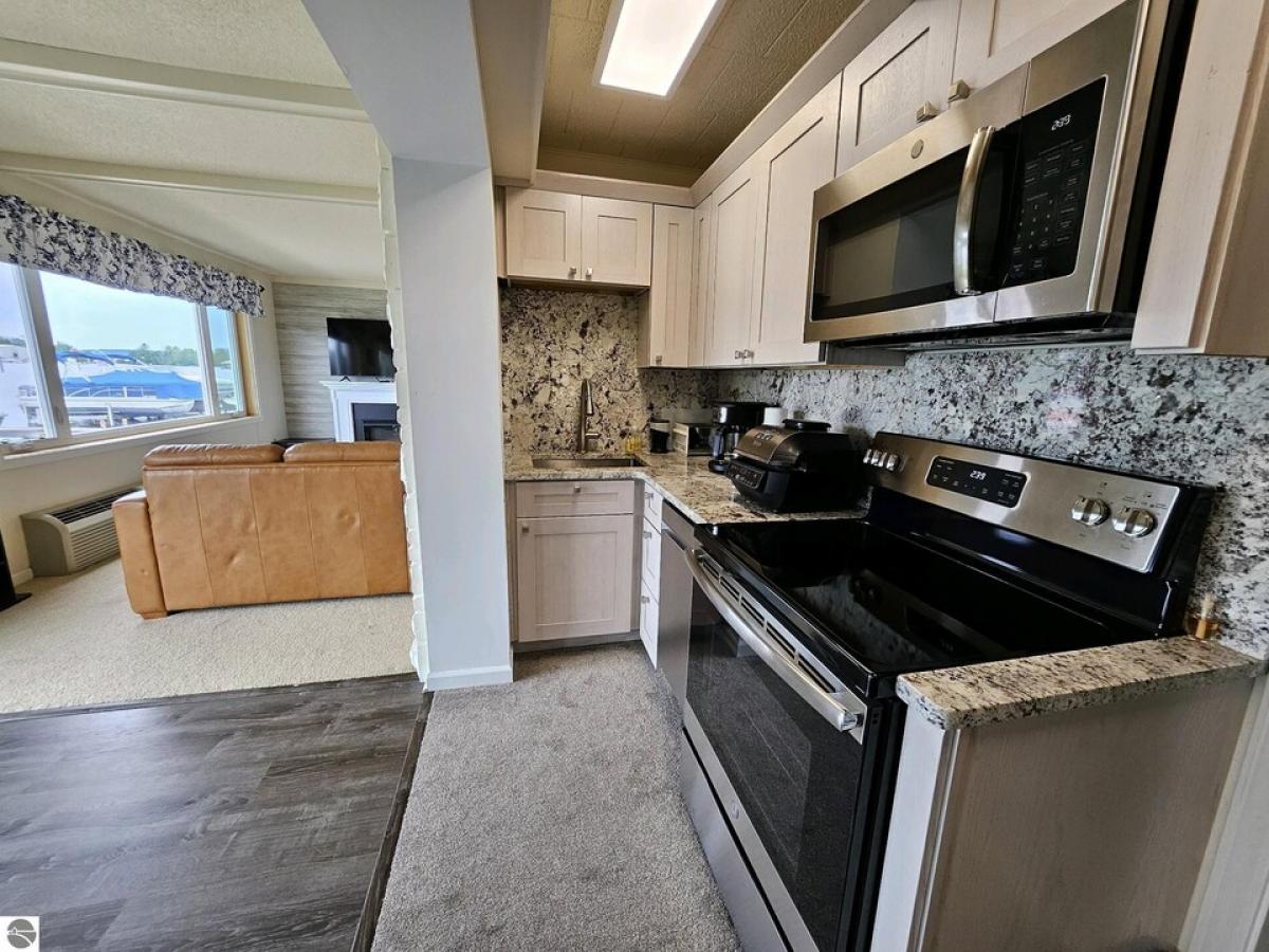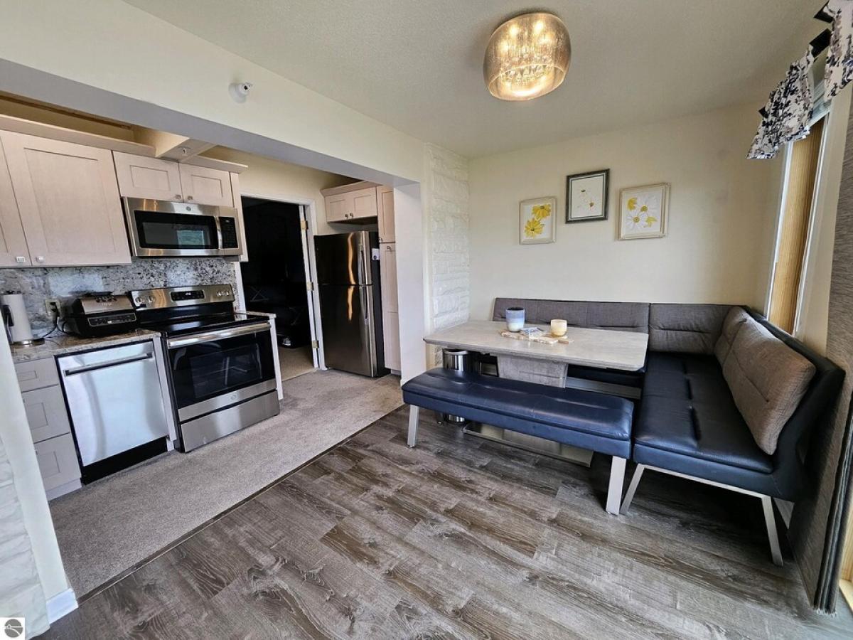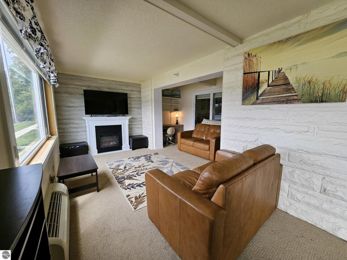 Come live your best lake life on Clam Lake! Enjoy sweeping water views from this double unit featuring 2 bedrooms and 2 bathrooms. Beautifully updated, this waterfront condo is turn-key and ready for a lucky new owner. Just bring your boat and toothbrush and start making memories. Your boat will appreciate having a dedicated boat slip and a 4,500lb electric boat lift. From Clam Lake, explore Torch Lake and all of the Lower Chain of Lakes (Elk Lake, Lake Skegemog, Lake Bellaire and the connecting tributaries). Located just off SE Torch Lake Drive, you can walk to the Dockside, or take a quick scenic jaunt into Alden or Bellaire for dining, shopping and all-season recreation. The Association fee of $510 per month includes all utilities. Pay one bill a month and the rest is taken care of for you, including electric, electric heat, mini-split AC, WIFI, charter/cable TV, water, septic, garbage (dumpster), fire insurance on building, liability insurance on the common areas, as well as lawn/gardens maintenance and snow removal. Explore this small community for it's perfect location for either a year-round home or a turn-key waterfront vacation mecca.