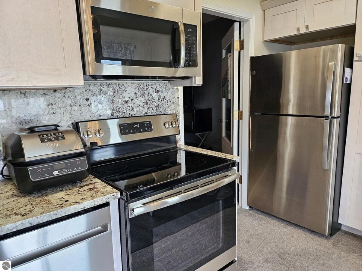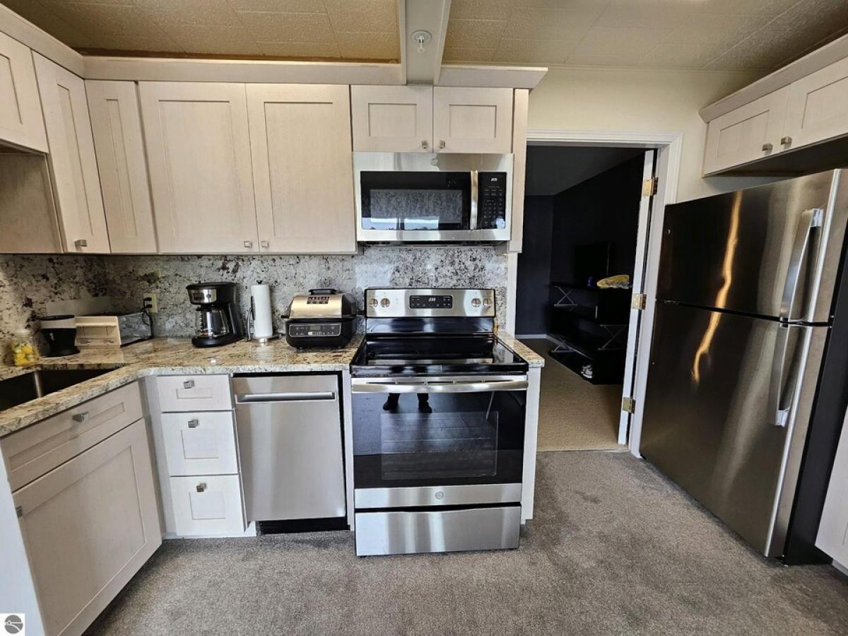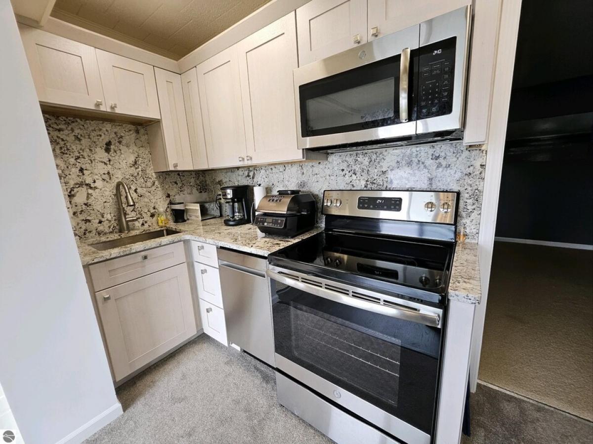 Come live your best lake life on Clam Lake! Enjoy sweeping water views from this double unit featuring 2 bedrooms and 2 bathrooms. Beautifully updated, this waterfront condo is turn-key and ready for a lucky new owner. Just bring your boat and toothbrush and start making memories. Your boat will appreciate having a dedicated boat slip and a 4,500lb electric boat lift. From Clam Lake, explore Torch Lake and all of the Lower Chain of Lakes (Elk Lake, Lake Skegemog, Lake Bellaire and the connecting tributaries). Located just off SE Torch Lake Drive, you can walk to the Dockside, or take a quick scenic jaunt into Alden or Bellaire for dining, shopping and all-season recreation. The Association fee of $510 per month includes all utilities. Pay one bill a month and the rest is taken care of for you, including electric, electric heat, mini-split AC, WIFI, charter/cable TV, water, septic, garbage (dumpster), fire insurance on building, liability insurance on the common areas, as well as lawn/gardens maintenance and snow removal. Explore this small community for it's perfect location for either a year-round home or a turn-key waterfront vacation mecca.
