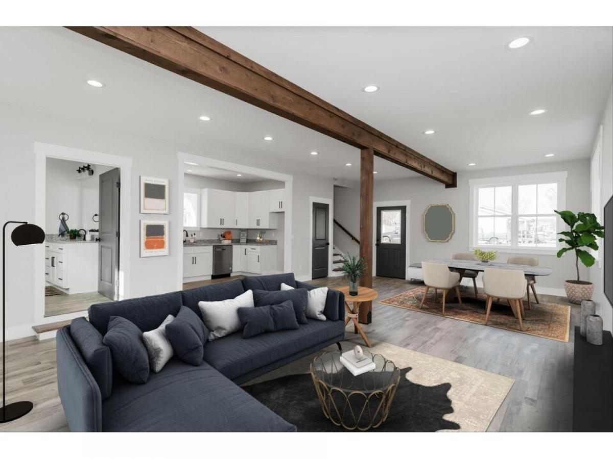 Looking for a like new home in a great location. This single family home - barn dominium has been completely remodeled. New metal roof, siding, electric, plumbing, heat and air units, appliances and flooring. The first floor has an open concept with living room, dining room and kitchen. Upstairs are 2 bedrooms, office area, and bathroom. Big backyard and large vacant lot next door.