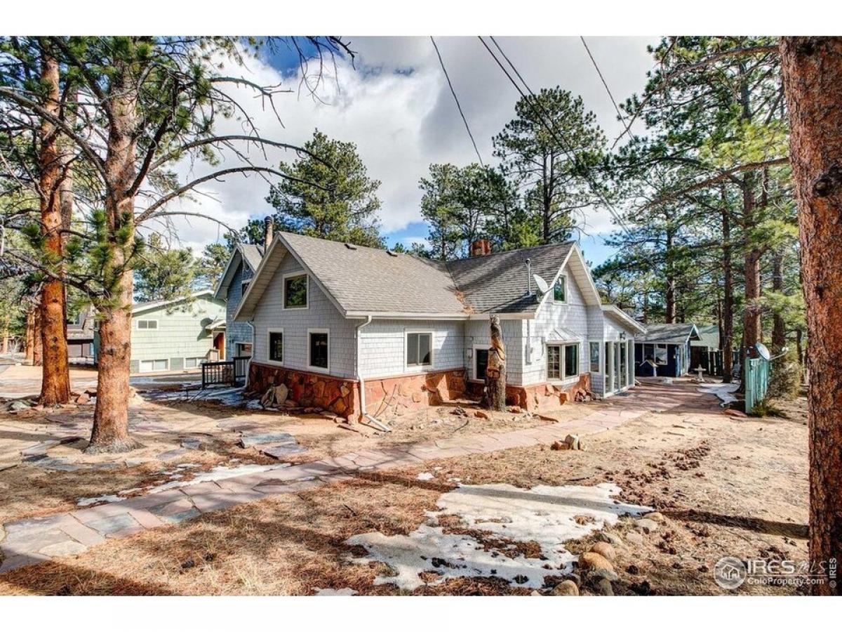 NOW is your chance to own not one, but TWO houses! This property includes a main house and a charming cabin, nestled on a beautiful lot in the heart of Estes Park. The location is ideal, offering easy access to downtown Estes, Rocky Mountain National Park, and a variety of mountain activities. The main home features 3 bedrooms, 2 bathrooms, vaulted ceilings, an open floor plan, and a gorgeous sunroom. The kitchen opens to the dining and living areas, with a floor-to-ceiling stone fireplace, perfect for winter nights. Traditional Rocky Mountain design blends with a contemporary addition, all situated on a private cul-de-sac. The original home exudes rustic charm with custom-milled knotty pine walls and ceilings, creating a cozy atmosphere. This design continues through the main level and leads to a loft with built-in cabinetry, an A-frame bedroom, and a den or office. The upper addition offers a more modern feel, with vaulted wood-paneled ceilings. The spacious primary bedroom includes double walk-in closets, a large walk-in shower, a private toilet, and double sinks. The second bedroom features sliding doors opening to a covered deck, leading to the yard and stone patio. The kitchen is equipped with wood cabinetry and modern appliances, separated by an open counter island. The adjacent dining area is perfect for gatherings or intimate dinners. Enjoy your morning coffee surrounded by towering pines or relax in the sun-soaked sunroom with sliding doors to the backyard. Six-panel wood doors, new windows, and freshly painted exterior siding add to the charm. There#039;s also a laundry room, storage closet, and an oversized one-car garage with access to the back patio, cabin, and sunroom. The cabin/guesthouse offers 448 square feet with a living room, bedroom, kitchen, eat-in dining space, and 3/4 bathroom. Whether hosting friends, seeking solitude, or using it as a rental, this cozy cabin provides the perfect escape.