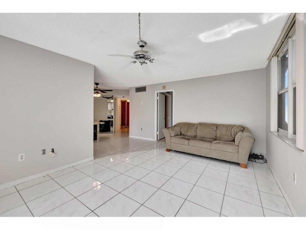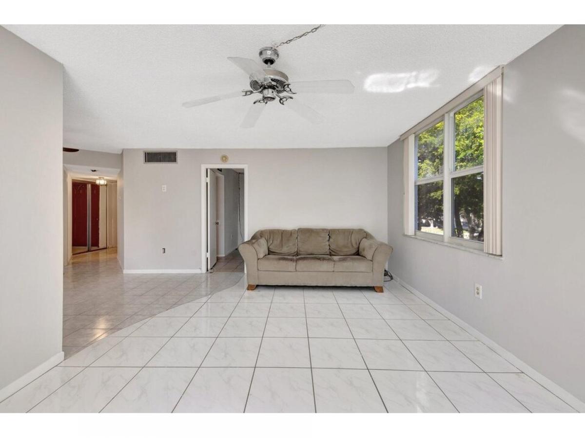 Discover this charming 2-bedroom, 2-bathroom corner unit located on the top floor of a 55+ community in the heart of Tamarac. With 950 square feet of living space, this light and bright condo features tile floors throughout, central air conditioning, and hurricane windows in the bedrooms/living room. The unit has been freshly painted rooms and includes a newer water heater. Residents enjoy access to community amenities such as three pools, a hot tub, fitness room, tennis court, card room, billiards, and a library. Conveniently situated close to shopping and restaurants, this well-maintained building offers an assigned parking space, guest parking, and ample storage. The association has reserves and no special assessments.