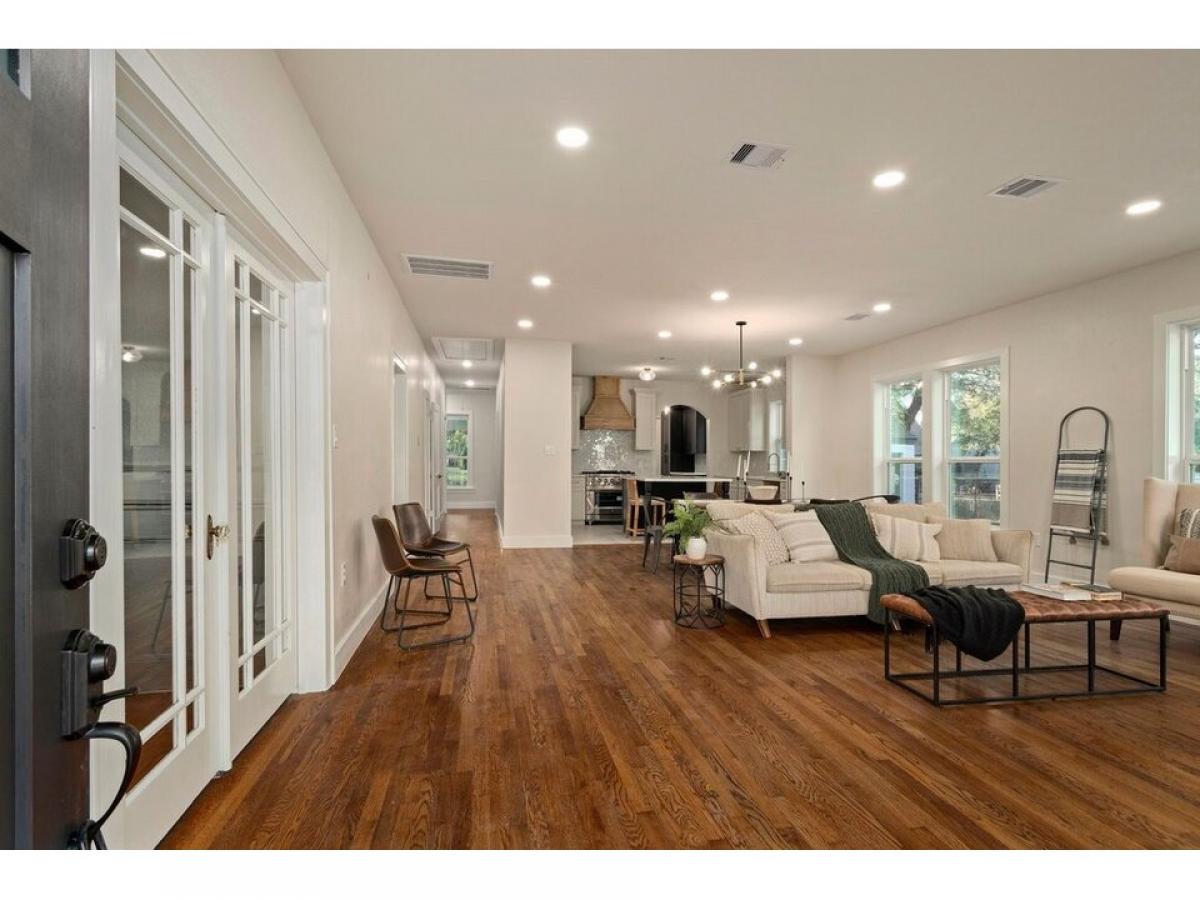 This charming 1933 Craftsman-style home sits on a 1/2+ acre lot in the heart of Columbus, featuring A+ curb appeal. Inside, 4 beds amp; 3.5 baths are complimented by fully restored original wood floors, recessed lighting, original door knobs, amp; large windows that create an inviting space. The entry leads to a spacious family room with a wood-burning fireplace surrounded by elegant tile amp; wood detailing. The open floor plan leads to a spacious dining room, perfect for gatherings. The kitchen is designed for entertaining, with a large island, quartz countertops, 42quot; cabinets, amp; a premium gas range, while a scullery adds extra storage. Behind French doors discover a formal living area/home office. The primary bedroom offers plush carpet, a walk-in closet, an en-suite bath, amp; access to a covered patio. This versatile home has 3 additional bedrooms, each with bathroom access, one ideal as a mother-in-law suite. Outside, a covered patio overlooks the large fenced backyard with mature trees.