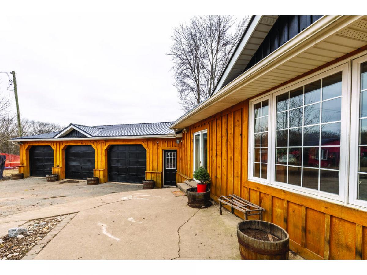 Incredible piece of land with huge future potential. Two minutes from the highway and outlet mall. 31 acres of mostly cleared land. Large paddocks with plenty of space for animals to roam and a barn nearby the house. Huge pond on the property visible from all over the lot and inside the large family sized bungalow. Large family, dining and kitchen space on the main level with a huge primary bedroom wing with its own en-suite and view to the pond. Two more bedrooms at the other end of the home. The basement is finished for use as an in-law suite with two bedrooms, a full bathroom and plenty of rec space. Approx. 2500 sq. ft. plus large finished basement. Huge garage for toys and storage.