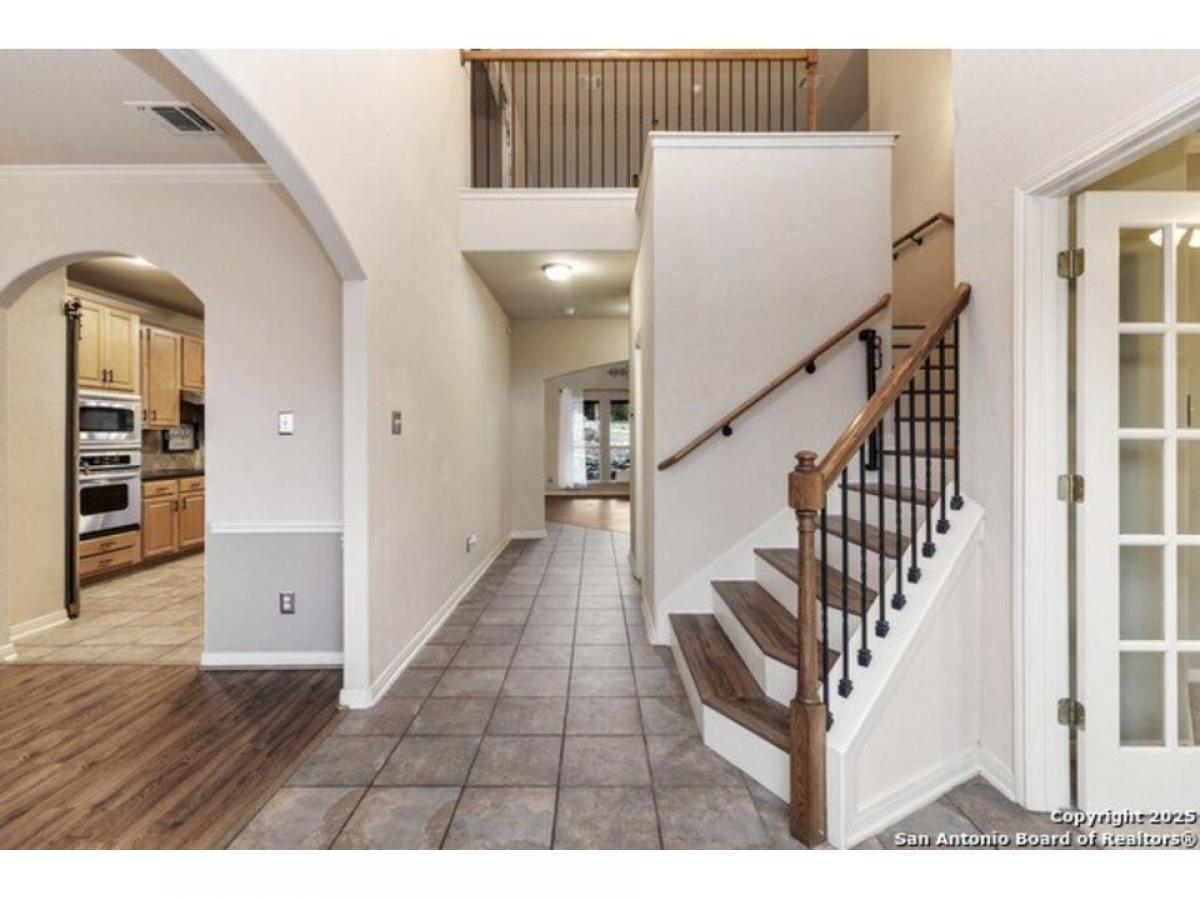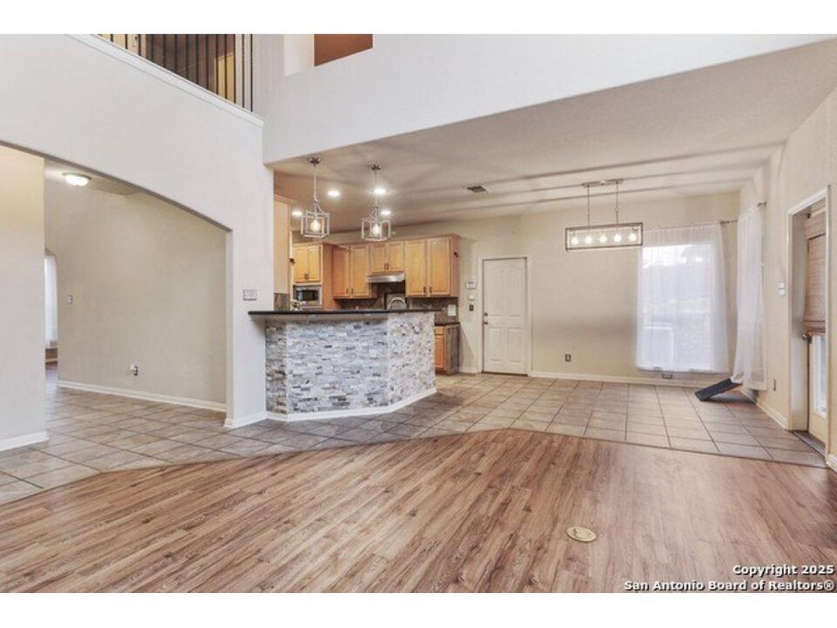 Enchanting Hilltop Retreat at 9223 Saucedo Dr, Helotes, TX Nestled atop a serene hill in the heart of Helotes, 9223 Saucedo Dr offers a harmonious blend of rustic charm and modern elegance. This expansive 3,349 sq ft residence, set on a generous 0.69-acre lot, boasts 5 spacious bedrooms and 3.5 well-appointed baths, providing ample space for both relaxation and entertainment. Upon entering, you#039;re greeted by an open-concept layout bathed in natural light, with sleek laminate flooring underfoot and freshly painted walls in contemporary neutral tones. The heart of the home is the gourmet kitchen, featuring quartz countertops, a subway tile backsplash, and a large center island-perfect for culinary adventures and gatherings alike. The inviting living area offers ample space to relax and entertain, while the upstairs loft provides additional flexibility as a game room, office, or cozy retreat. The primary suite serves as a private sanctuary, complete with a luxurious en-suite bath and generous closet space. Additional bedrooms are thoughtfully designed, ensuring comfort and privacy for family and guests. Step outside to discover a backyard oasis where winding nature trails meander through towering oaks, offering a serene escape into the beauty of the Texas countryside. The expansive outdoor space is ideal for hosting gatherings, gardening, or simply soaking in the breathtaking hilltop views. Additional features include a three-car garage, energy-efficient systems, and proximity to local amenities, ensuring convenience without compromising the tranquil country ambiance. Experience the magic of Hill Country living at 9223 Saucedo Dr-a place where every sunrise paints a new masterpiece and nature#039;s beauty is your daily backdrop. Welcome home. Please verify all measurements.