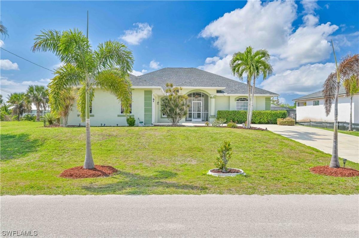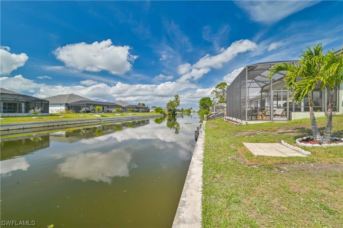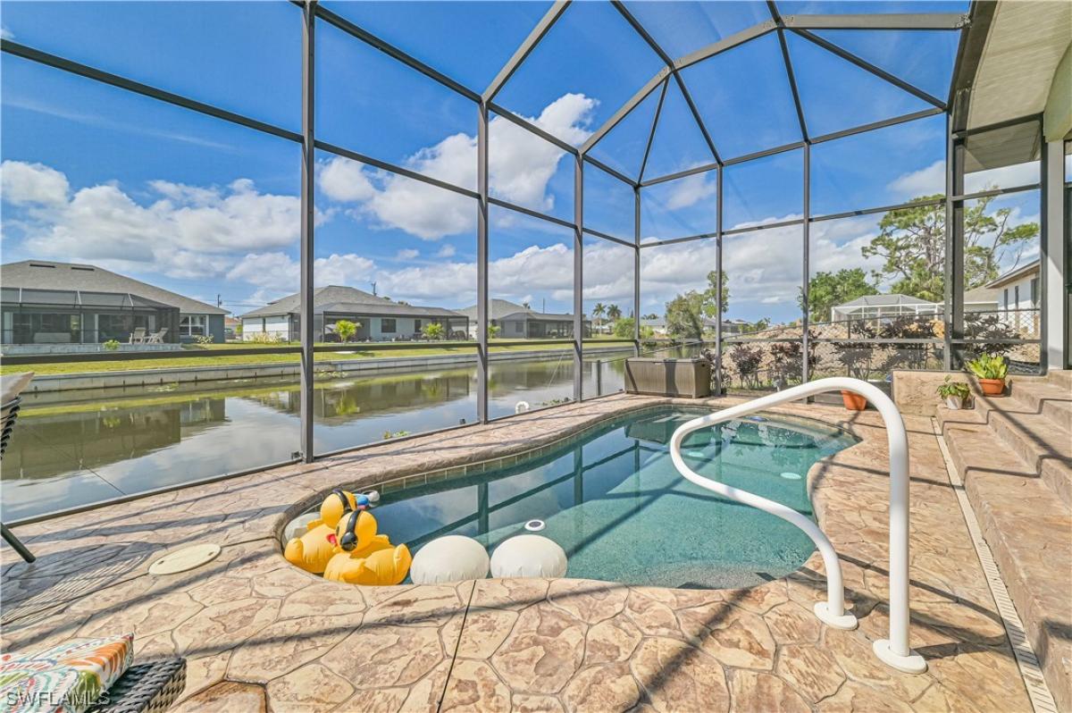 YES!!! Schedule a SHOWING..... WOW...PRICED TO GO..!! What a BEAUTIFUL home. No flood insurance required..Indulge in the epitome of luxury and Florida Living with this stunning 4-bedroom, 2-bath sparkling Freshwater Canal front Pool home, where all assessments are paid in full and did I mention the pool is WEST facing for you to enjoy. Step through French doors into a realm of true Florida Living as the open floor plan, adorned with premium tile flooring, seamlessly leads you through a space graced by vaulted ceilings, welcoming an abundance of natural sunlight. This expansive home offers large bedrooms with a split floorplan for privacy. Begin with Immersing yourself in culinary delights within the expansive kitchen, where amazing water views complement exquisite granite countertops, large formal dining as well as a stylish breakfast bar, and a charming breakfast nook that looks out over the pool and canal. An ample walk-in pantry, coupled with plenty of cabinets for oversized kitchen essentials, enhances the culinary experience. Embrace sustainable living with the integrated solar electricity panels, contributing to minimal electric bills and environmental consciousness. As the day unfolds, relish in the captivating Florida sunsets from the comfort of your breathtaking EAST FACING screened-in pool and lanai—an idyllic retreat for both relaxation and entertainment. This residence stands as a testament to modern luxury, where every detail has been meticulously curated for the utmost in comfort and sophistication. Schedule your exclusive appointment today and seize the opportunity to call this solar-powered haven your home. Don't miss out on the chance to experience a lifestyle of unparalleled elegance here in beautiful Cape Coral—your oasis awaits! Some restrictions on showings apply due to family situation.