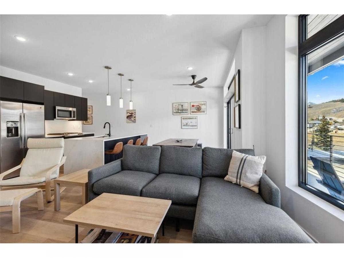 Amazing opportunity to own mountain modern 2 Bedroom condo within walking distance of the new Silverthorne downtown area and close proximity to 5 world class skiing destinations. Built in 2021 this second-floor turn key property features floor to ceiling windows and great views of the Gore Range. Relax in the riverfront hot tub instead of stressed in traffic. Centrally located in the heart of Summit County. Easy access to world class skiing, golfing, biking, hiking, fishing and other Rocky Mountain activities. Short and long term rentals allowed.