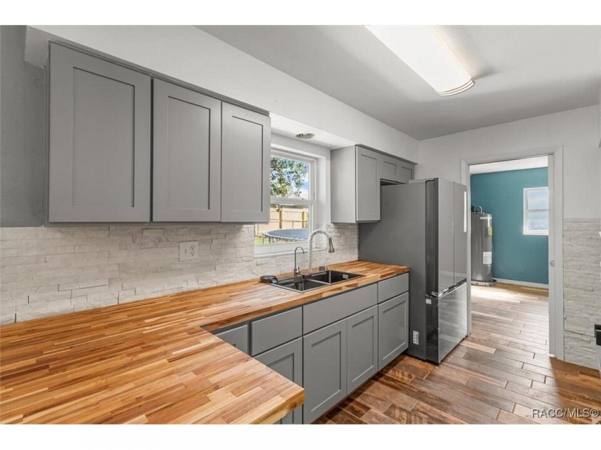 Welcome to this beautifully updated 3-bedroom, 1-bathroom residence nestled in the desirable community of Citrus Springs. With its thoughtfully designed layout and modern upgrades, this home offers both comfort and functionality for everyday living and entertaining. Step inside to find a bright and airy living space adorned with Pergo TimberCraft waterproof laminate flooring, combining durability with contemporary style. The adjoining sunroom, located just off the dining area, offers the perfect spot to relax and enjoy views of the outdoors year-round. The galley-style kitchen has been completely renovated and features brand-new Samsung Bespoke Series appliances, butcher block countertops, new cabinetry, a stylish modern sink, and wood plank tile flooring. The laundry room and kitchen are both finished with coordinating tile floors, maintaining a cohesive and clean look throughout. Additional recent improvements include new gutters, new windows, a new hot water heater, a full home water softener system, and an updated electrical panel. This home also features a spacious utility room for extra storage or workspace, a portable dishwasher, and a fully fenced backyardmdash;ideal for pets, outdoor activities, or weekend gatherings. Citrus Springs is a deed-restricted community with no HOA fees, offering residents an array of amenities, including a public library, an 18-hole golf course, tennis courts, baseball fields, parks, and a playground. Outdoor enthusiasts will appreciate nearby Withlacoochee State Trail, a 46-mile paved path perfect for walking, jogging, biking, and skating. Rainbow Springs State Park is also just a short drive away, providing stunning natural scenery and opportunities for kayaking, tubing, and swimming. Whether you#039;re searching for your first home, a seasonal retreat, or an investment opportunity, this property offers outstanding value in a location that truly has it all. Schedule your private showing today and experience everything this exceptional home has to offer!