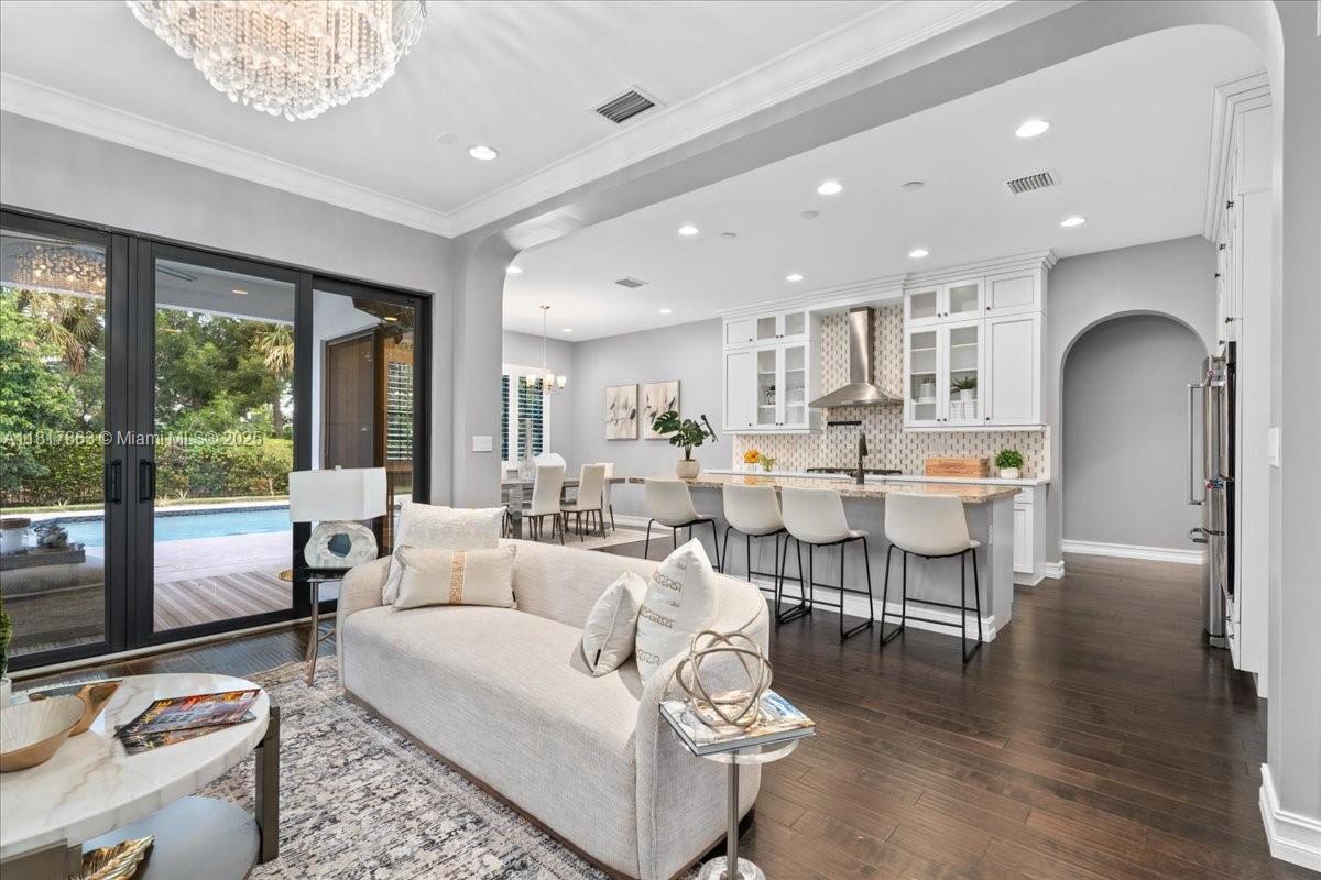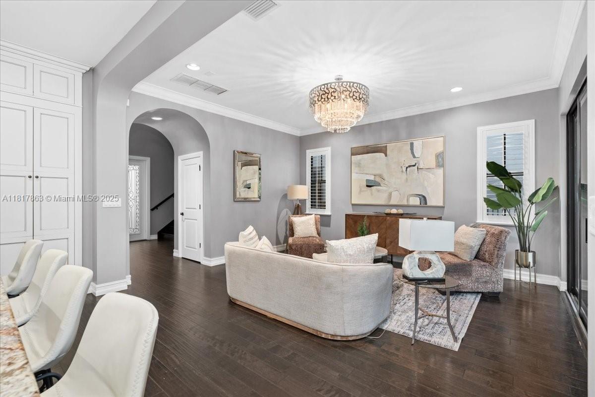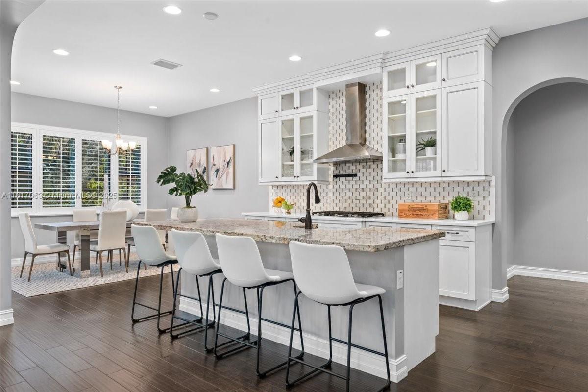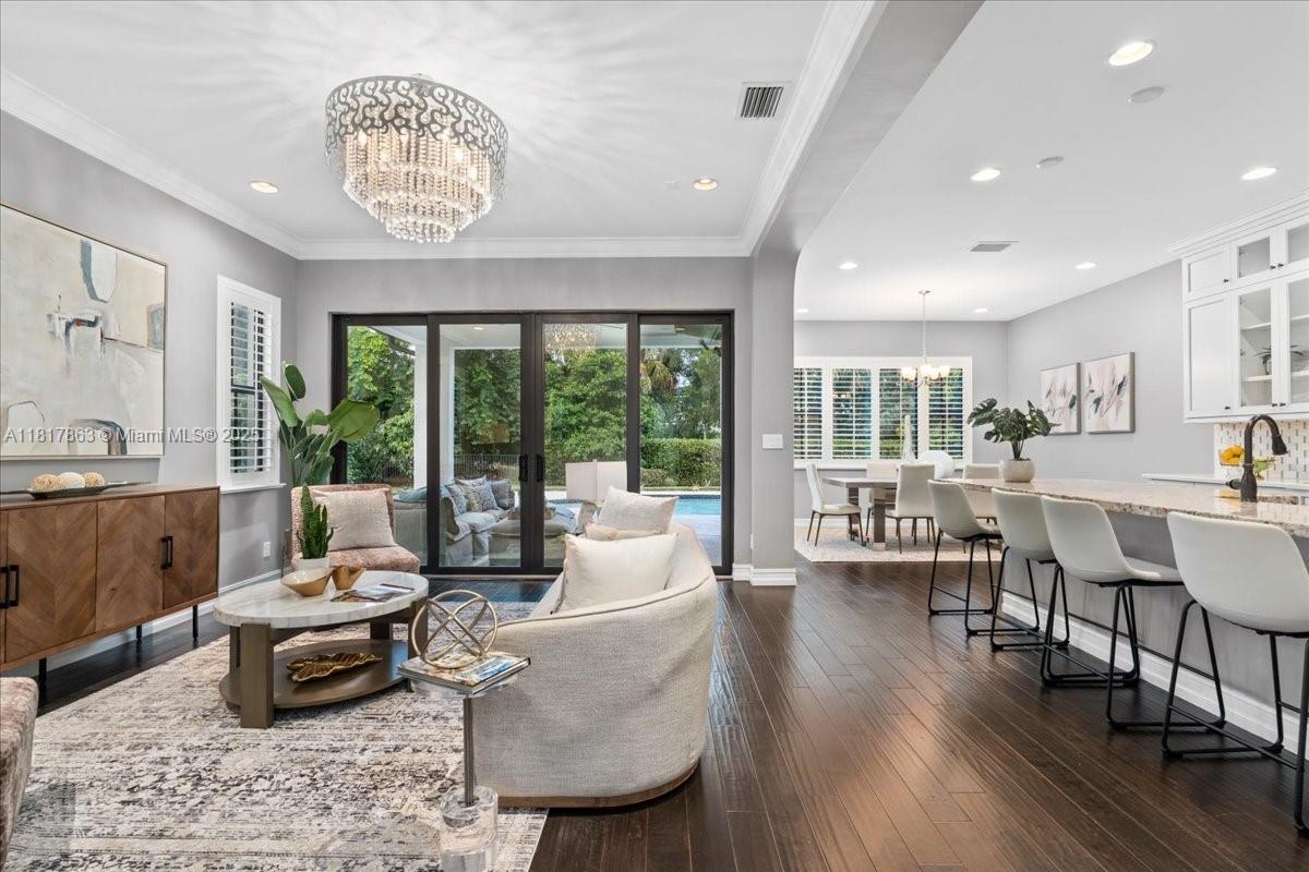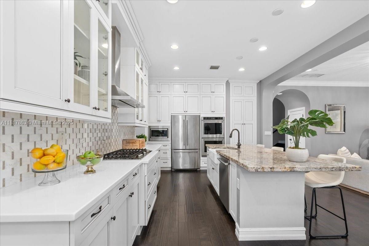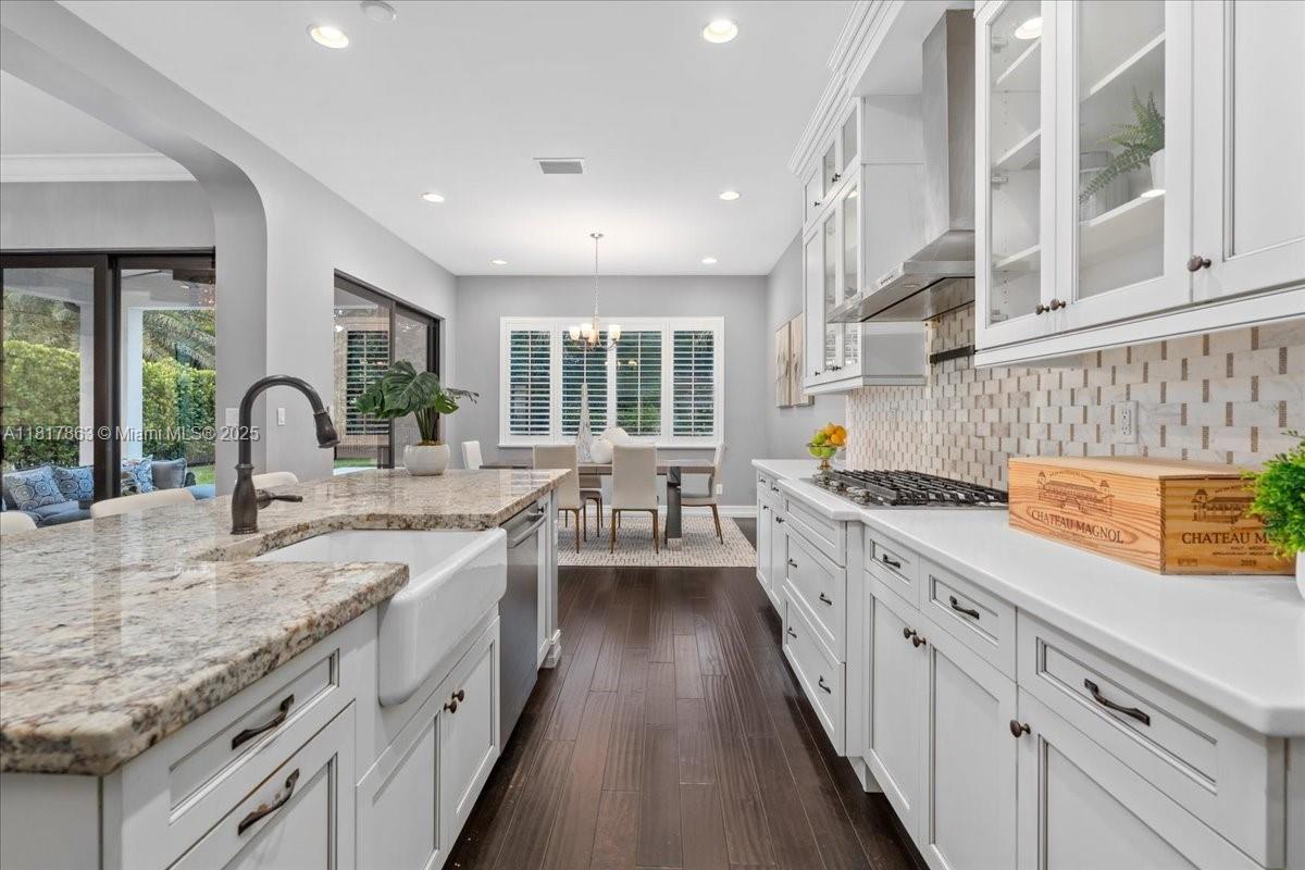 Welcome to this elegantly upgraded 5-bed, 3.5-bath Custom Built Watercrest pool home! The main level boasts rich wood floors, 1st floor guest-room with designated full bath plus a powder room, gorgeous white chef’s kitchen featuring quartz & granite countertops, ceiling-height cabinetry, oversized island, natural gas double oven & custom walk-in pantry. A dramatic entrance with high ceilings & staircase leads you to 4 more bedrooms, all featuring custom closets & luxury vinyl flooring-no carpet anywhere in this home. Relax & enjoy your own heated saltwater pool, covered patio & fenced yard perfect for entertaining year-round. IMPACT WINDOWS & DOORS! Resort-style amenities including clubhouse, fitness center, splash pad, tennis courts, Guard Gated & 24hr security. A-rated Parkland Schools!