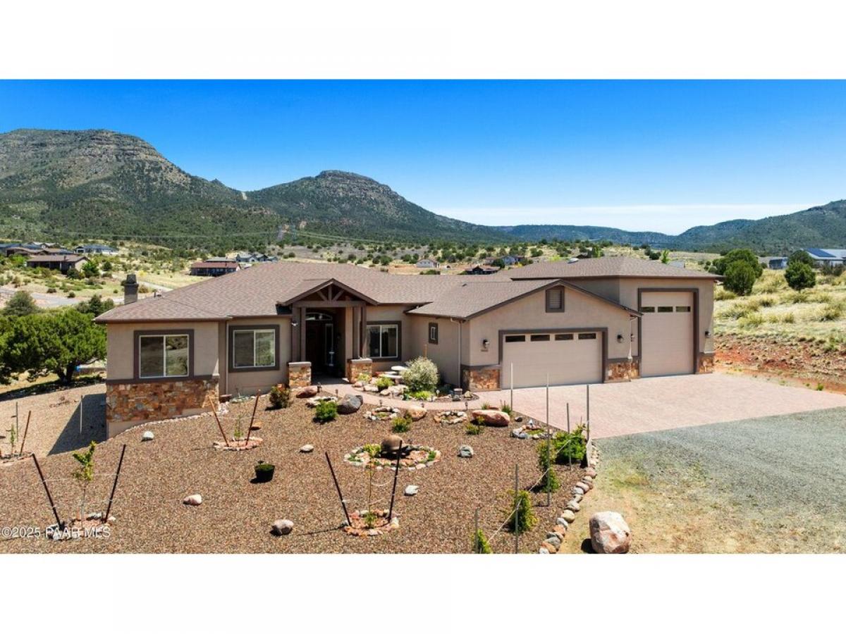 Beautiful custom build in Legend Hills! The owner put his own touches into every inch of this home...from the 2x6 framing to the thoughtfully designed cabinetry. As you enter the home you are met with stunning ceramic plank floors, 10#039; ceilings and 8#039; doors...and a majestic view of Mingus Mountain from the great room windows. Even future additions to the property were considered with the installation of 400 amp power and an extra large septic tank to accomodate a casita. The garage space fits 3 cars with an attached 46#039; deep RV garage with full hookups! The attention to detail carries through to the exterior of the home with its large deck that affords amazing views of Mingus Mountains and the surrounding area. There is even an area under the home that can be utilized for projects as it